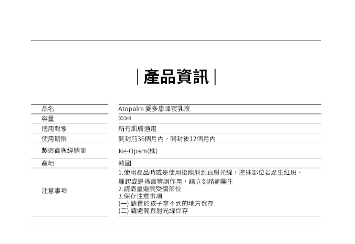ATOPALM 愛多康 兒童蜂蜜乳液 300ml