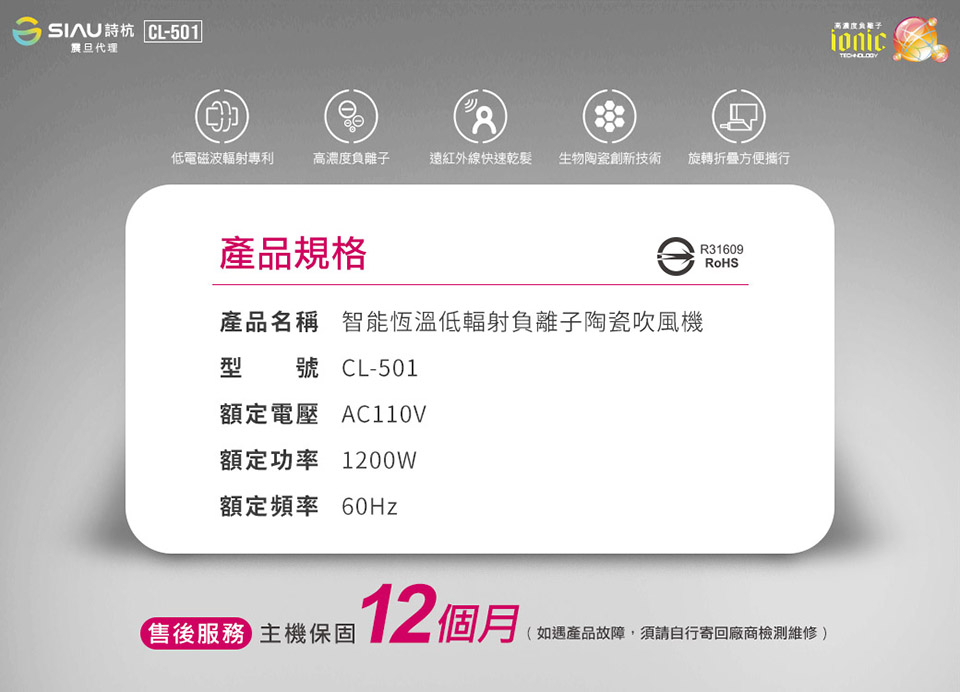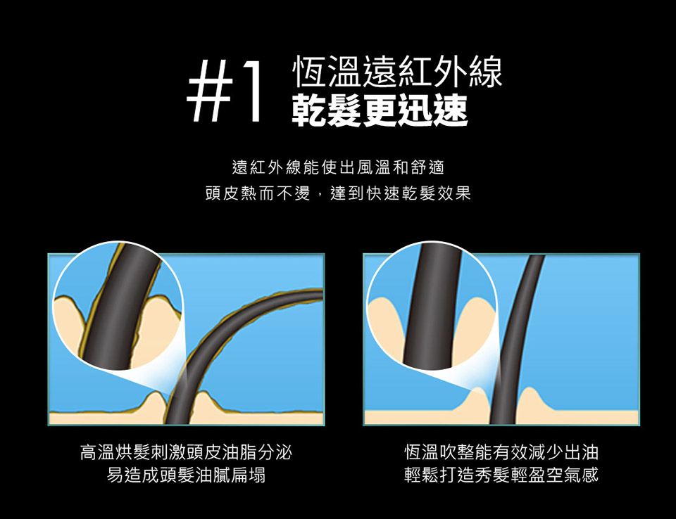 ● 智能恆溫,陶瓷遠紅外線速乾吹整
