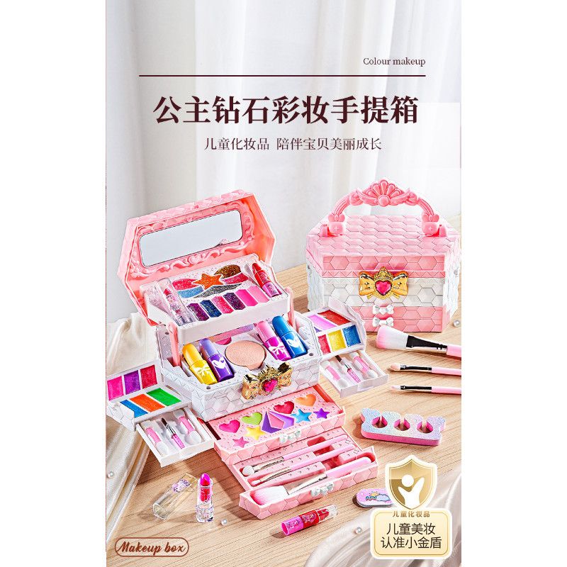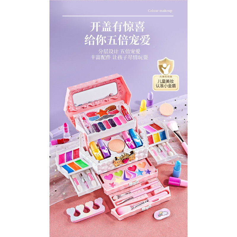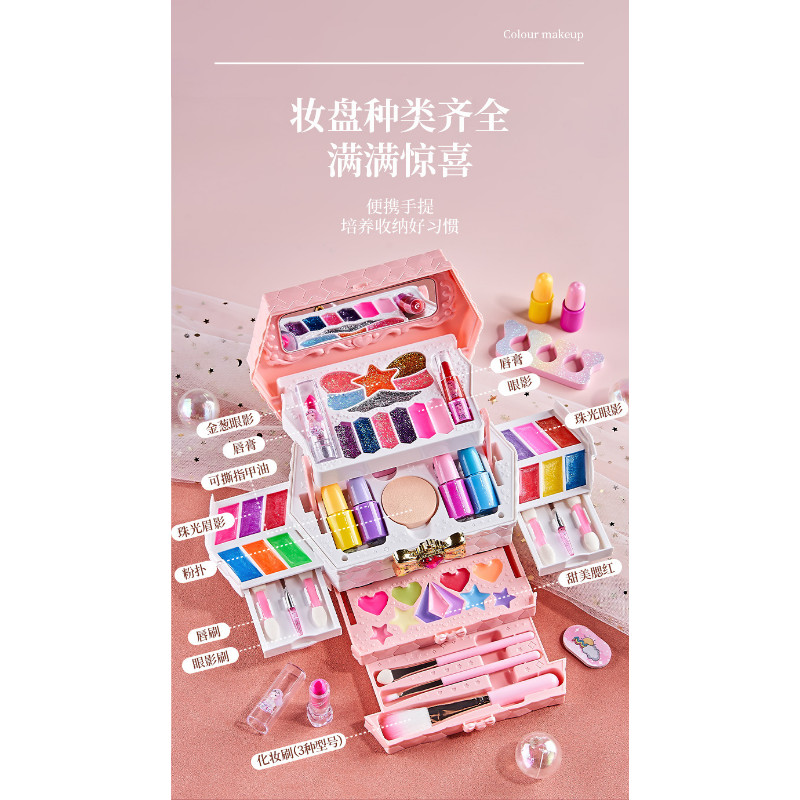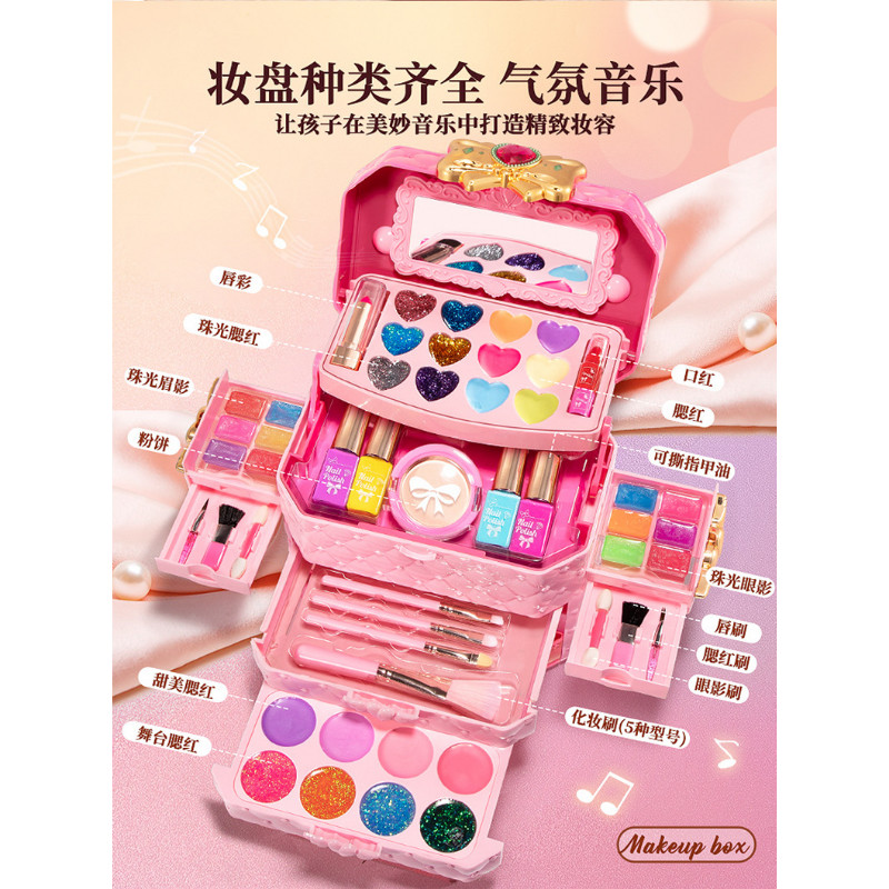 兒童彩妝指甲油口紅女孩化妝玩具盒裝小女孩化妝品彩妝箱生日禮物
