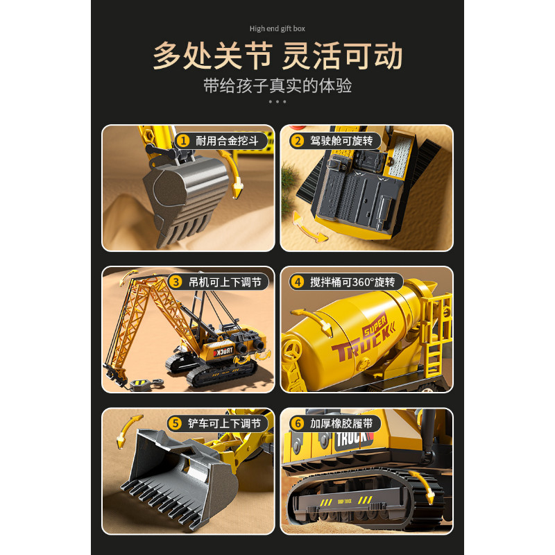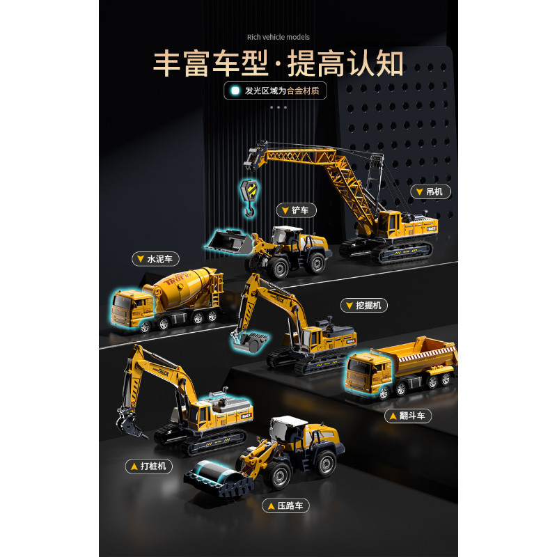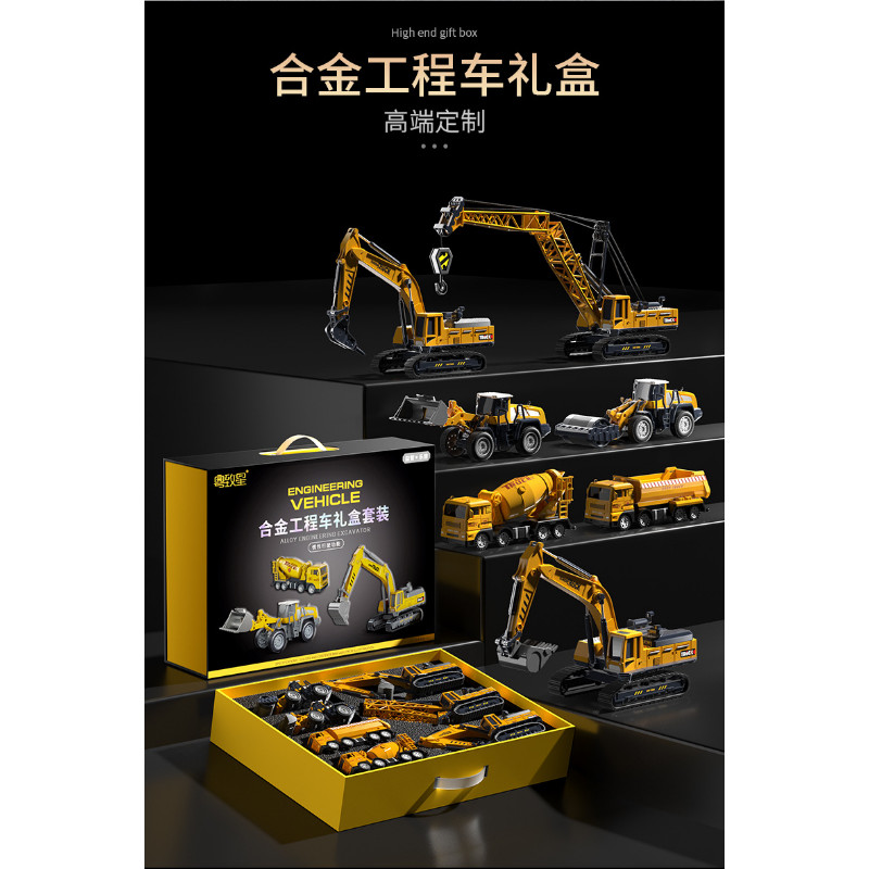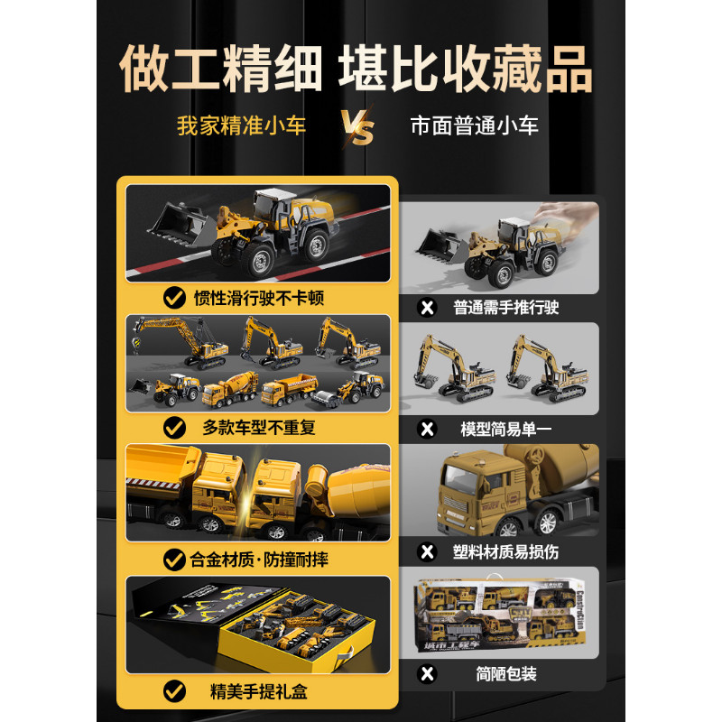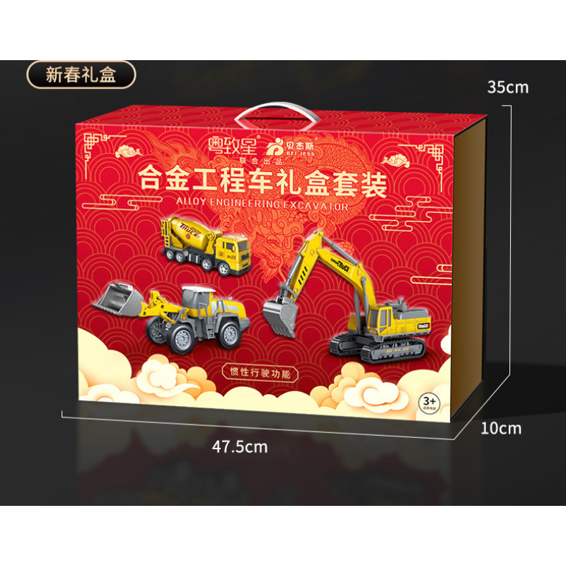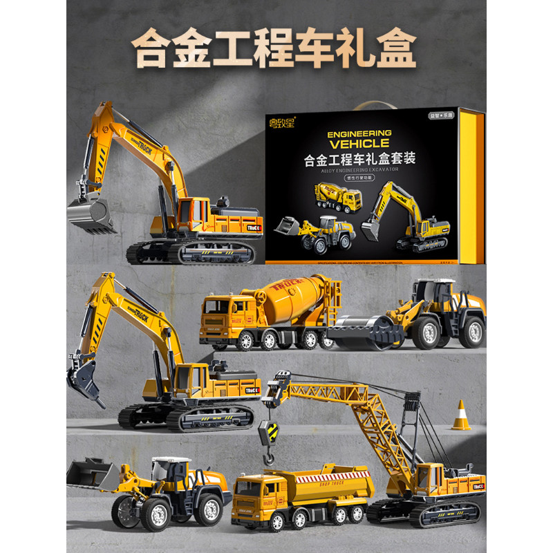 貝傑斯挖掘機合金工程車套裝模型男兒童玩具車推土機送禮生日禮物