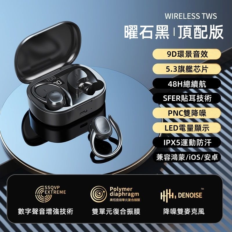 5.3藍牙耳機 無綫藍芽耳機 運動耳機 降噪耳機 蘋果小米安卓三星通用掛耳式耳機 藍牙無線耳機 耳機 久戴不痛 超長續航