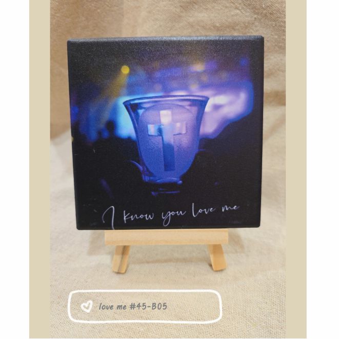 LOVE ME 杯墊11*11cm 適中的大小讓這畫面承載在生活的周遭,高畫質UV印刷技術,讓美好停留更久。某一次領聖餐時拍的,深知道我有個愛我的天父,還好有耶穌,我才有天父可以依靠無論高山低谷,祂總不撇棄我,真實的幫助我萬事互相效力,叫愛神的人得益處