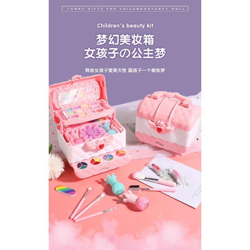 兒童雪花化妝品手提箱玩具套裝小女孩生日禮物小公主彩妝盒指甲油