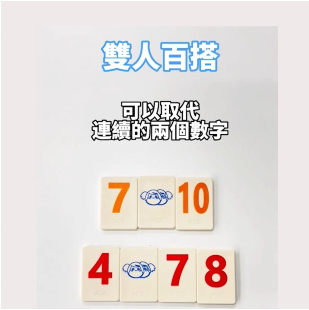 內容物:104塊磚牌(數字1-13,分別有紅/藍/黑/橙,兩塊百搭磚牌)