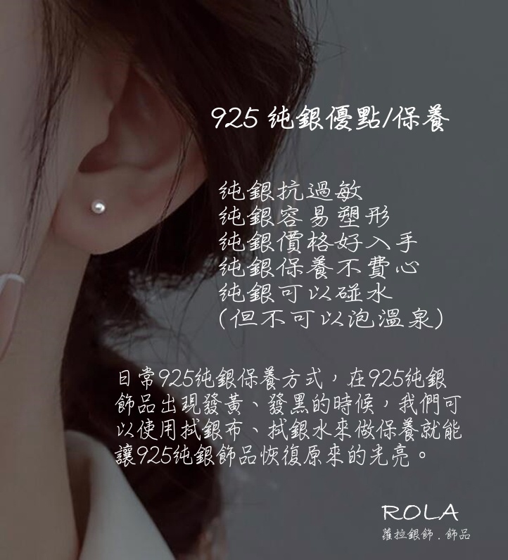 👉素銀:飾品外表沒有鍍上電鍍,暴露在空氣中容易氧化變黃/發黑,這時沒關係只需用拭銀布輕輕擦拭,即可恢復原有的光澤