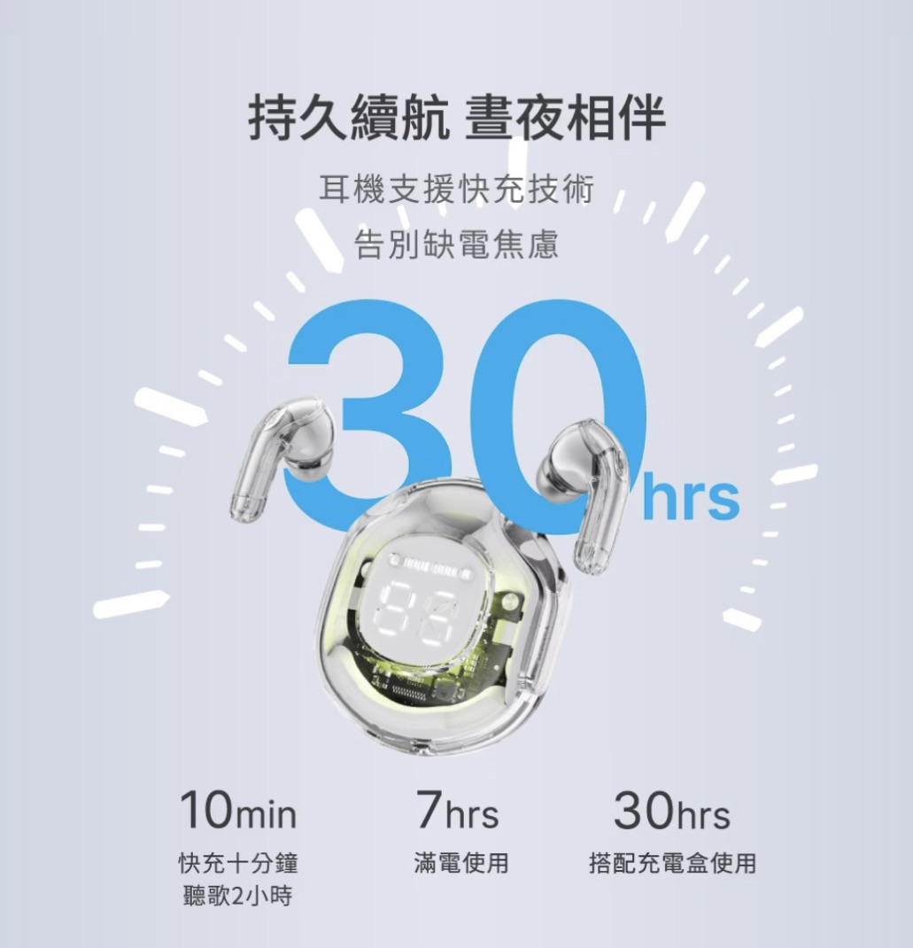 續航力優異搭配充電盒可持續使用長達 30 小時,滿足一整天所需