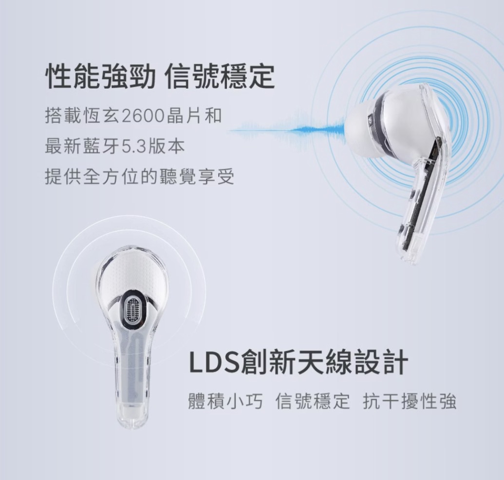 採用藍牙 5.3 技術,連線穩定、音效同步無延遲創新天線設計,