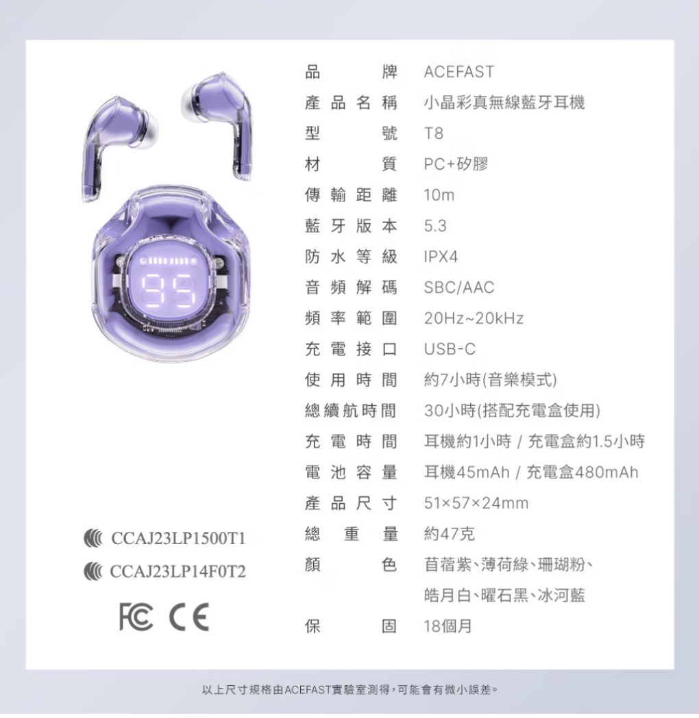 ACEFAST Crystal T8 小晶彩真無線藍牙耳機
