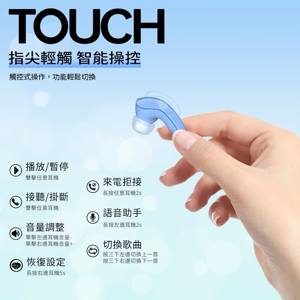 呈現獨特LED數顯單獨顯示左、右耳機及充電盒電量觸控式操作,