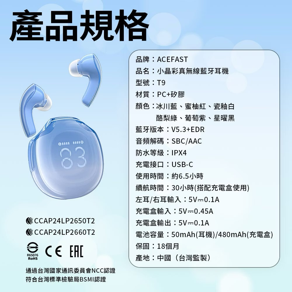 ACEFAST Crystal T9 小晶彩真無線藍牙耳機
