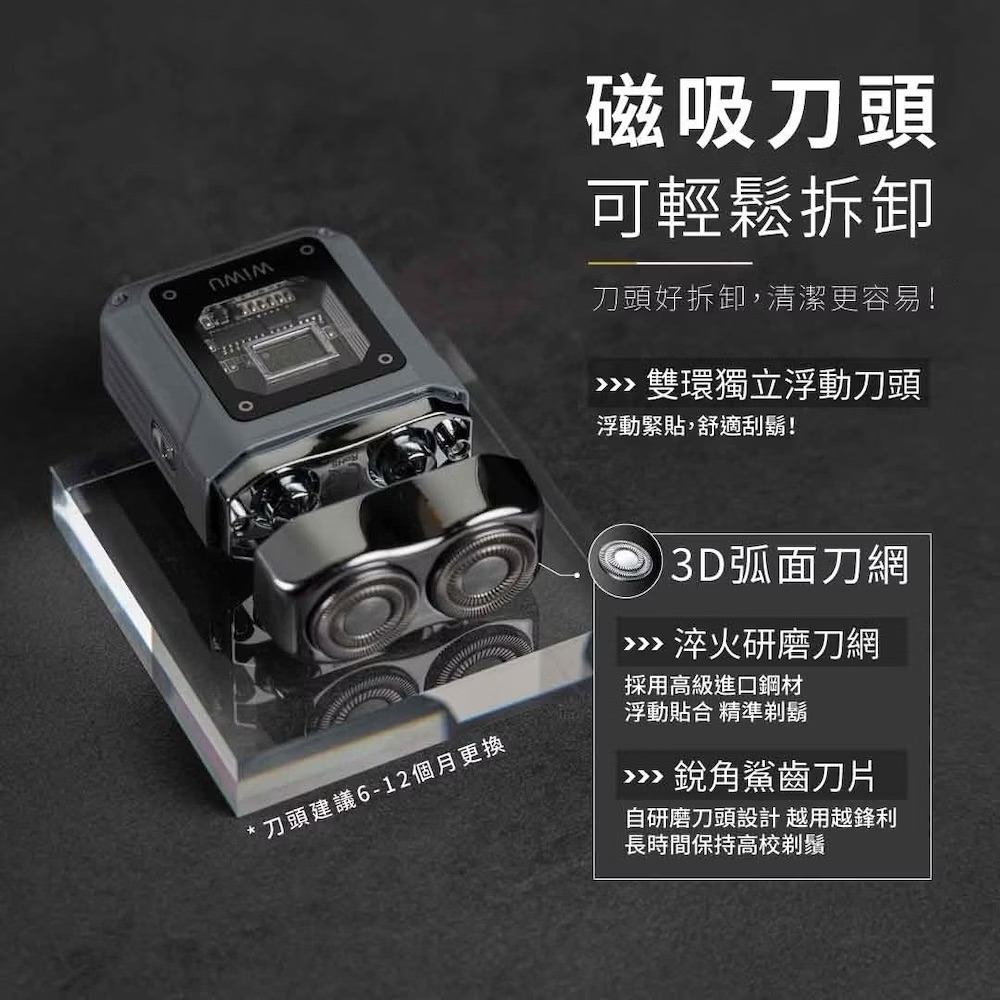 磁吸刀頭設計雙環3D獨立浮動刀網IPX7級防水性能,