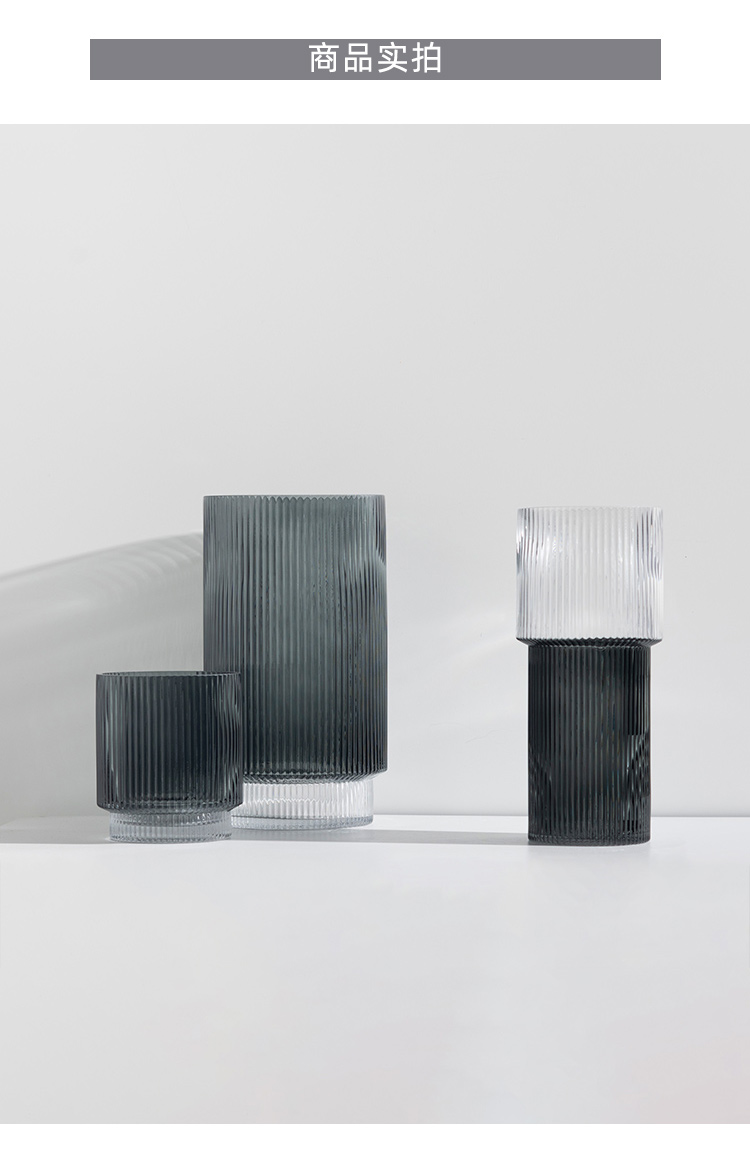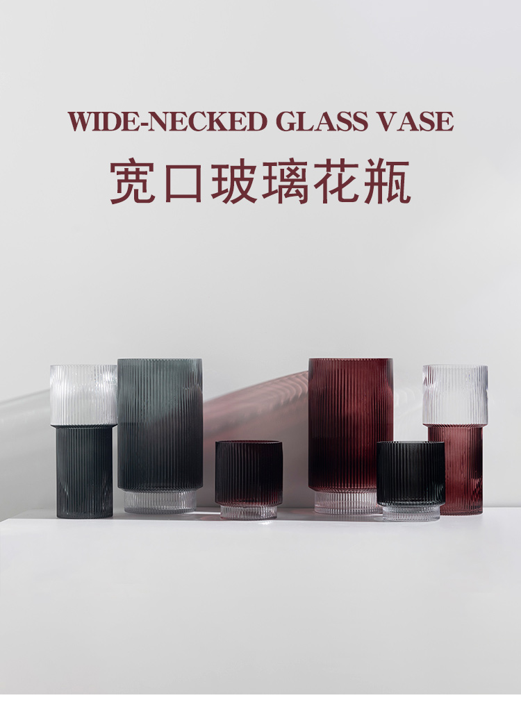 寬口玻璃花瓶擺件家居客廳樣板房店鋪喬遷禮物簡約軟裝飾品