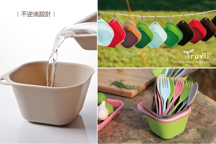 在戶外活動往往我們所面對的不明的水源,在地球環境越來越複雜的情況之下,我想也許我們需要一些保護,尤其在戶外面對清洗過後的餐具,看不見的細菌殘留在餐具上,Truvii 抗菌餐具採用奈米銀添加於原料之中,一體成型無額外的塗裝,這樣有兩個好處: