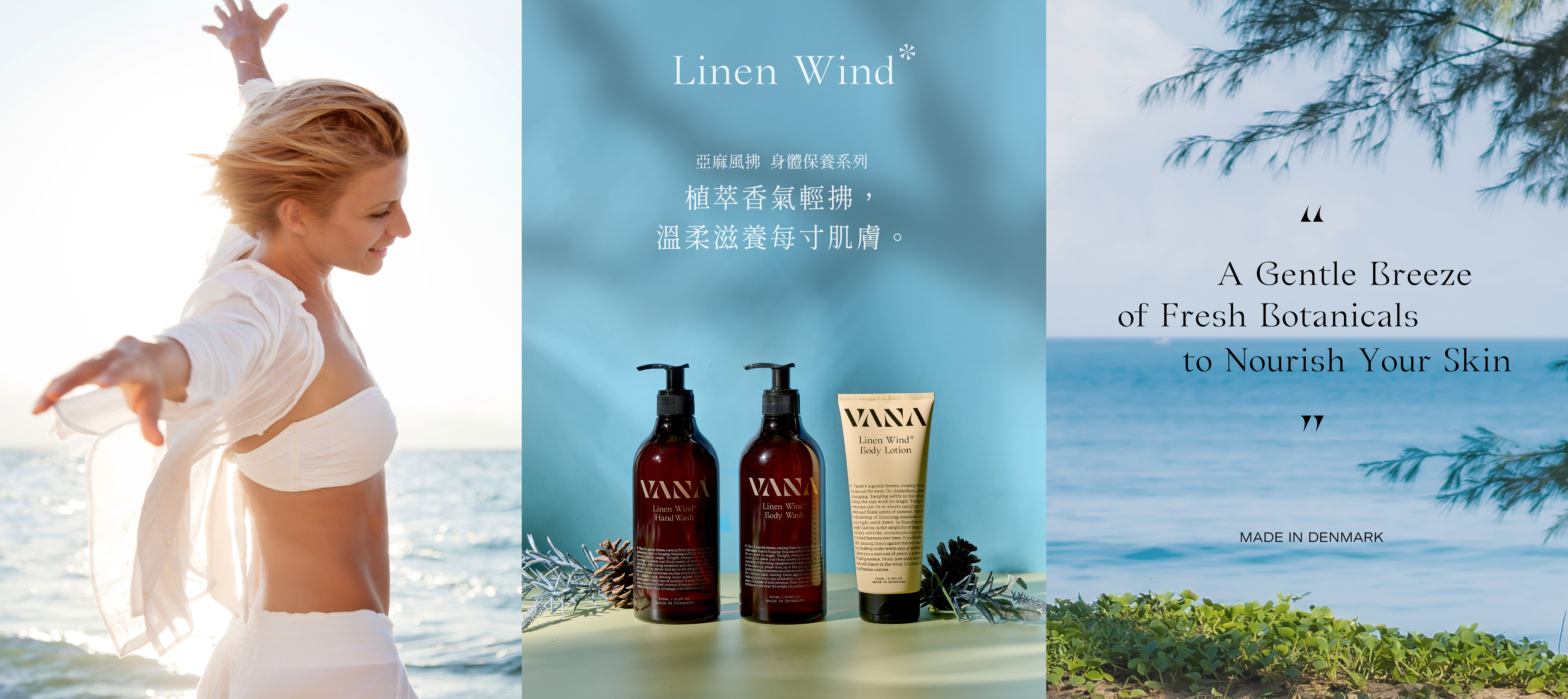 所有原料歐盟生產採購,符合EU產品的標準和規範,當決定拓展身體洗沐產品時,VANA深知找到志同道合夥伴的重要,經過廣泛的調查和嘗試,我們在丹麥找到了身體洗沐護理產品的專家,和我們一樣在乎產品的永續性,嚴選製作中性溫和適合全肌膚的身體洗沐保養產品。