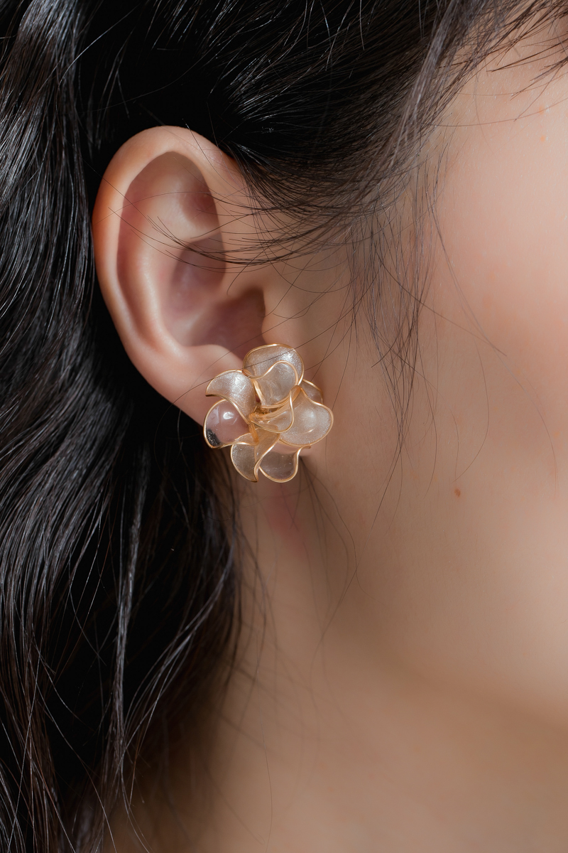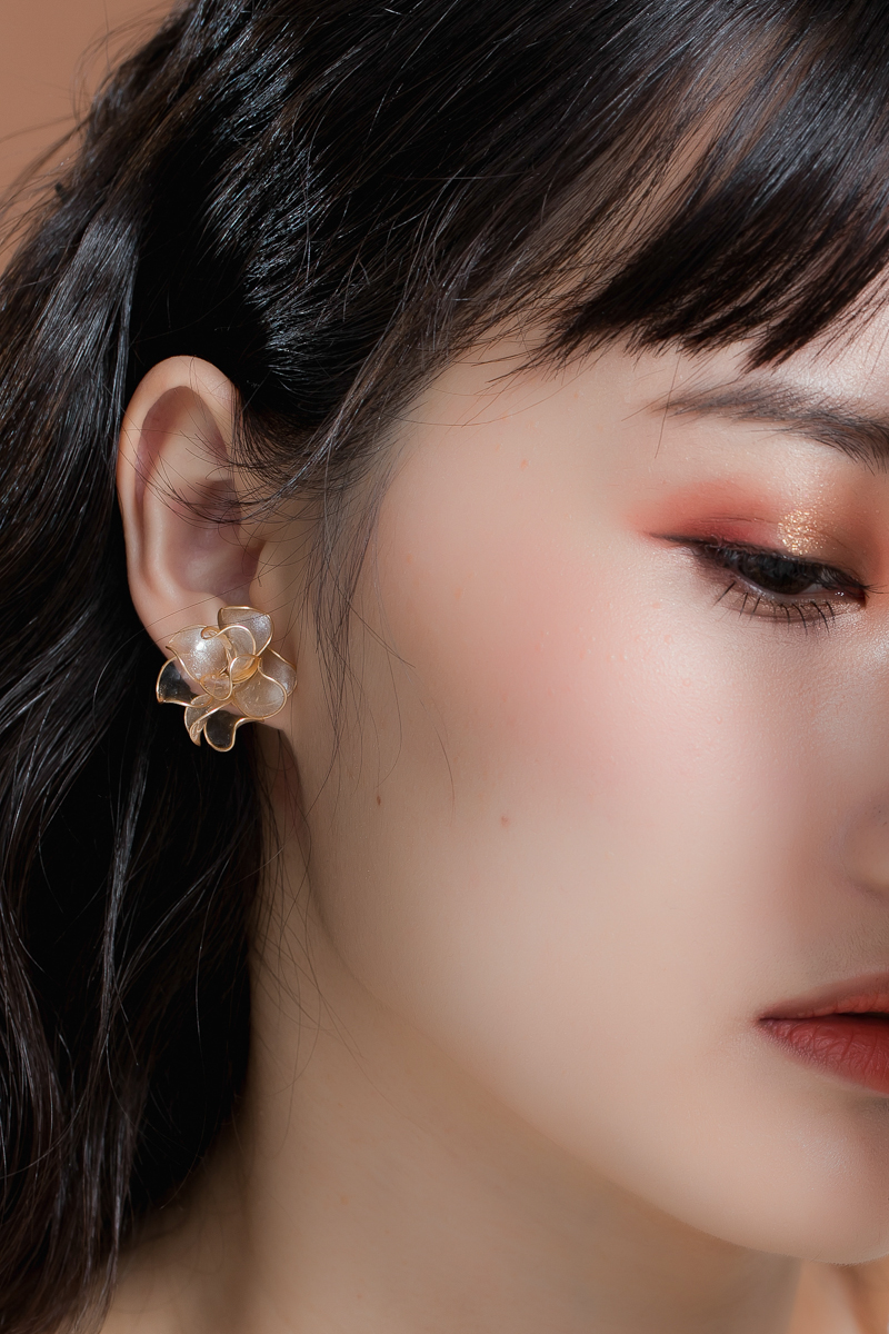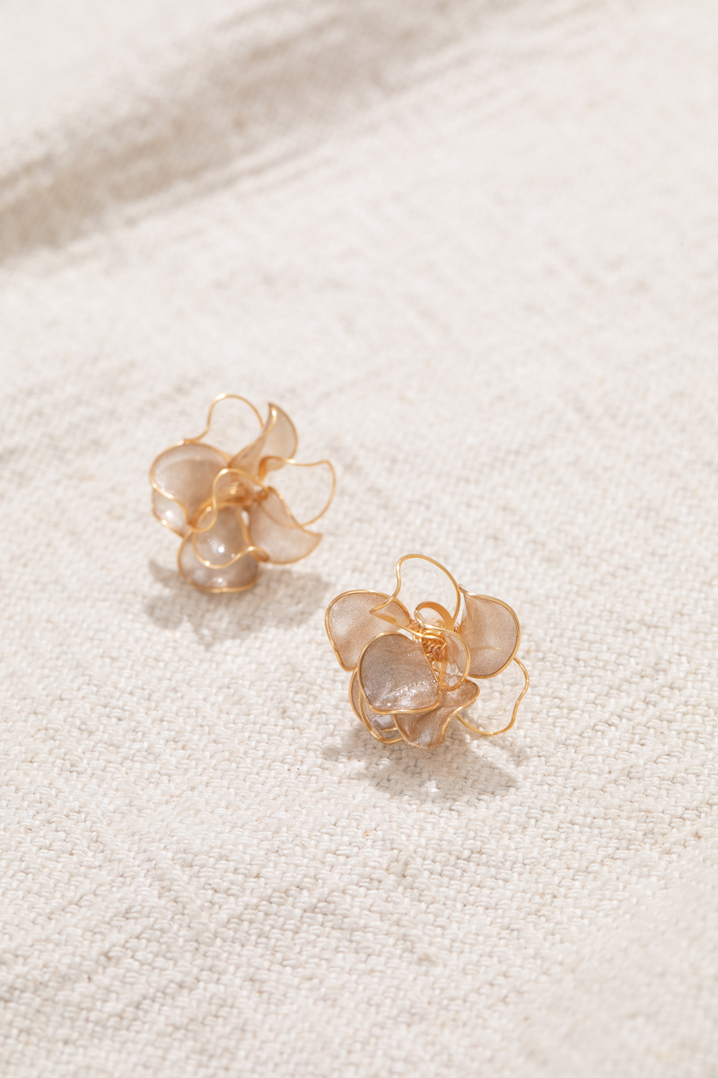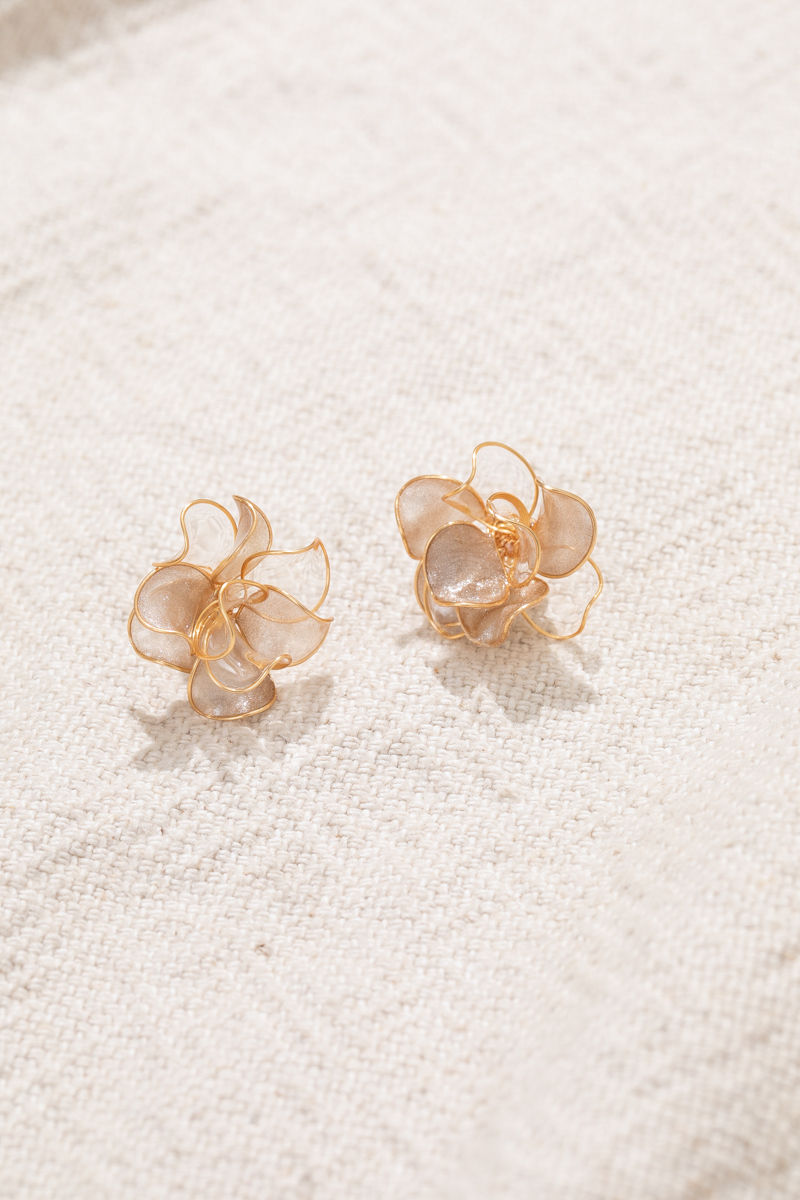 【曇花-奶油金】貼耳式耳環 | 水晶花飾品