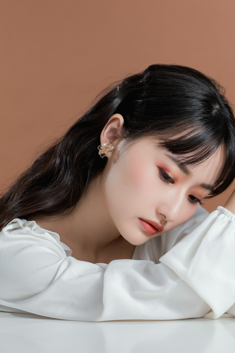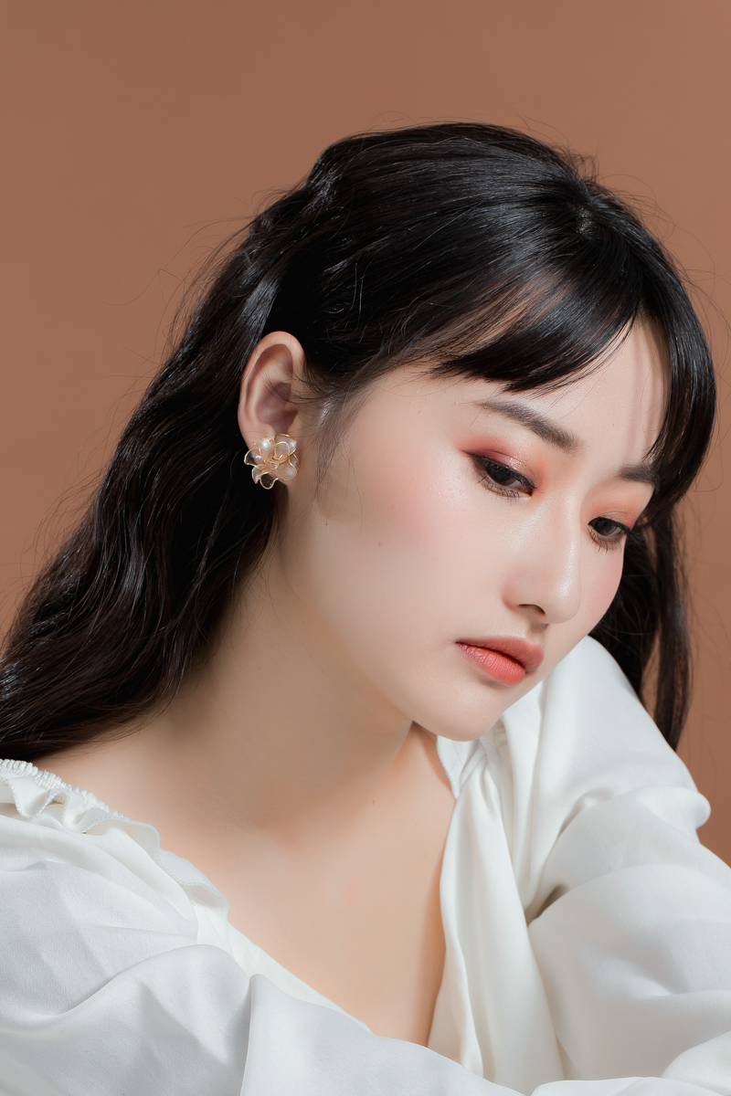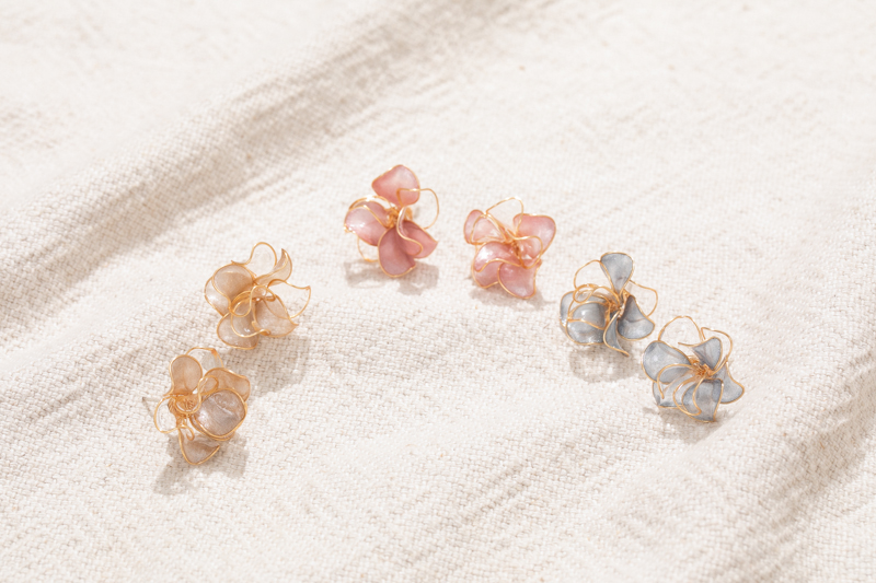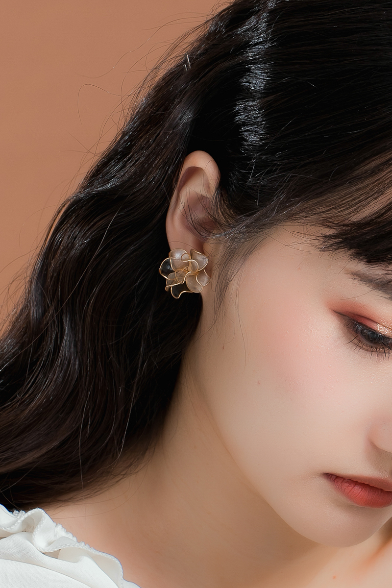 【曇花-奶油金】貼耳式耳環 | 水晶花飾品