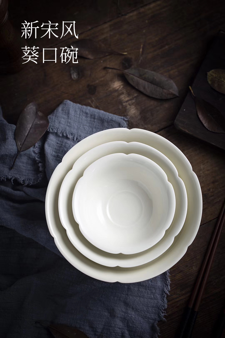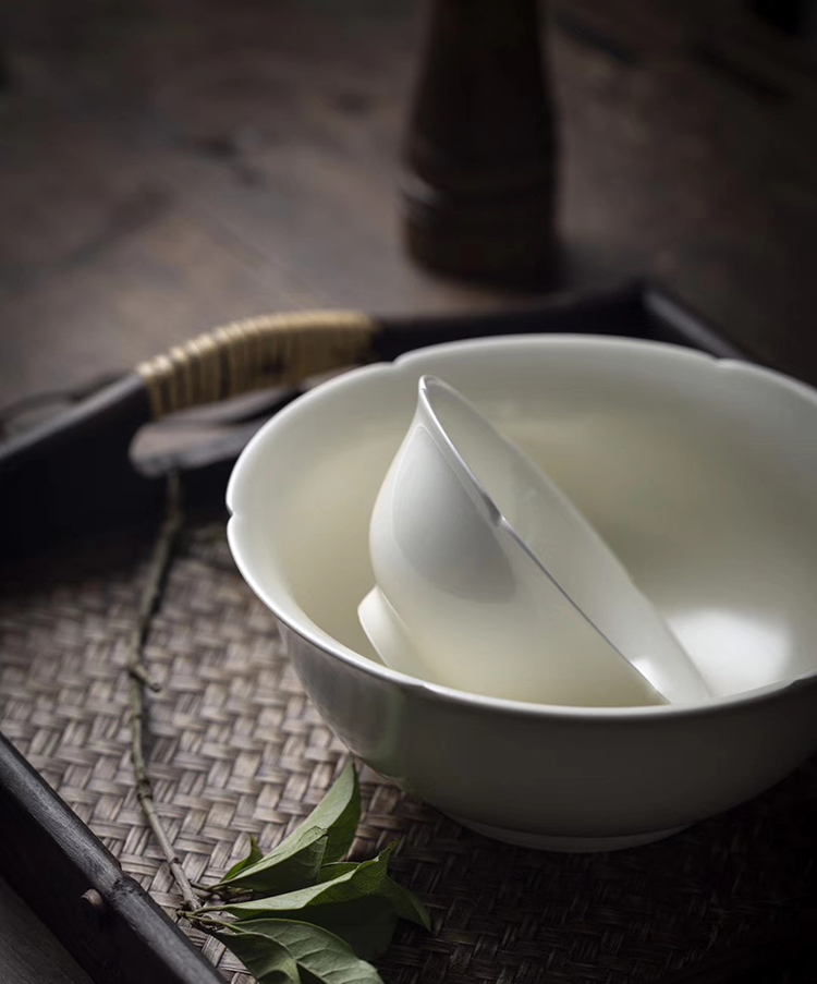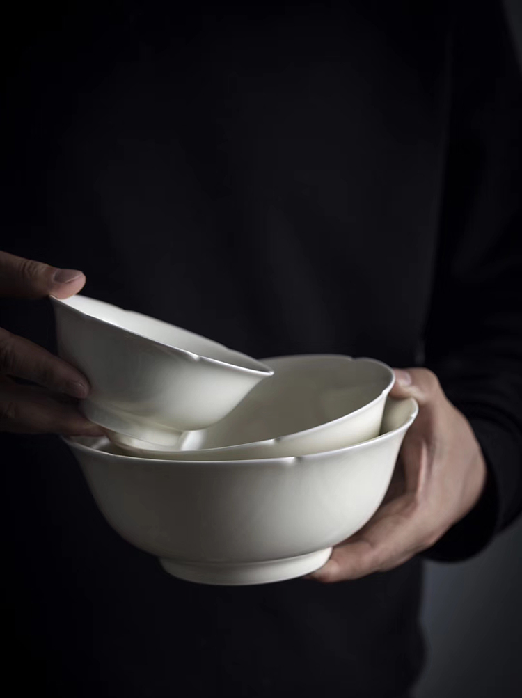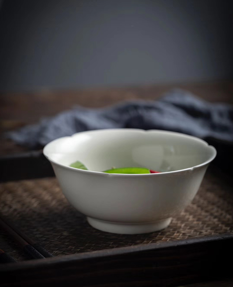 葵口飯碗 米白釉餐具 中式宋風 景德鎮白瓷