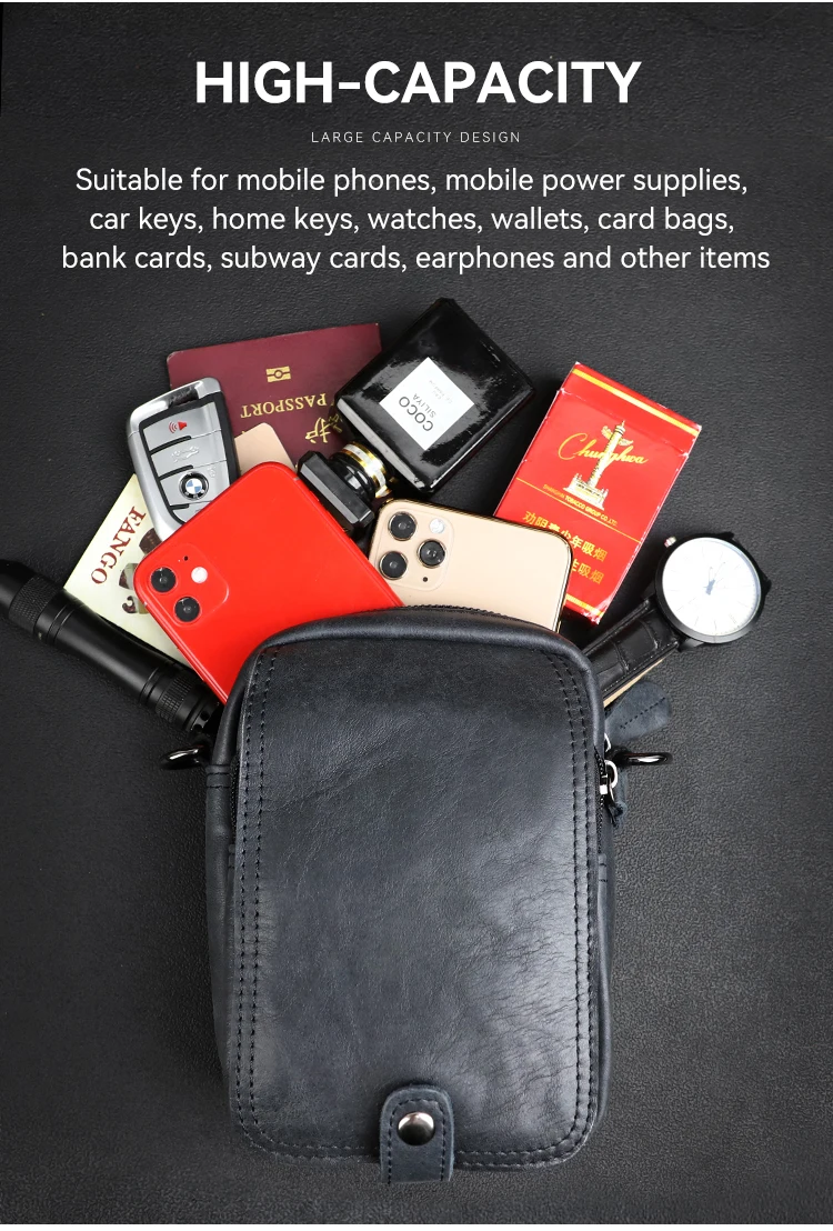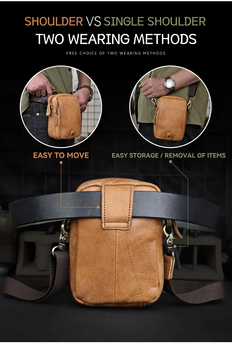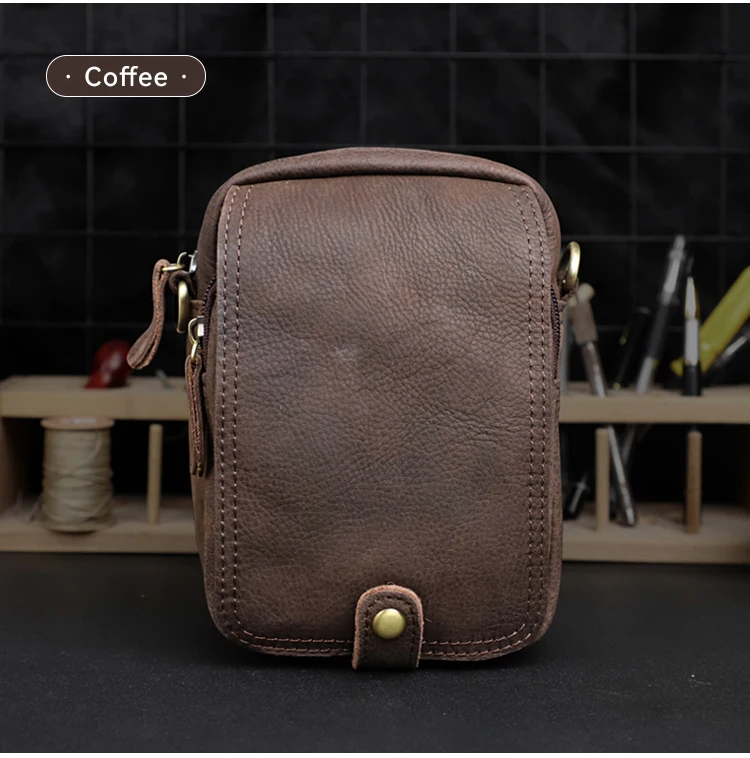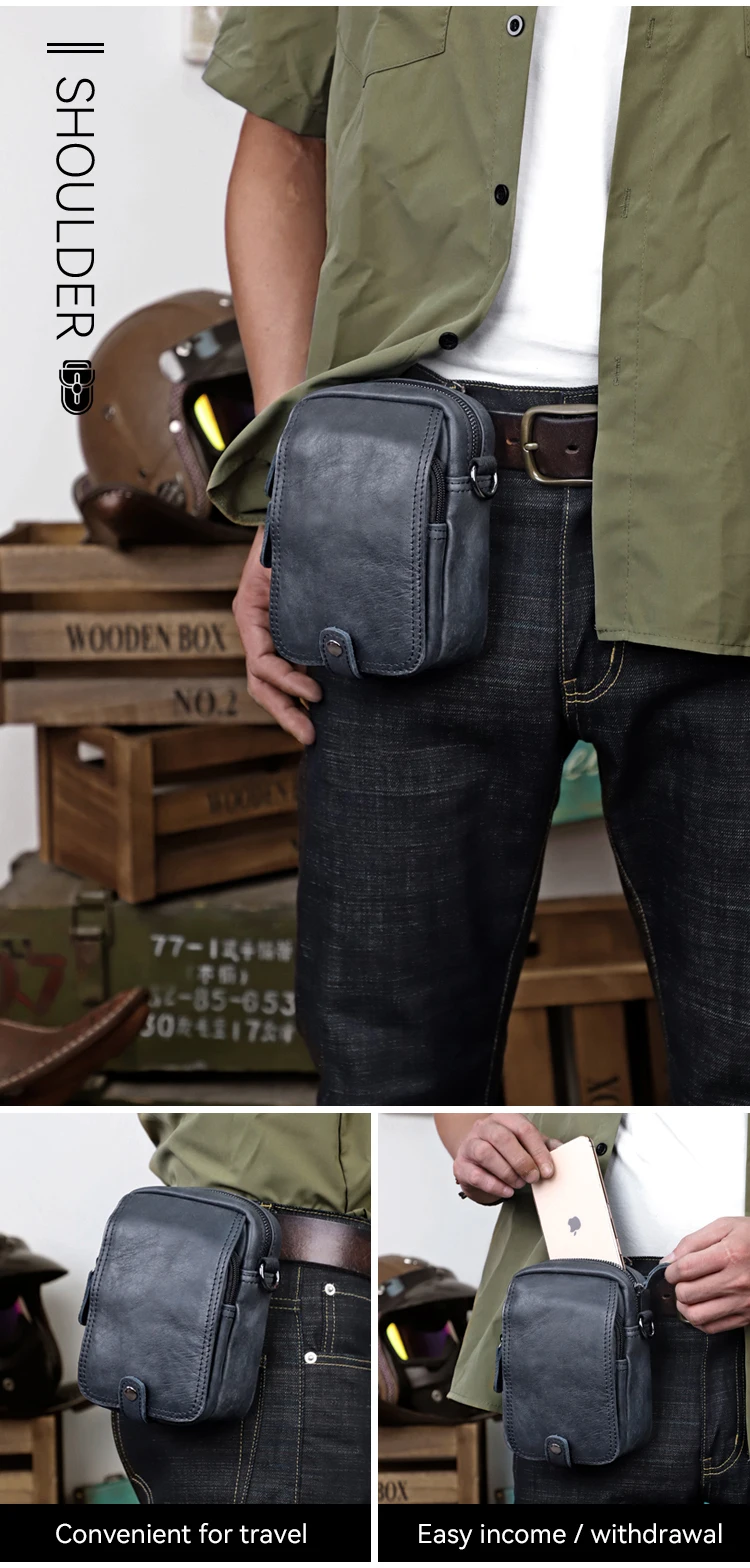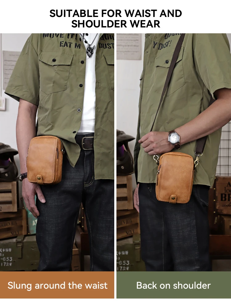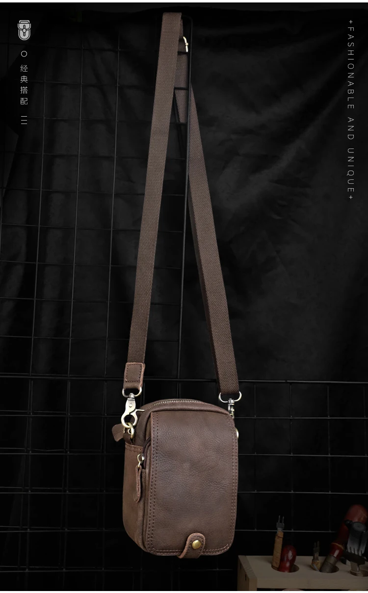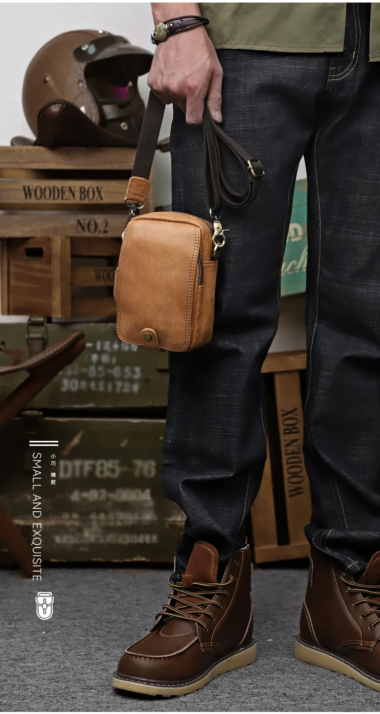 手工真皮男士腰包 迷你單肩斜跨煙盒小包 手機腰包 斜挎側背包