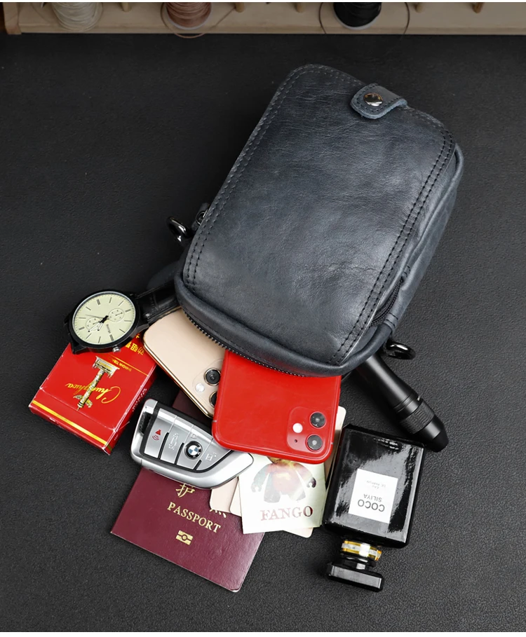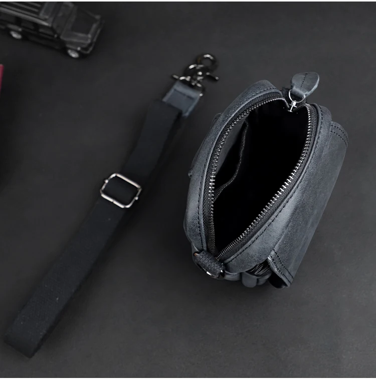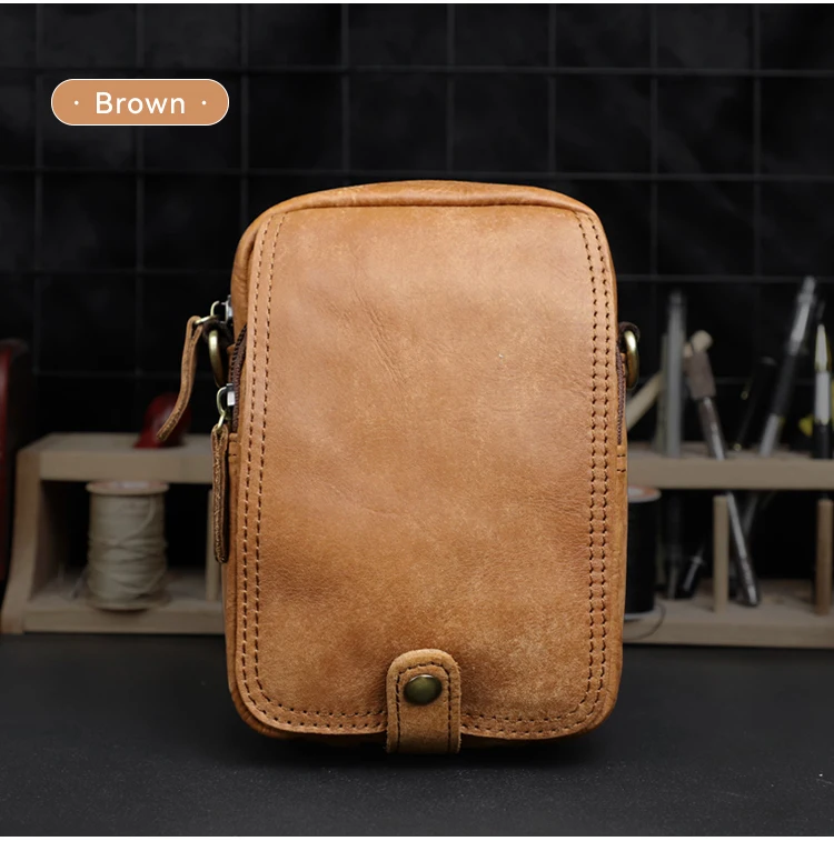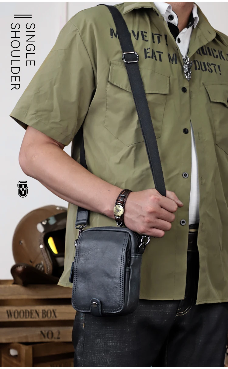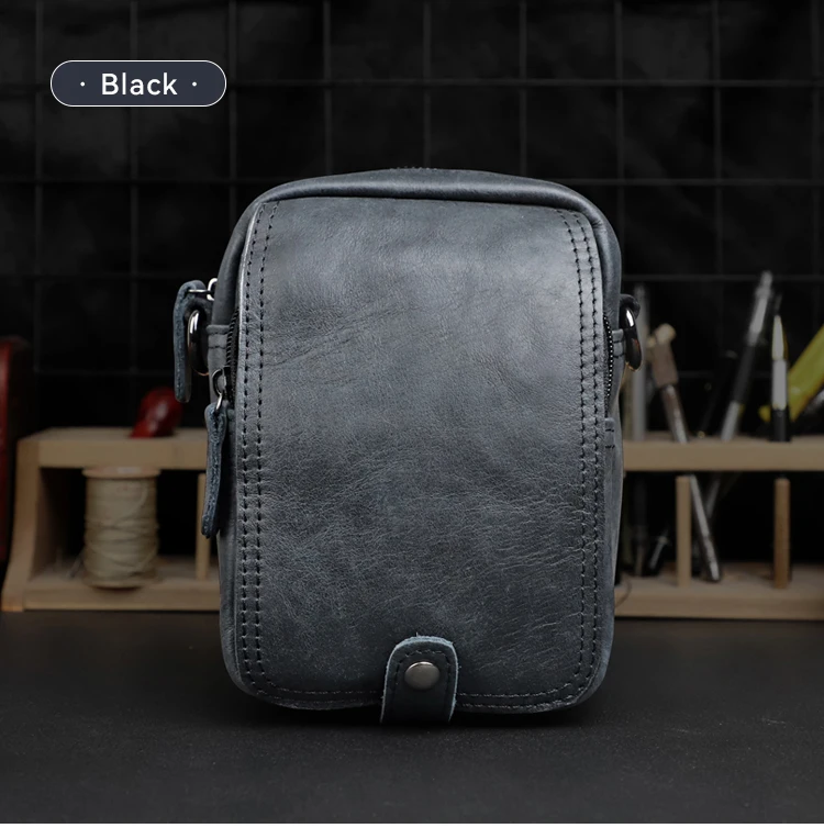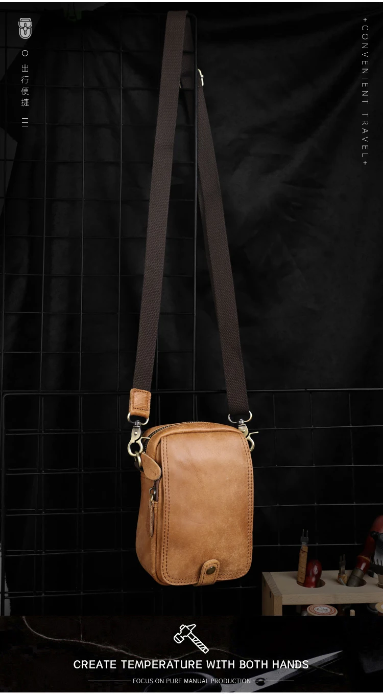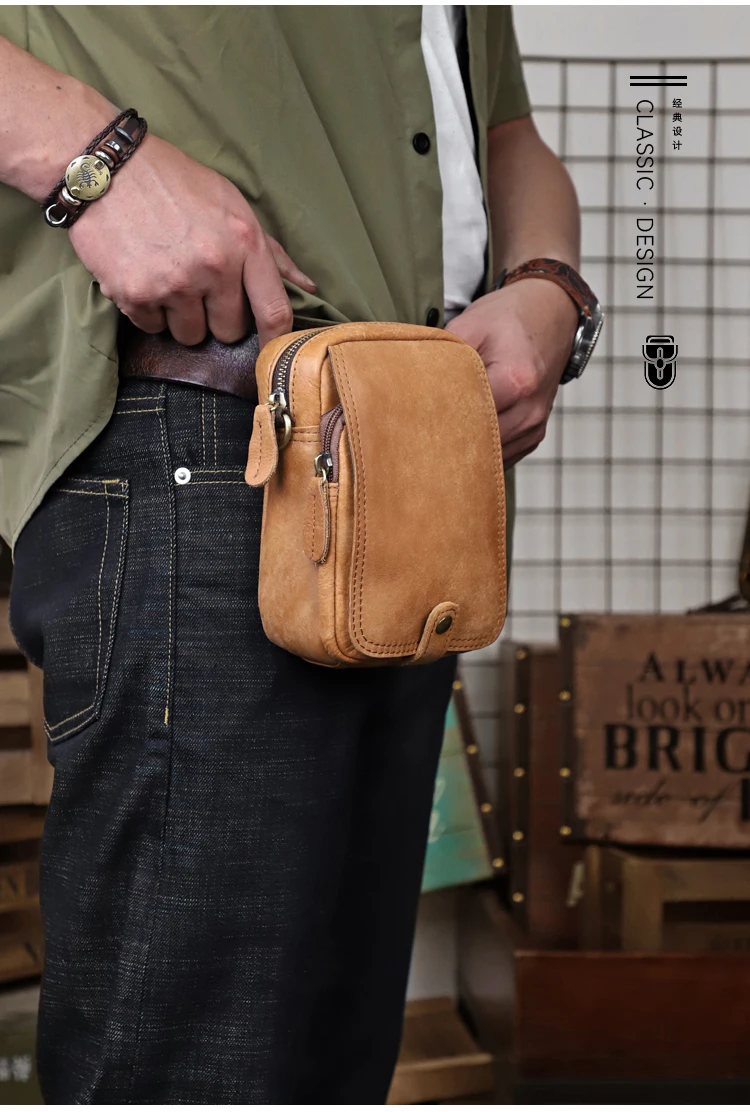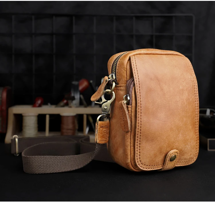 手工真皮男士腰包 迷你單肩斜跨煙盒小包 手機腰包 斜挎側背包