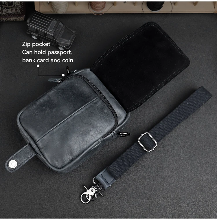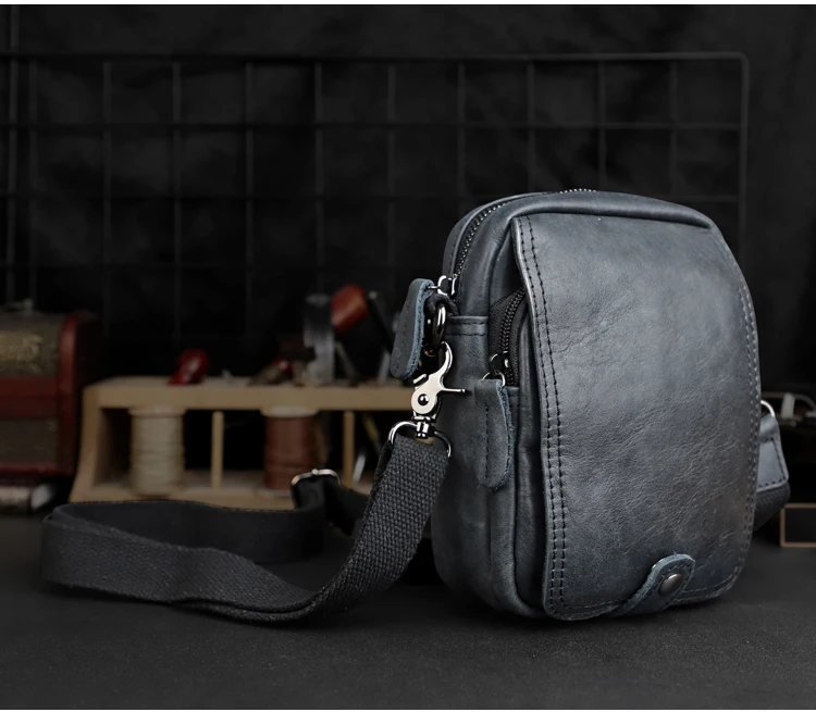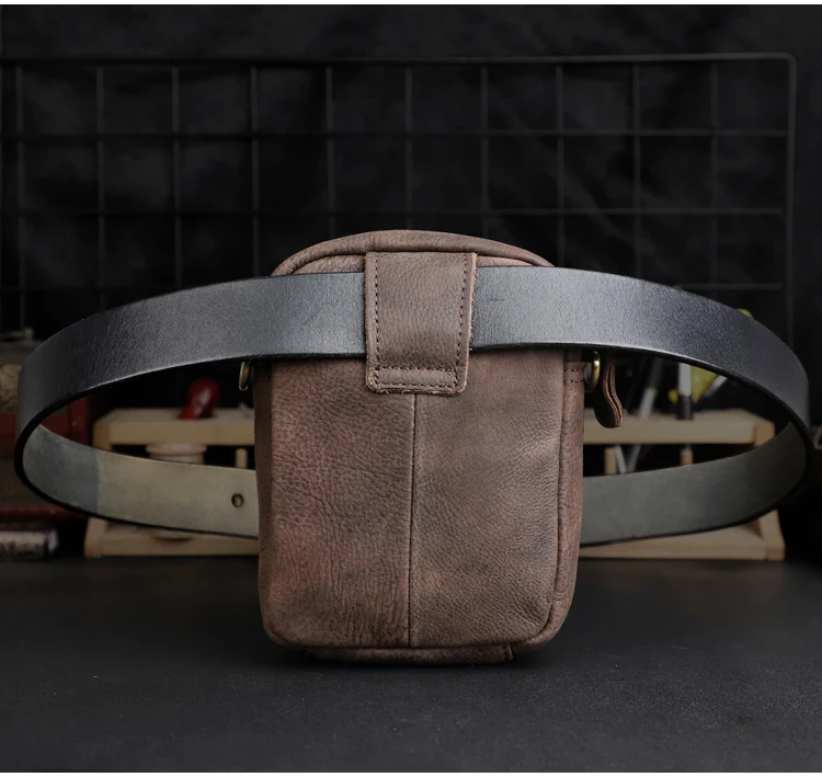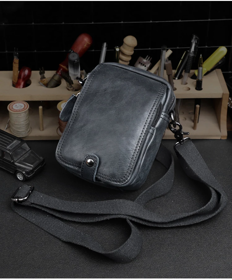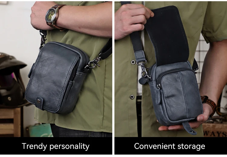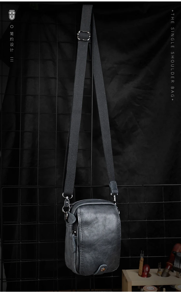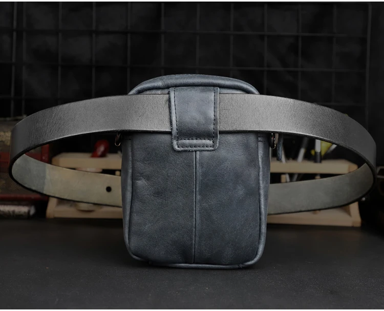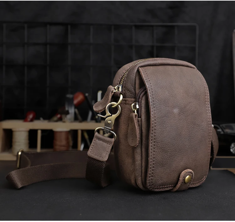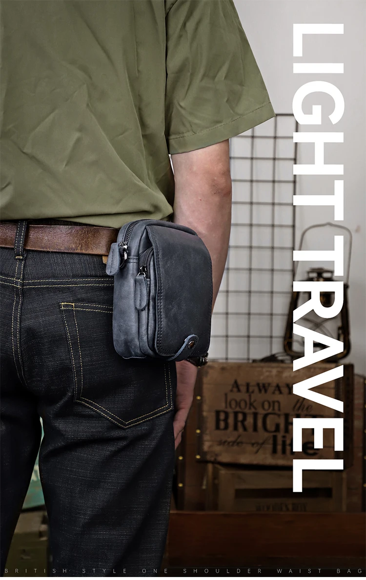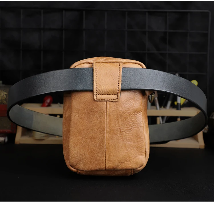 手工真皮男士腰包 迷你單肩斜跨煙盒小包 手機腰包 斜挎側背包