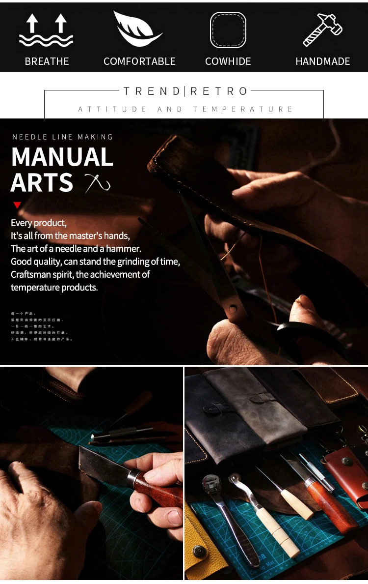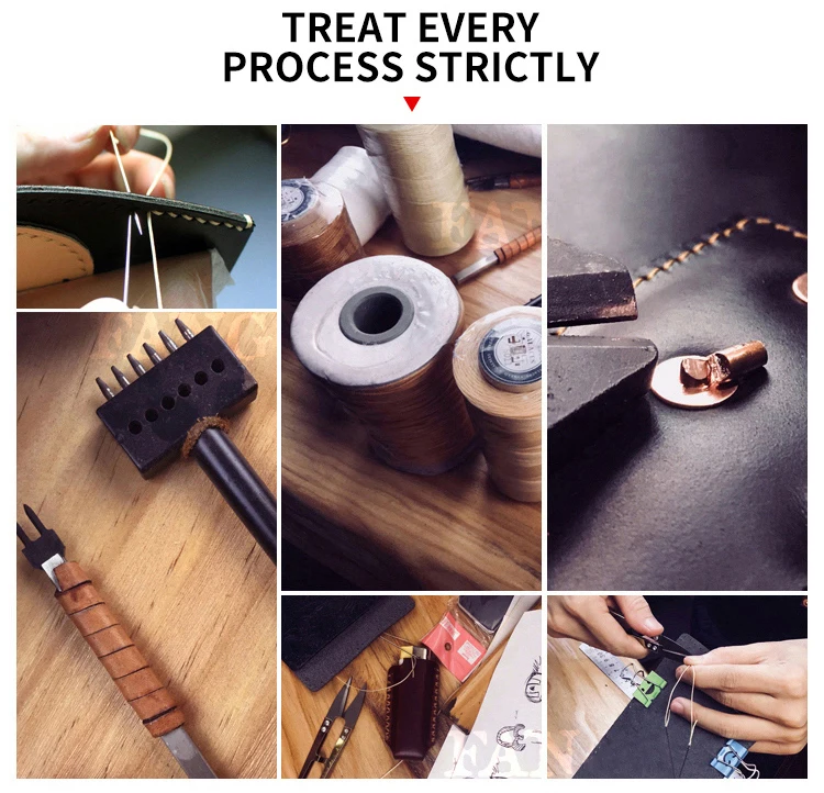 我們選用優質復古頭層牛皮製作,牛皮本身會存在一些天然屬性,如生長紋、血筋、摩擦出的顏色變化、皮斑、紋路不均勻、蚊蟲叮咬,均不屬於質量問題。手工製作的過程中,也會常常留下指甲印、刮痕、壓印、打磨痕跡等等問題,也不屬於質量問題。