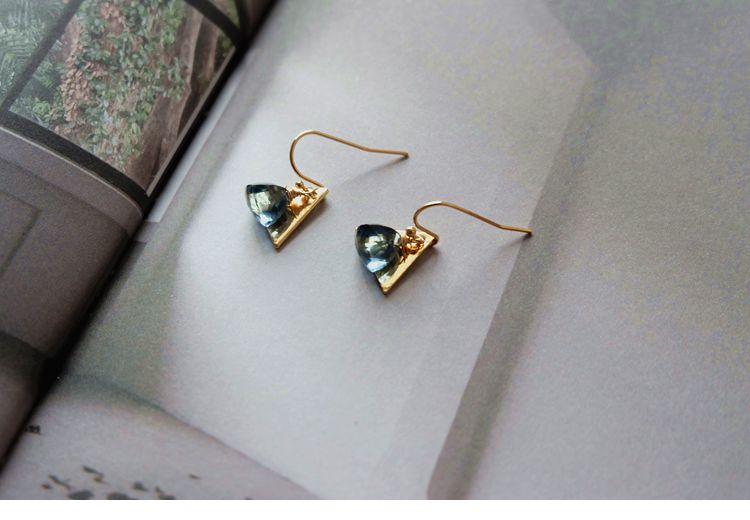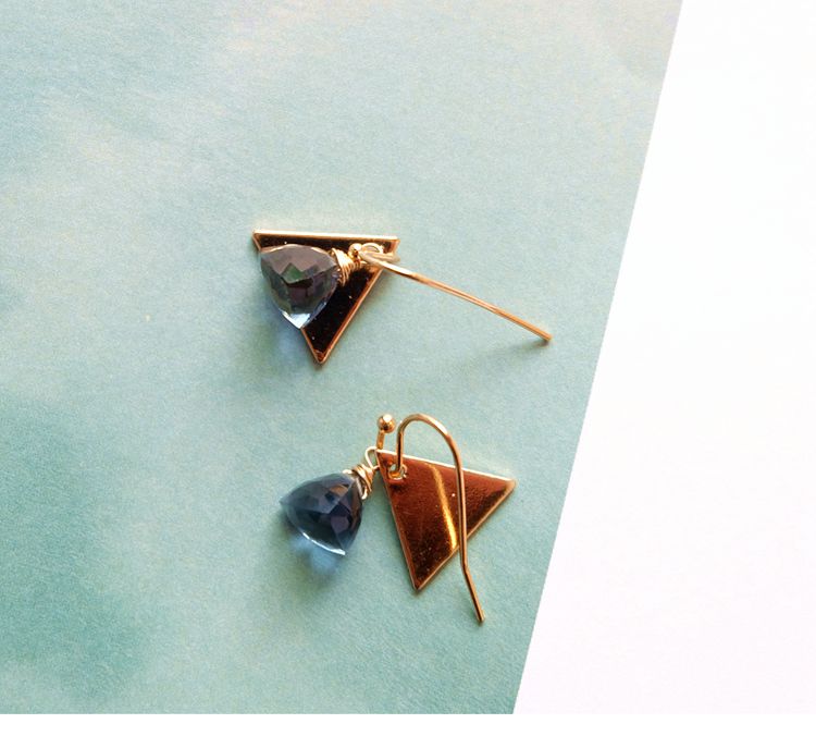 材質:14K包金耳環配件 立體刻面煙霧藍石英水晶 三角優質銅片