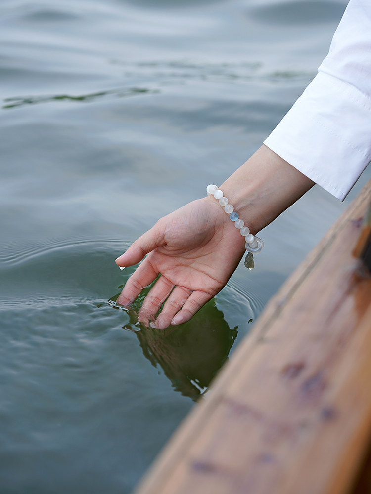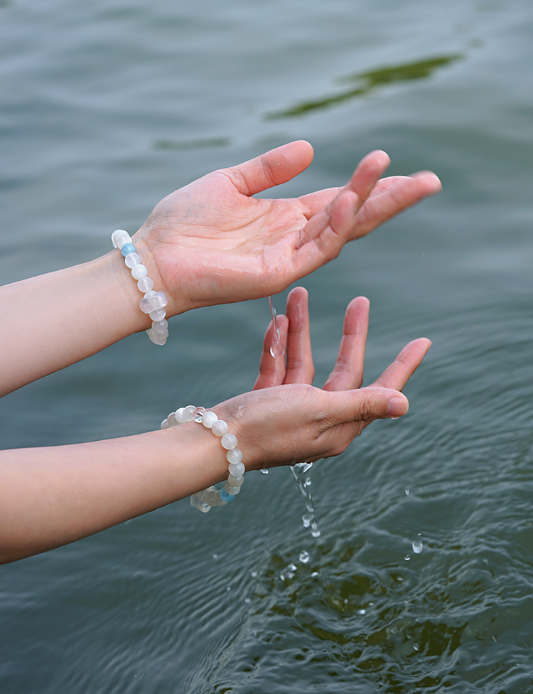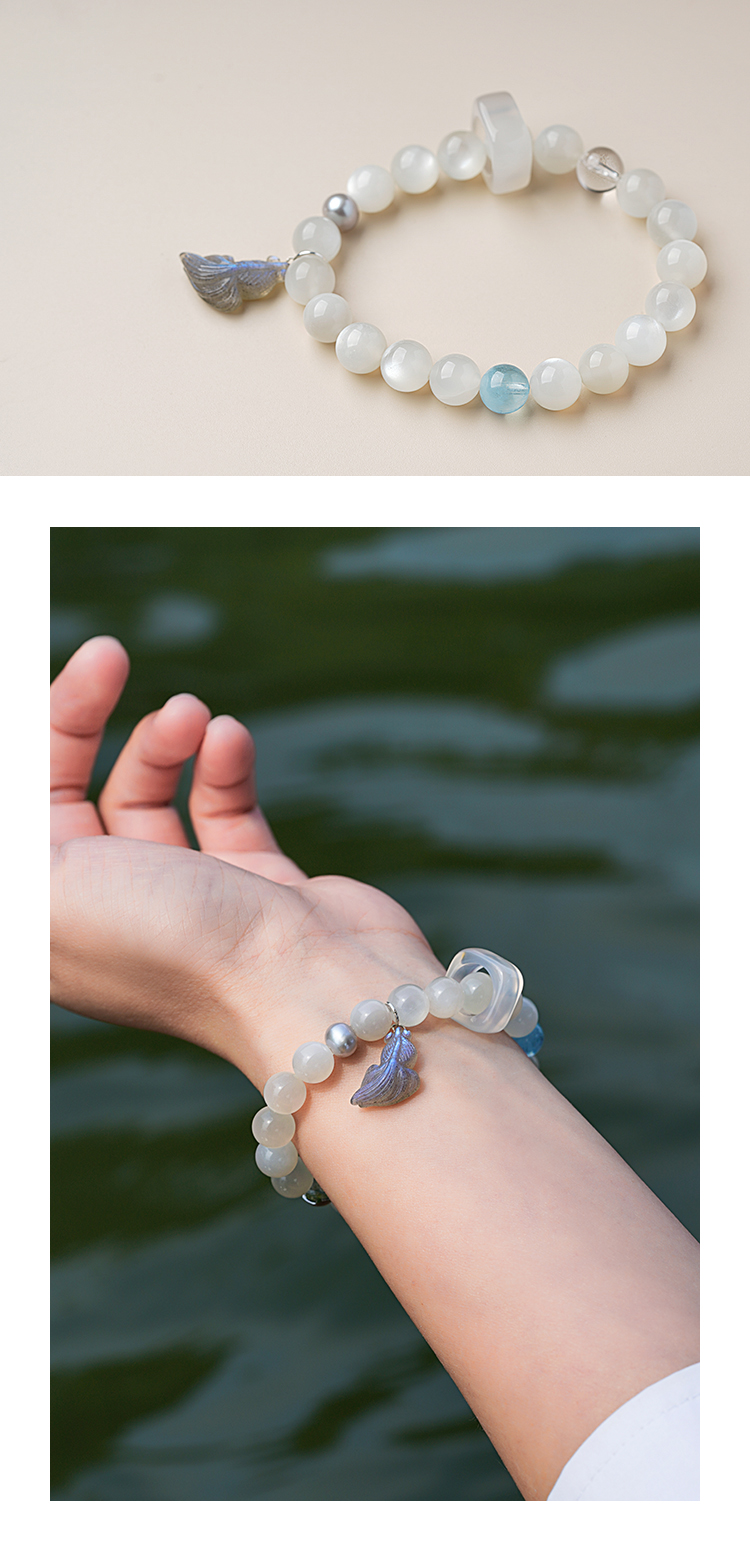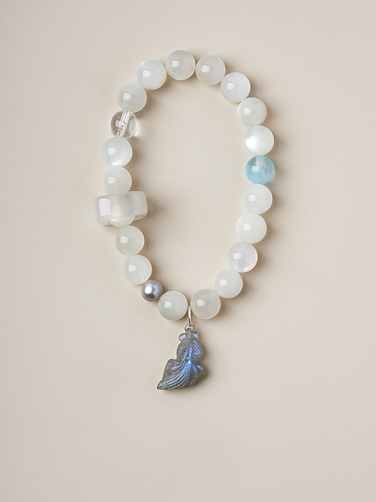 幽幽白月光手鏈 未時簡單幹淨天然月光石串珠金魚女夏ins精致禮物