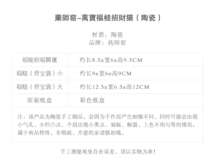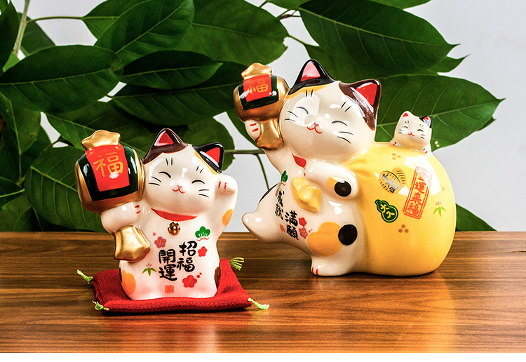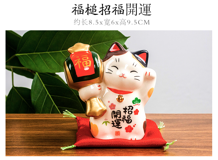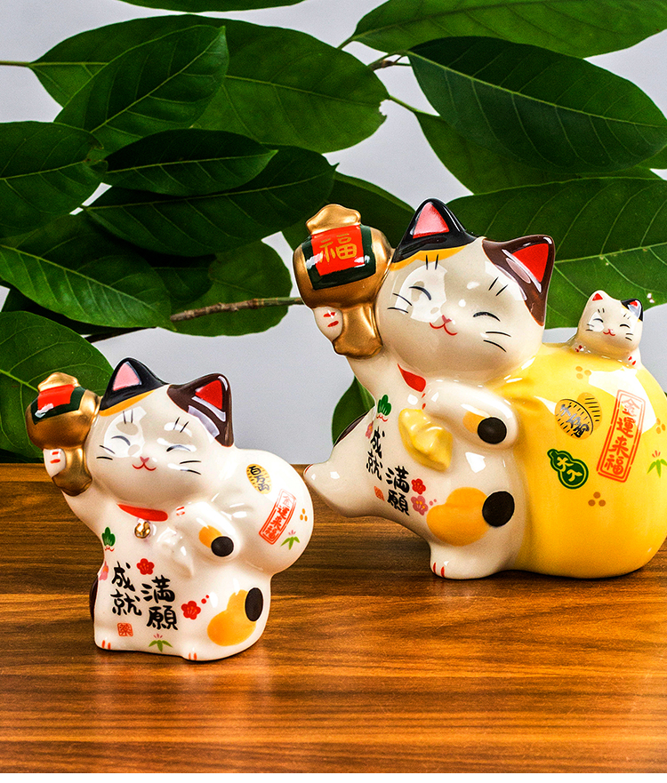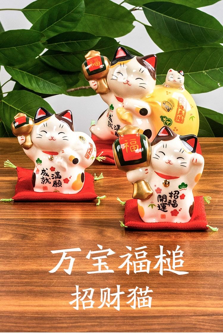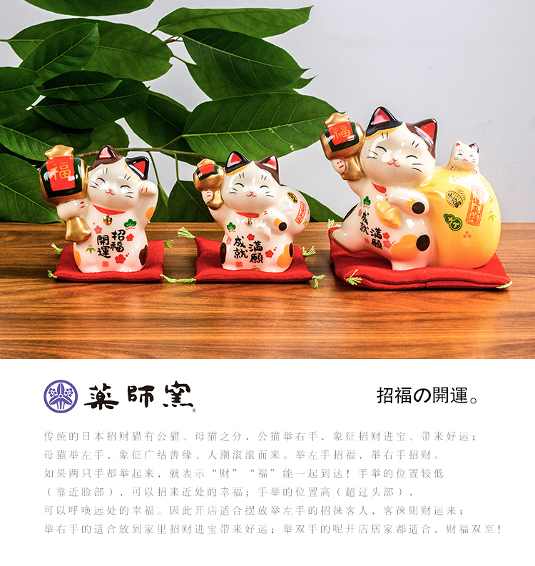 日本藥師窯萬寶福槌招財貓滿願成就陶瓷辦公桌小擺件招福開運禮物