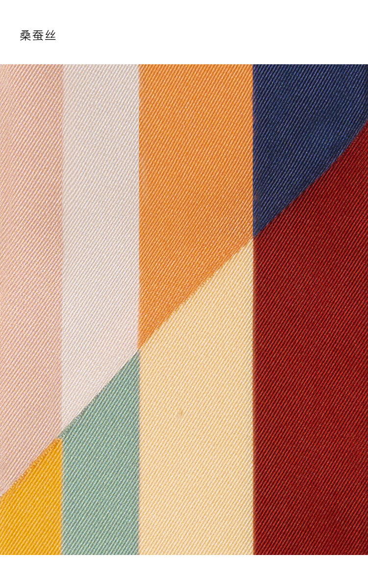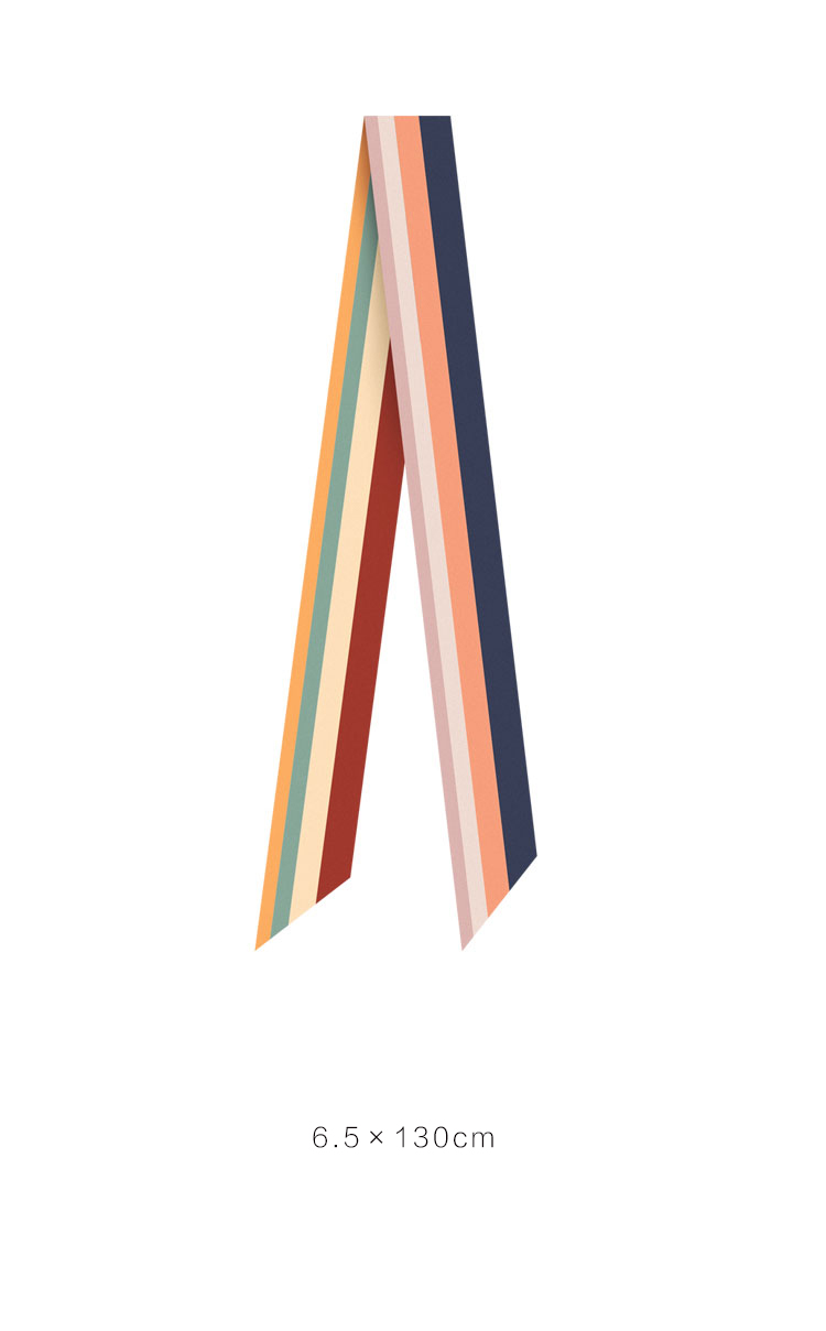 retar 美式復古彩色條紋緞帶式長條絲巾髮帶腰帶桑蠶絲真絲圍巾