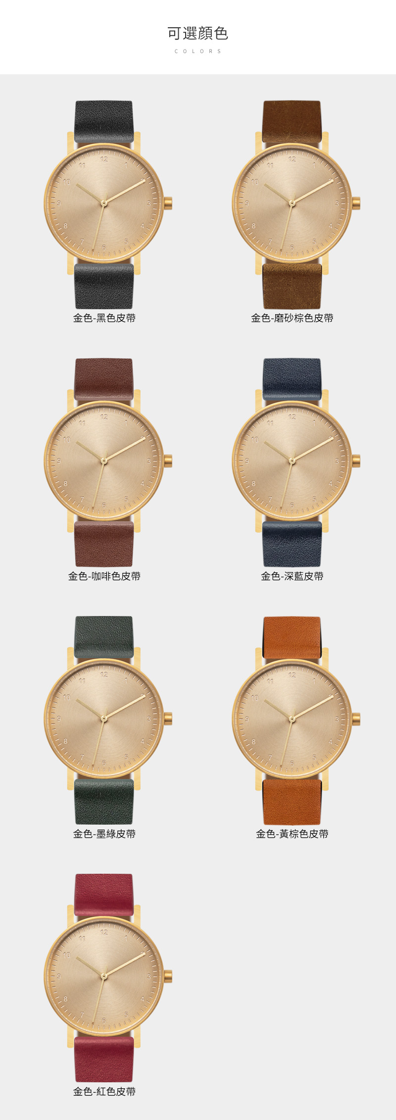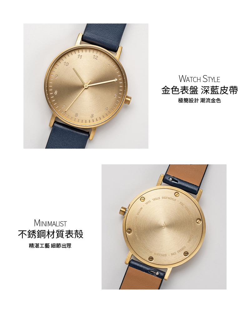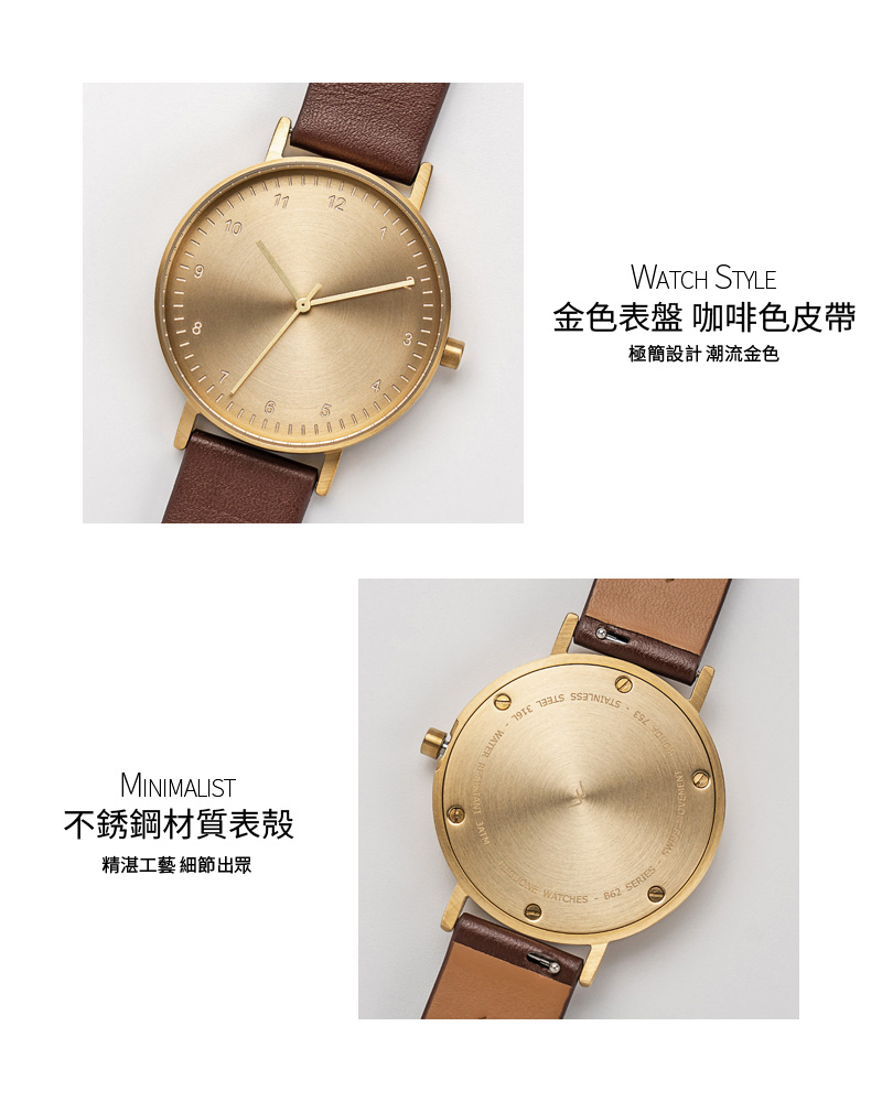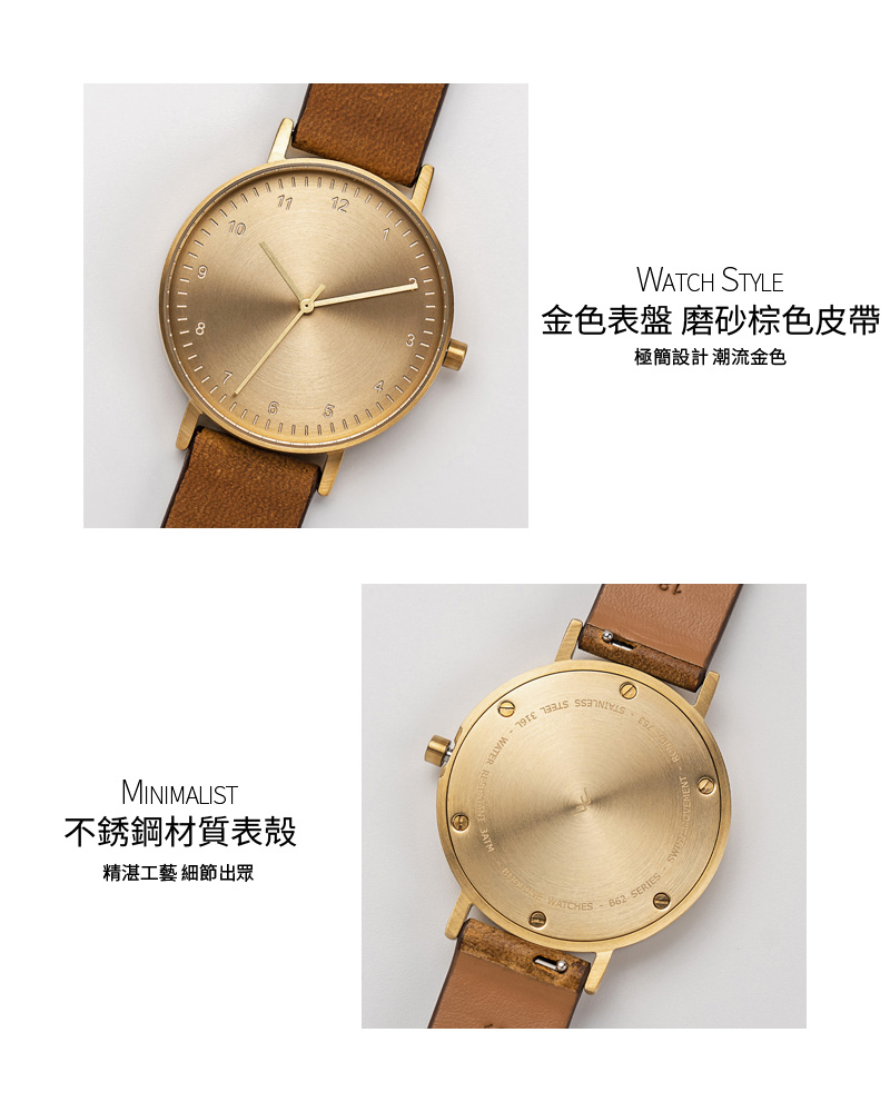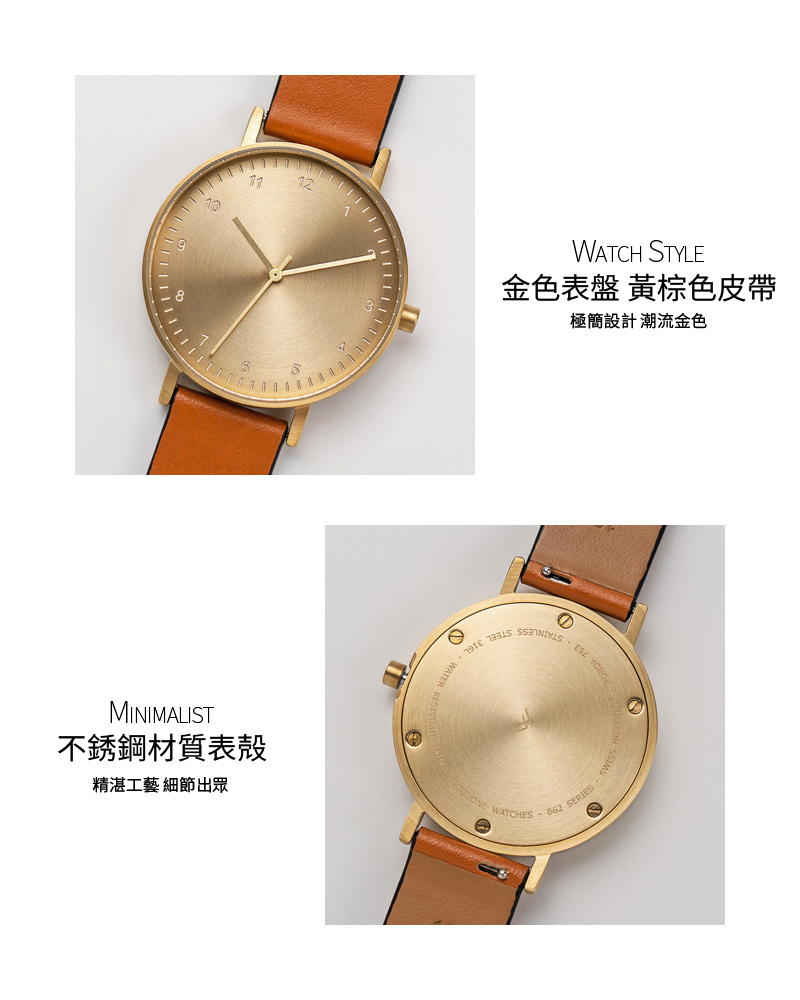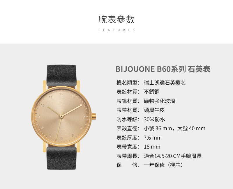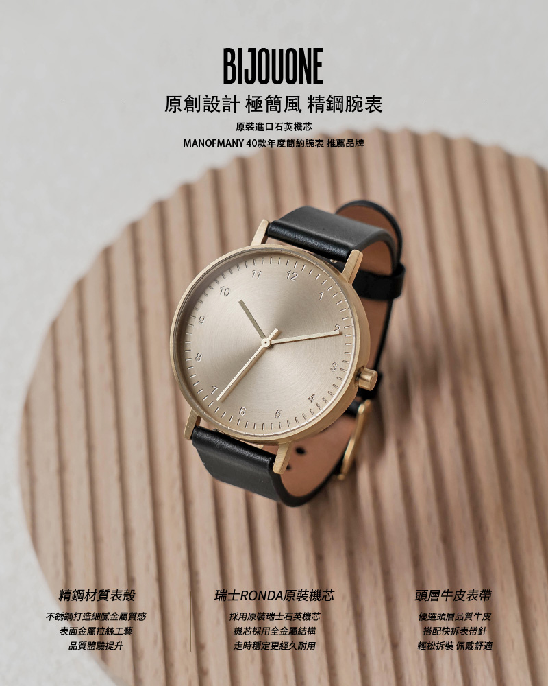 BIJOUONE彼樹灣 B60系列 金色款 潮流時尚設計表盤,搭配真皮表帶。