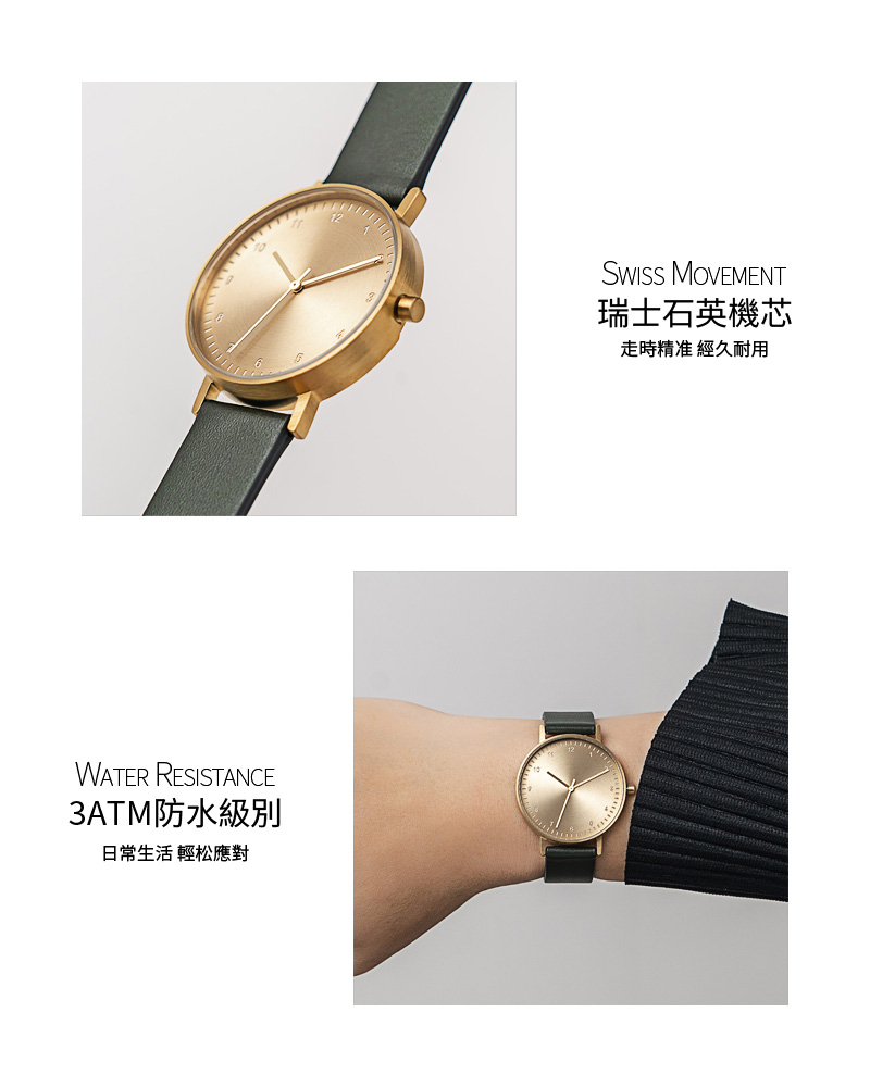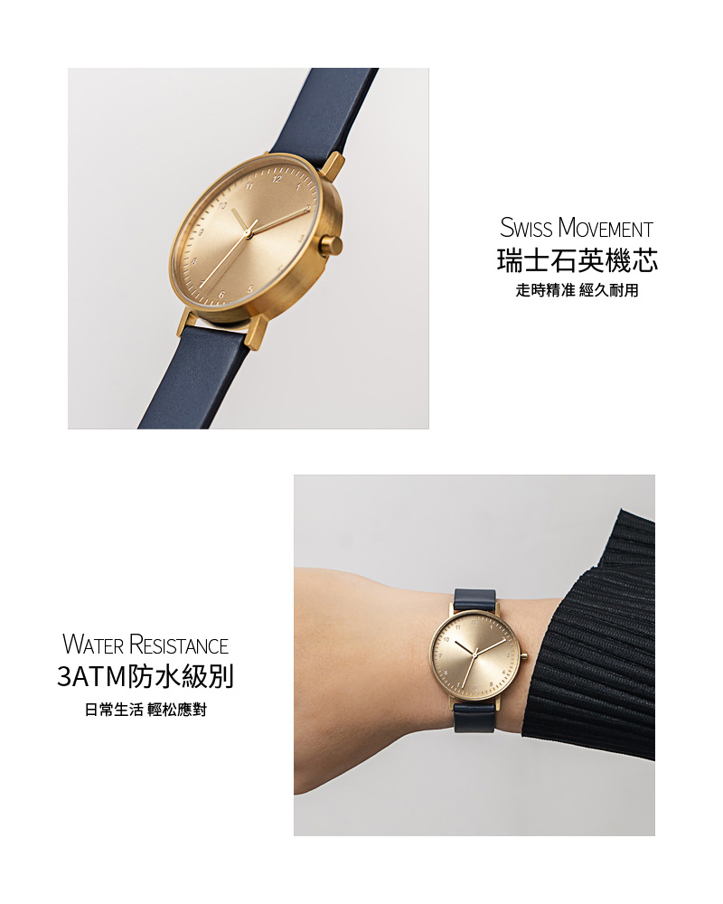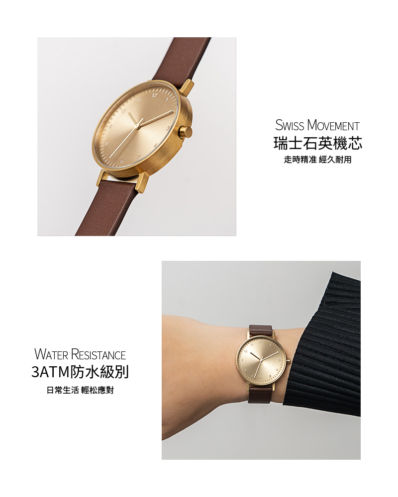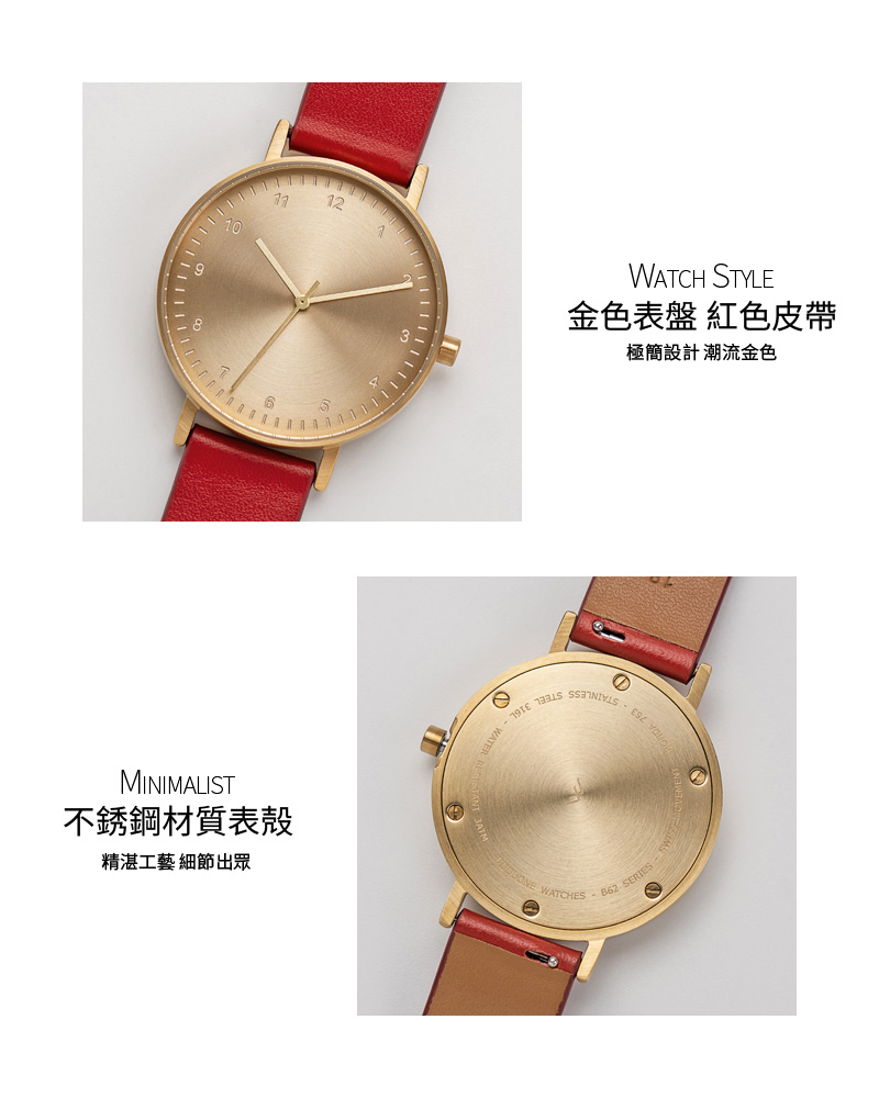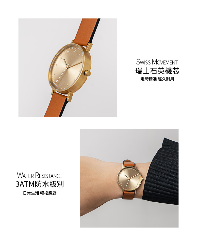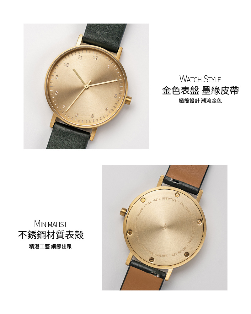 BIJOUONE彼樹灣 B60系列 金色款 潮流時尚設計表盤,搭配真皮表帶。