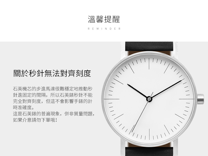 指針手錶的秒針不能完全對齊刻度,是因為石英機芯的步進馬達很難穩定推動秒針前進固定的間隔,但這不會影響手錶的計時准確度。