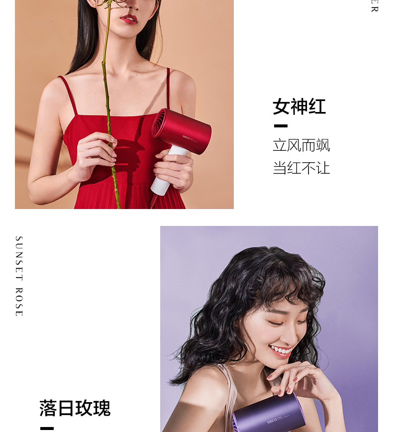 素士負離子護發吹風機大功率家用電吹風筒女生小型智能速乾宿舍用,沙龍級大風量,3000萬負離子,冷熱循環模式,雙造型風嘴,一吹絕殺,速乾更柔順;緞光金屬機身,質感自帶高光,經典暢銷!