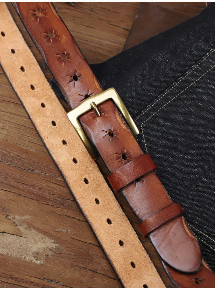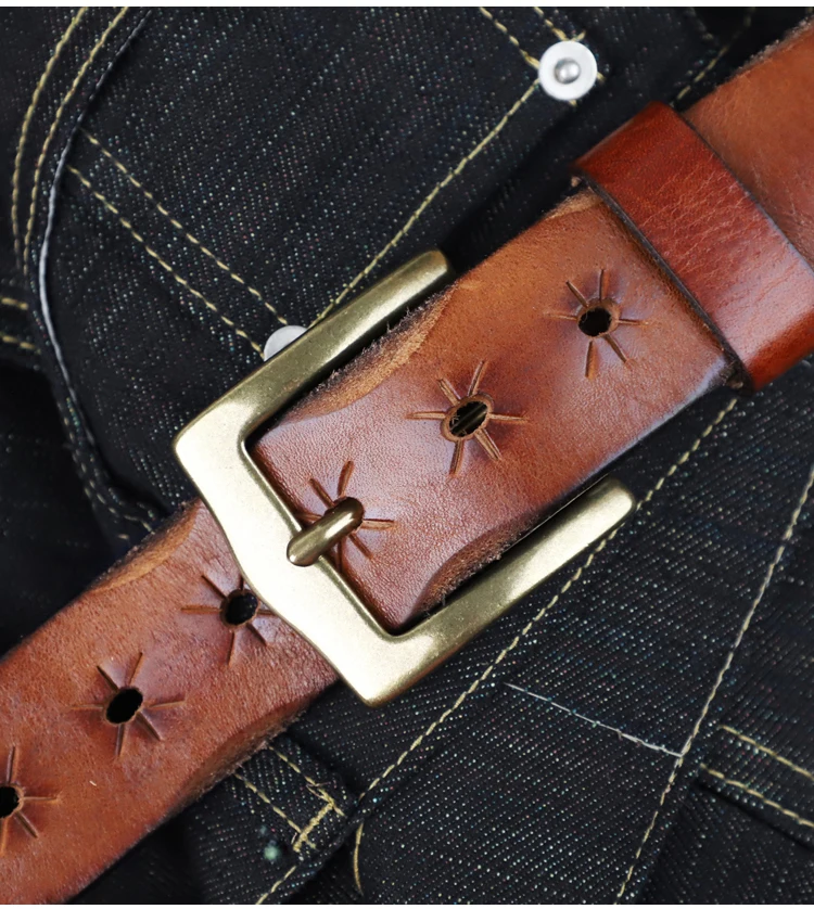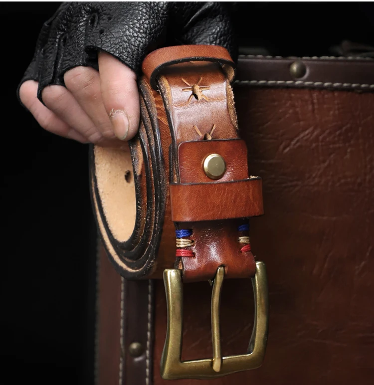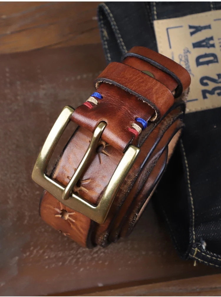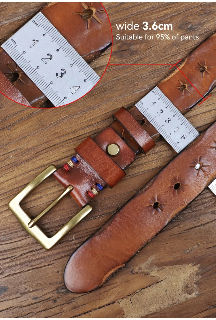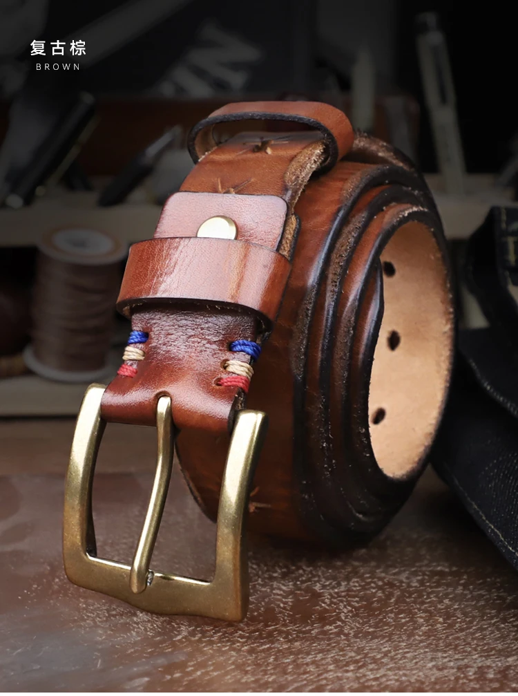 復古植鞣革牛皮帶 素色針扣腰帶 36mm寬男士休閒