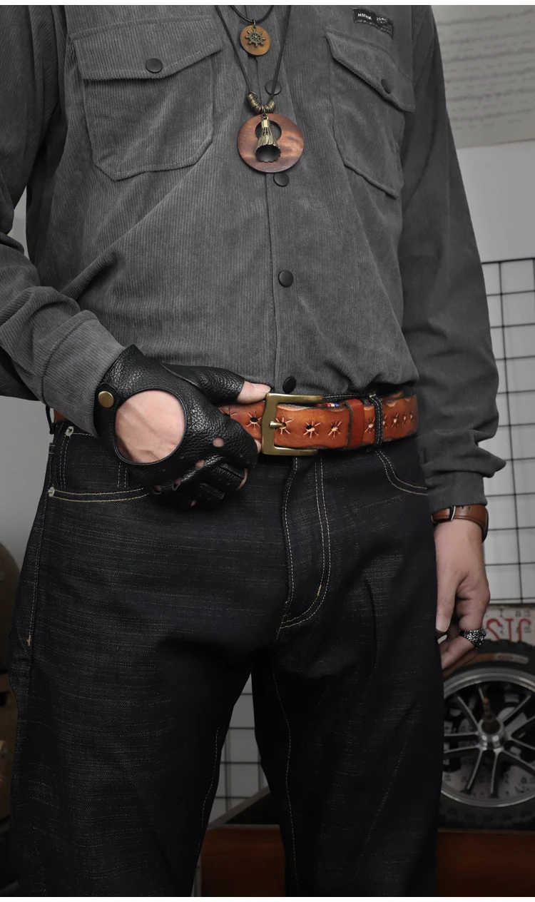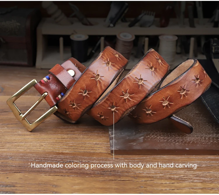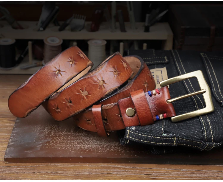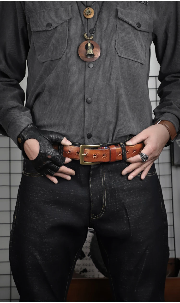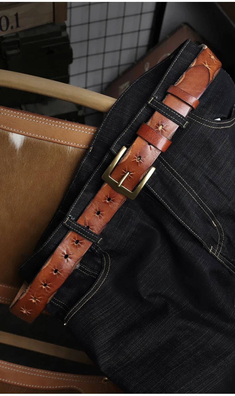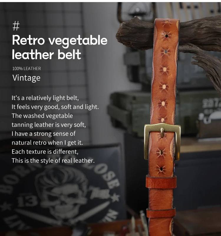 復古植鞣革牛皮帶 素色針扣腰帶 36mm寬男士休閒