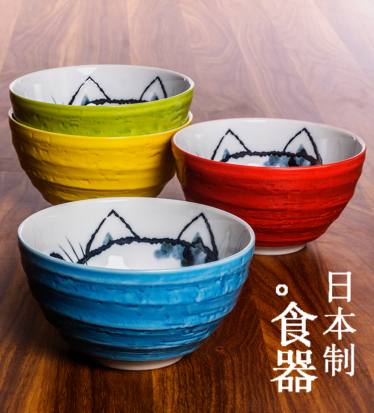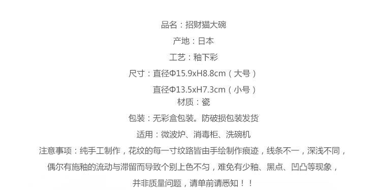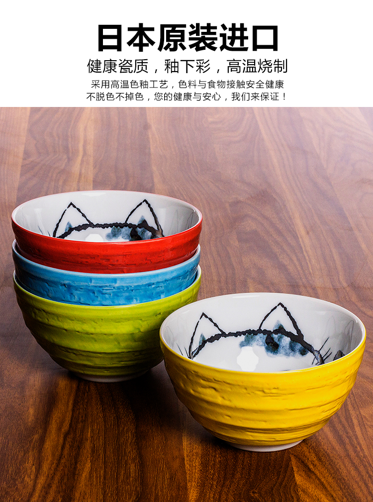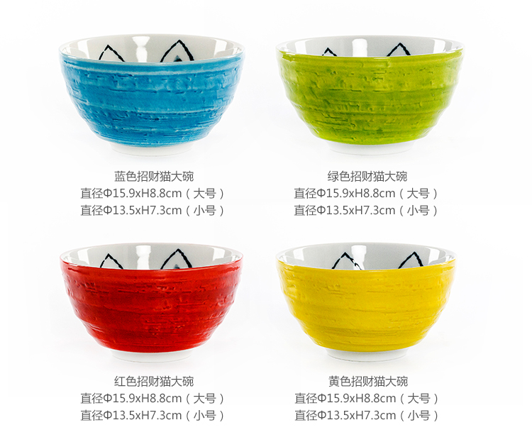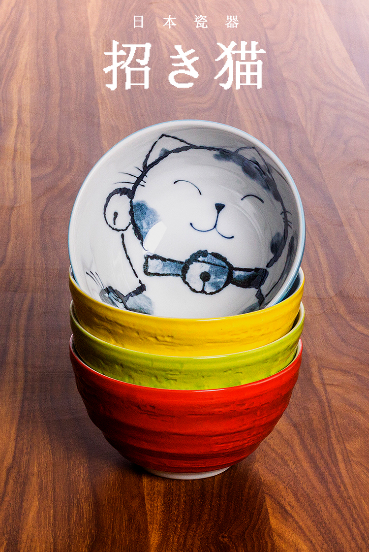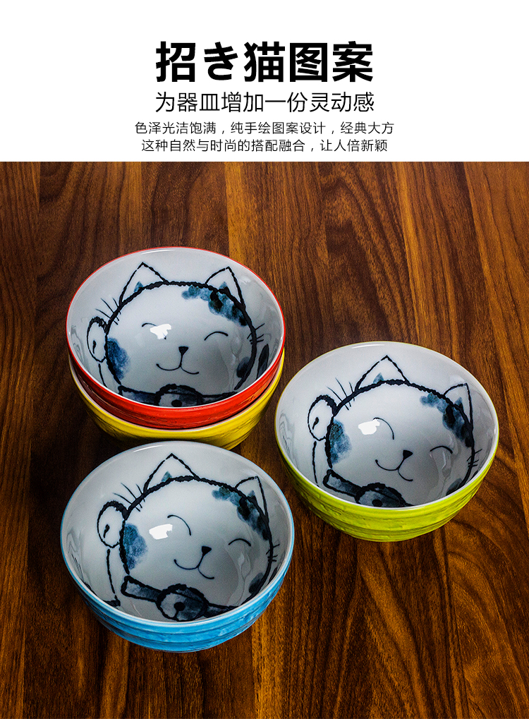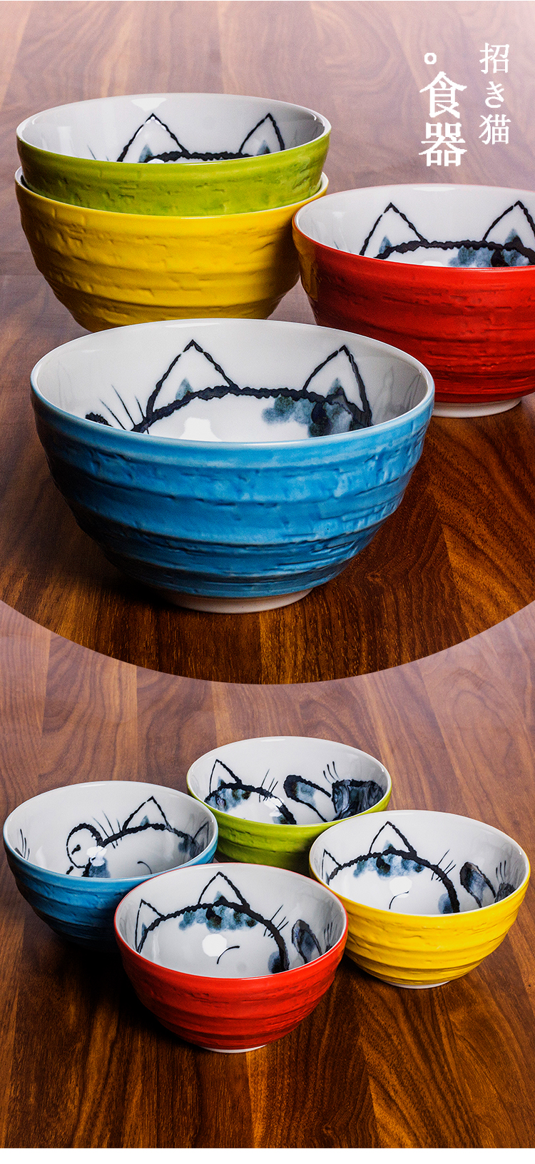 美濃燒日本招財貓陶瓷碗湯碗沙拉碗拉麵碗大號家用飯碗釉下彩日式