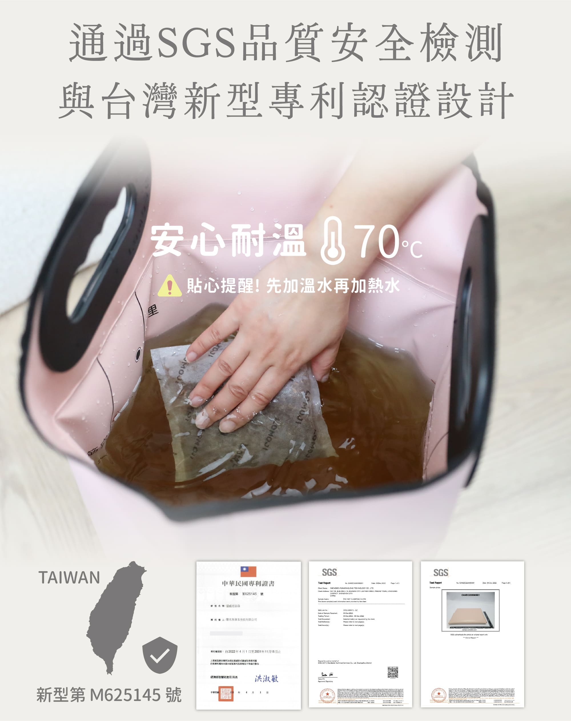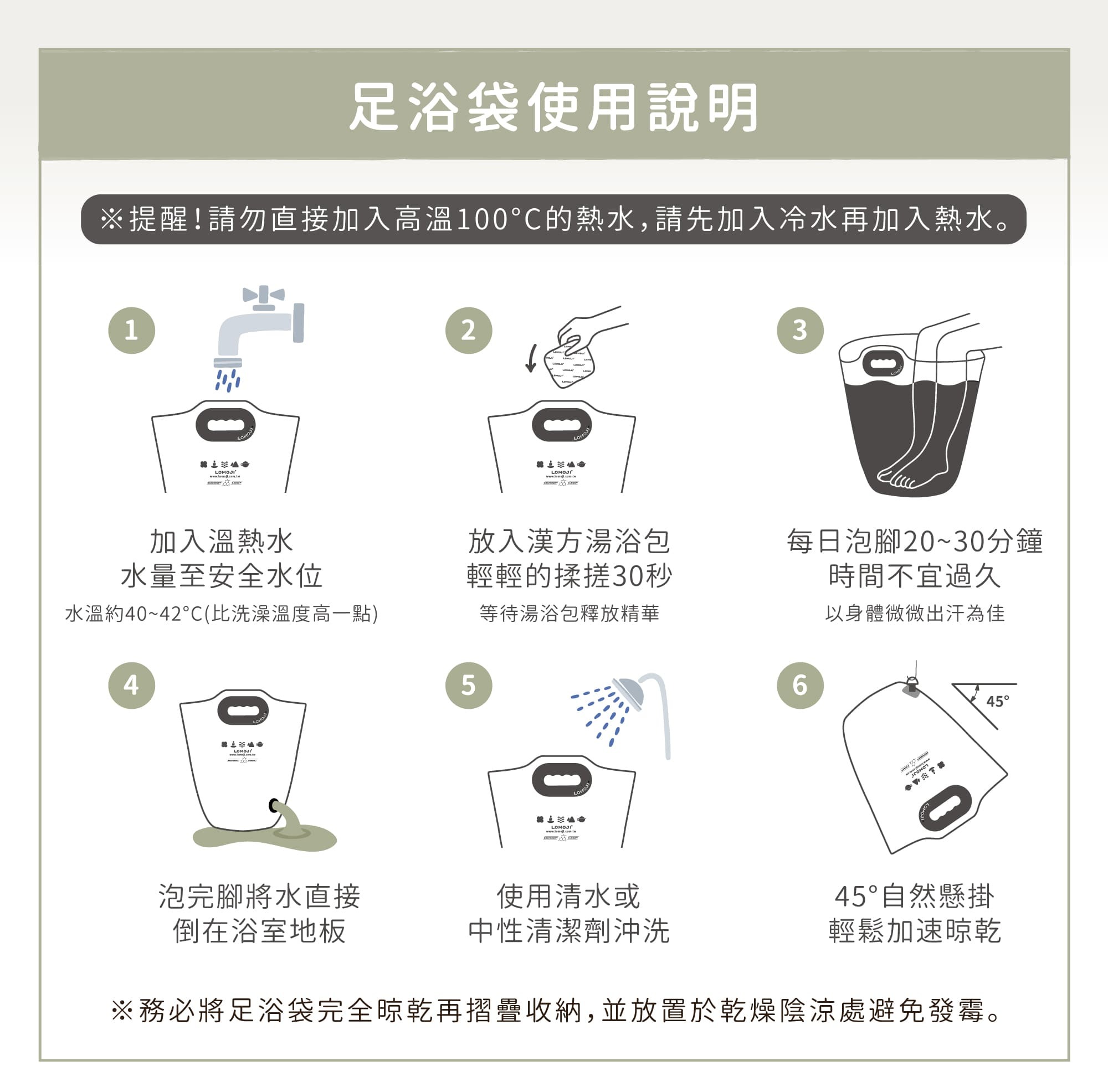 使用說明|足浴袋耐熱度為70度以下,請安全使用,小心燙傷! (切勿直接加入滾燙熱水於足浴袋內)