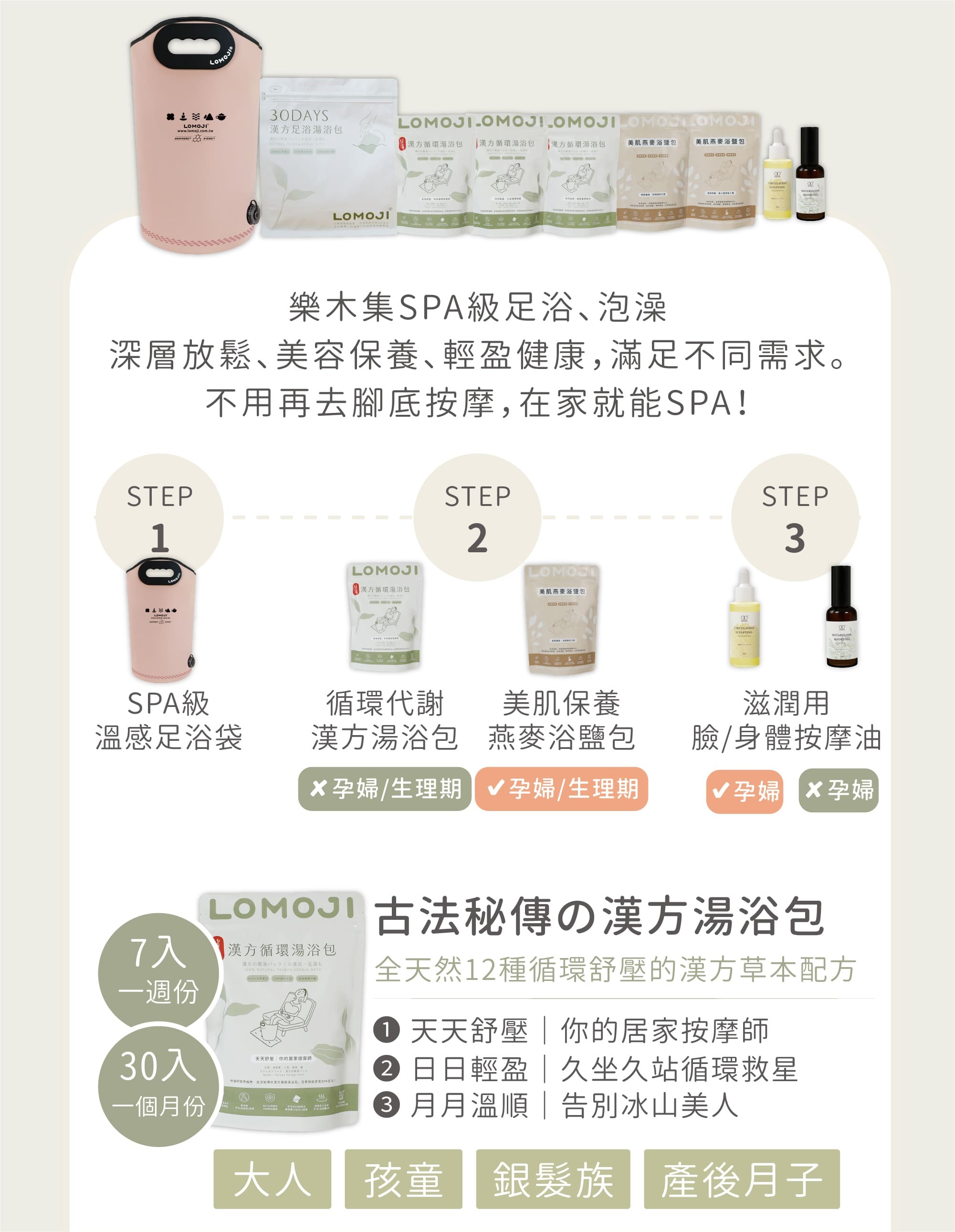 中醫藥浴已有幾千年歷史,透過古法秘傳的漢方湯浴泡腳,好處多多30天新陳代謝、循環代謝、放鬆,擔心市售入浴劑都添加化學的你,可以選擇天然的!中醫師推薦樂木集漢方泡腳,100%天然中藥材,經烘焙研磨製成,不使用任何化學方式處理,大人小孩都可以泡(泡腳放1包,泡澡放2包)經烘焙研磨製成,將藥浴精華鎖住,遇水即溶10秒散發療癒草本香氣,共有三款足浴主題/12種天然草本,無論要深層放鬆、美容保養、或輕盈健康,都可以滿足不同泡澡需求!全家都安心使用,更是久坐上班族必備!不用再去腳底按摩,在家就能SPA!