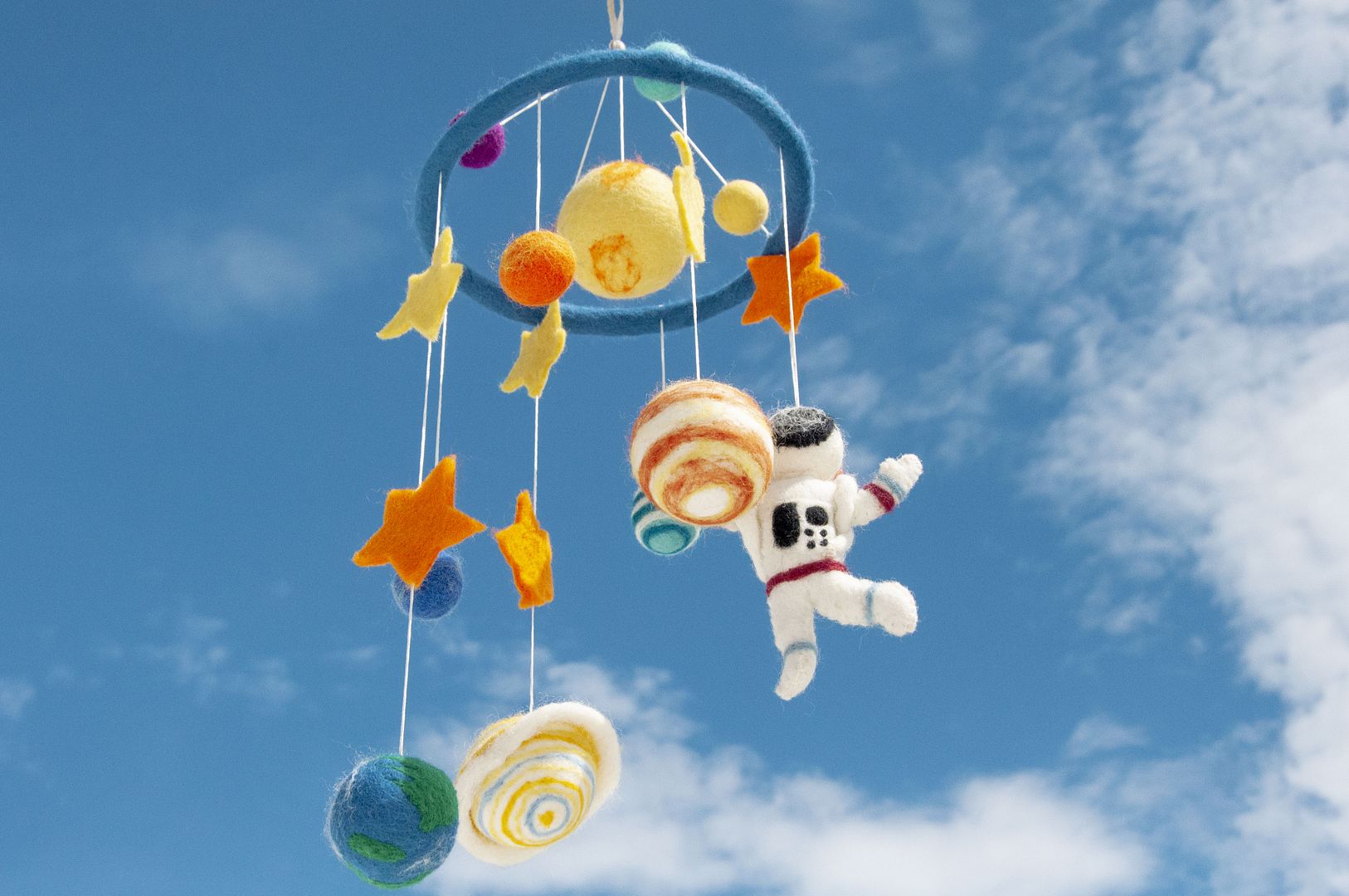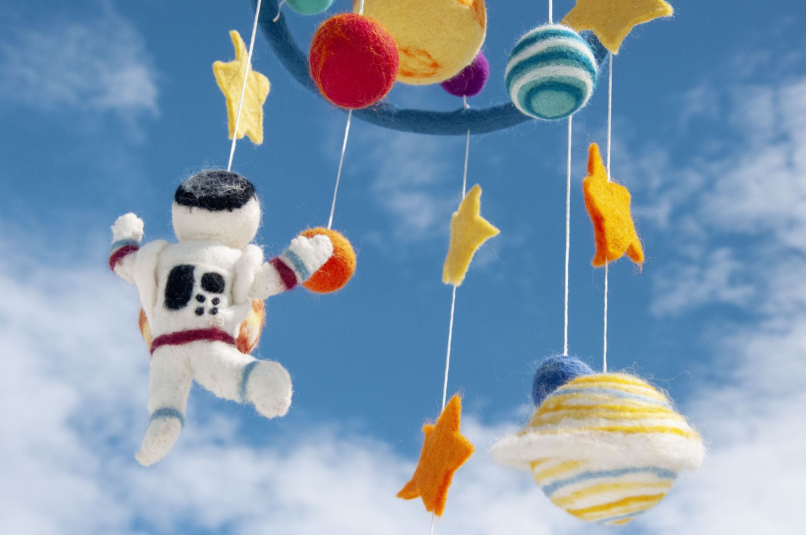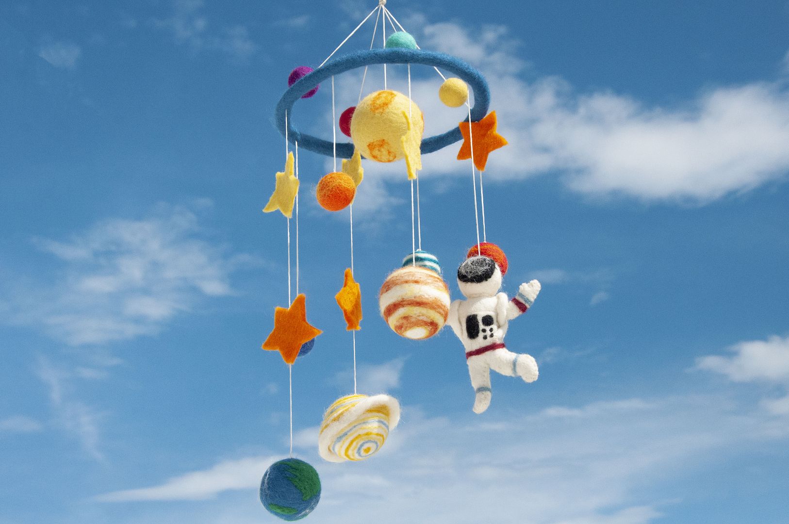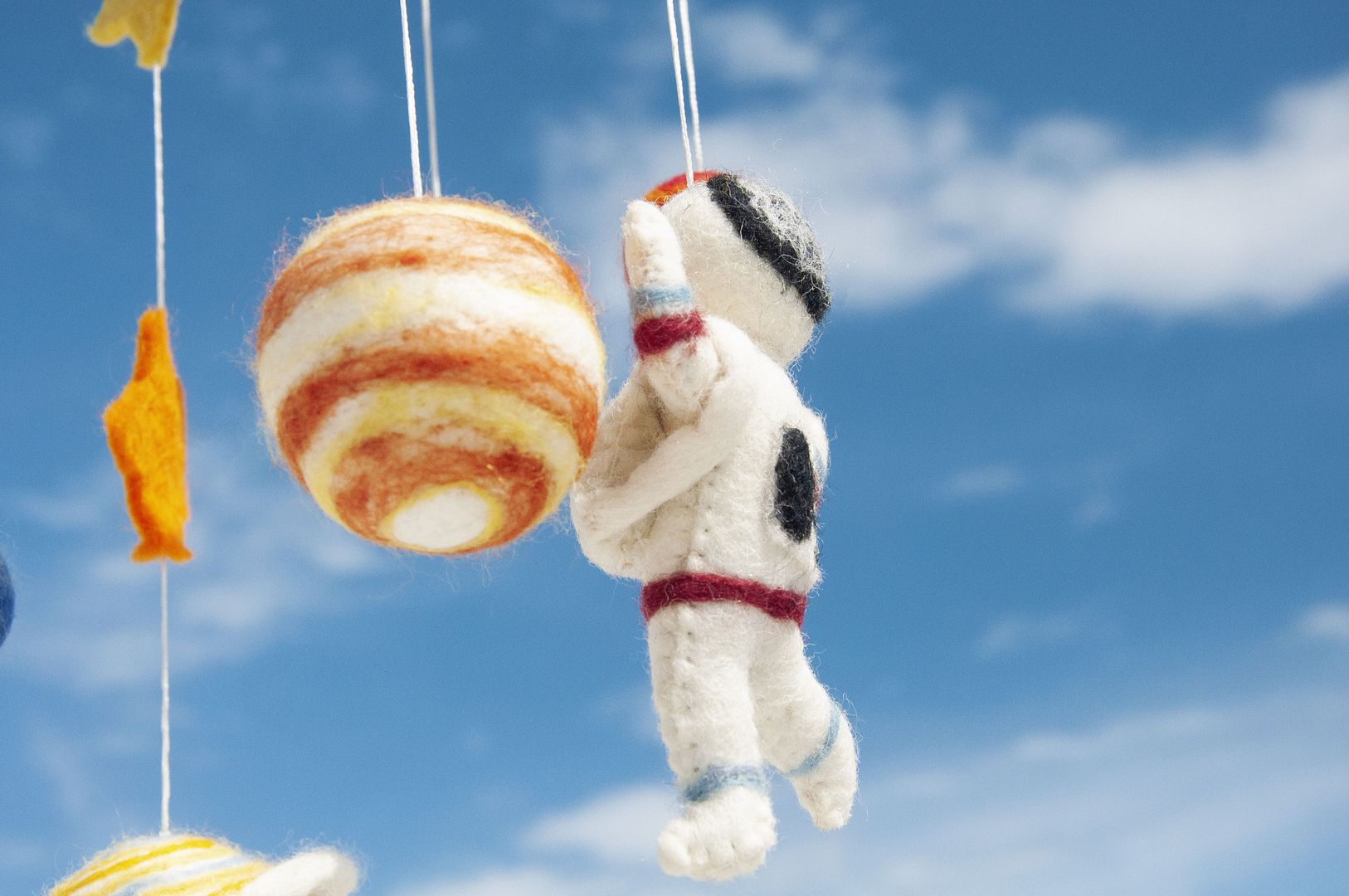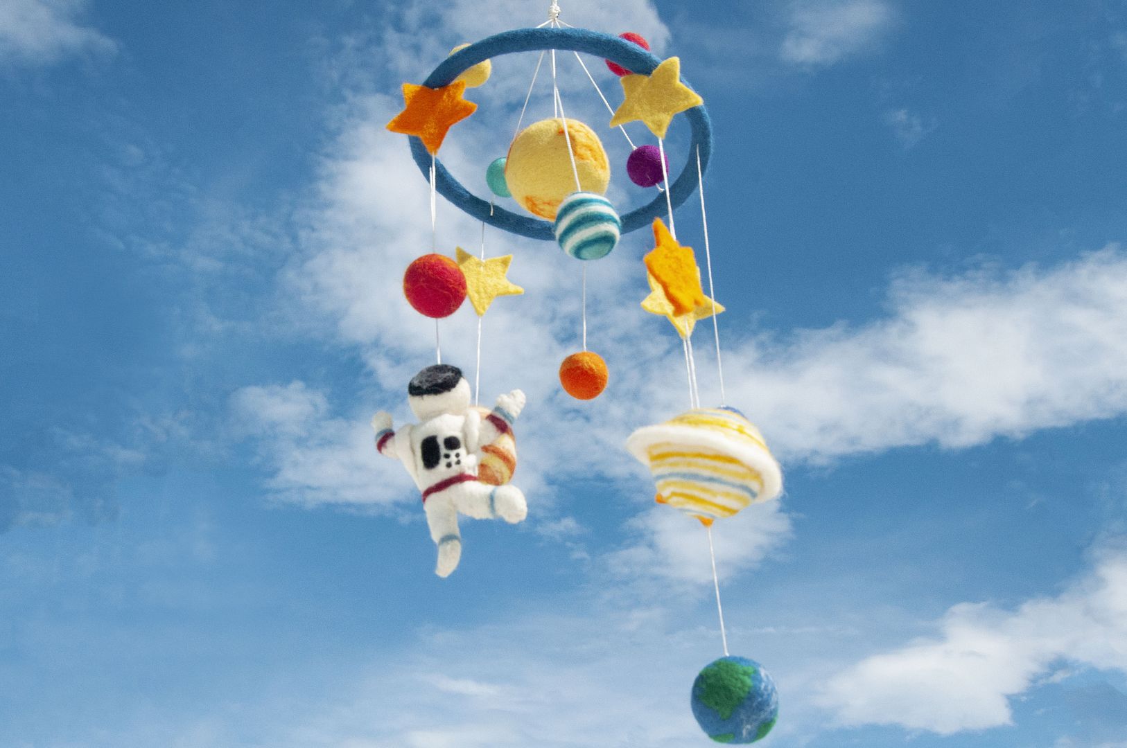 彌月禮物 手工羊毛氈吊飾/Boho嬰兒床吊飾/童房掛飾-宇宙太空人