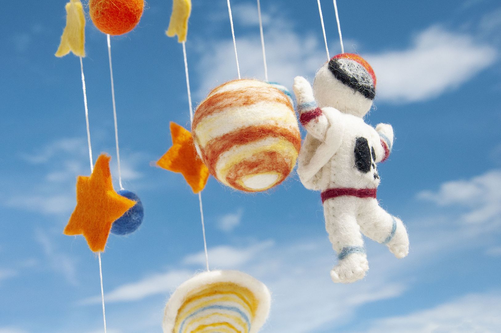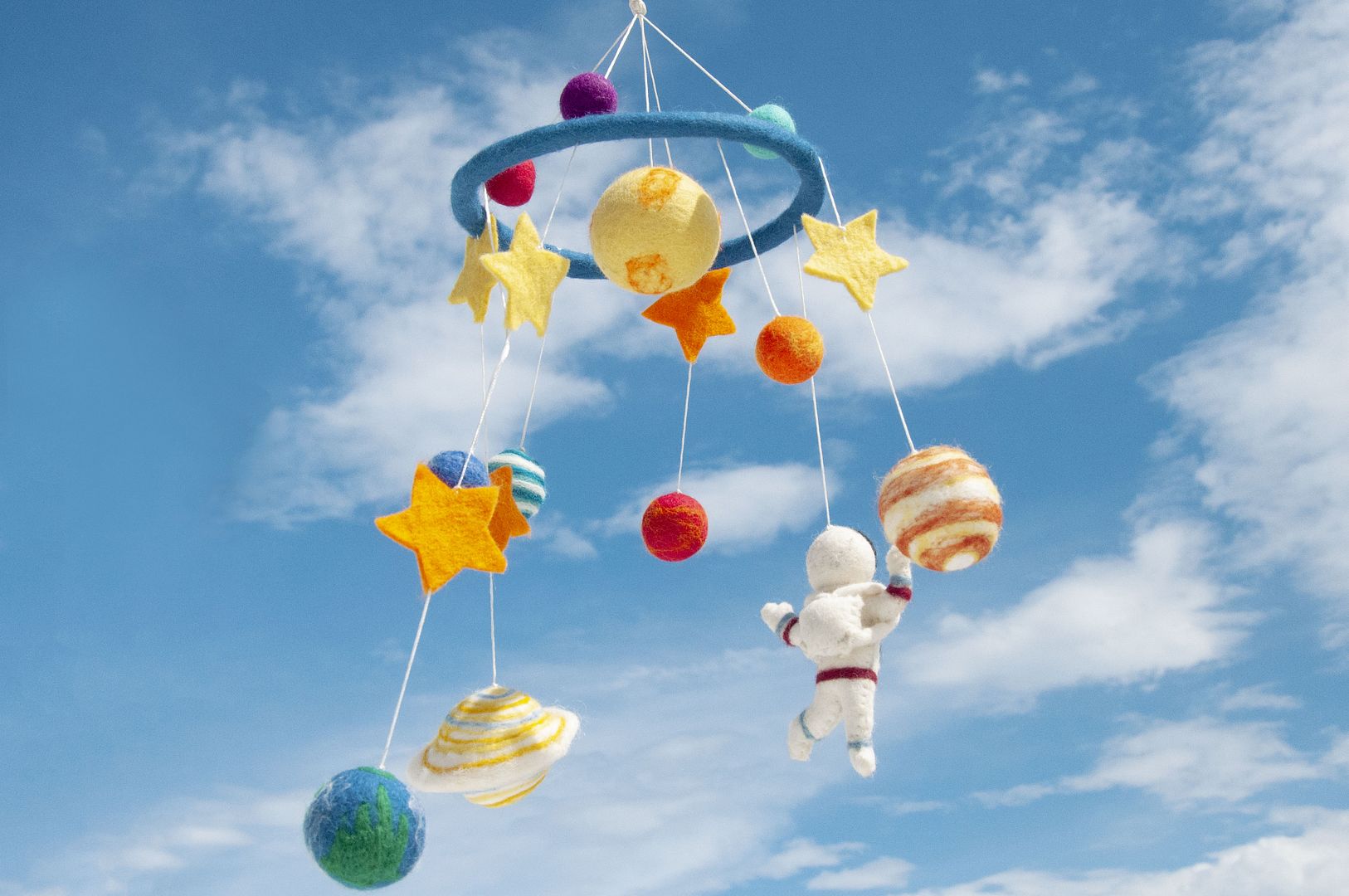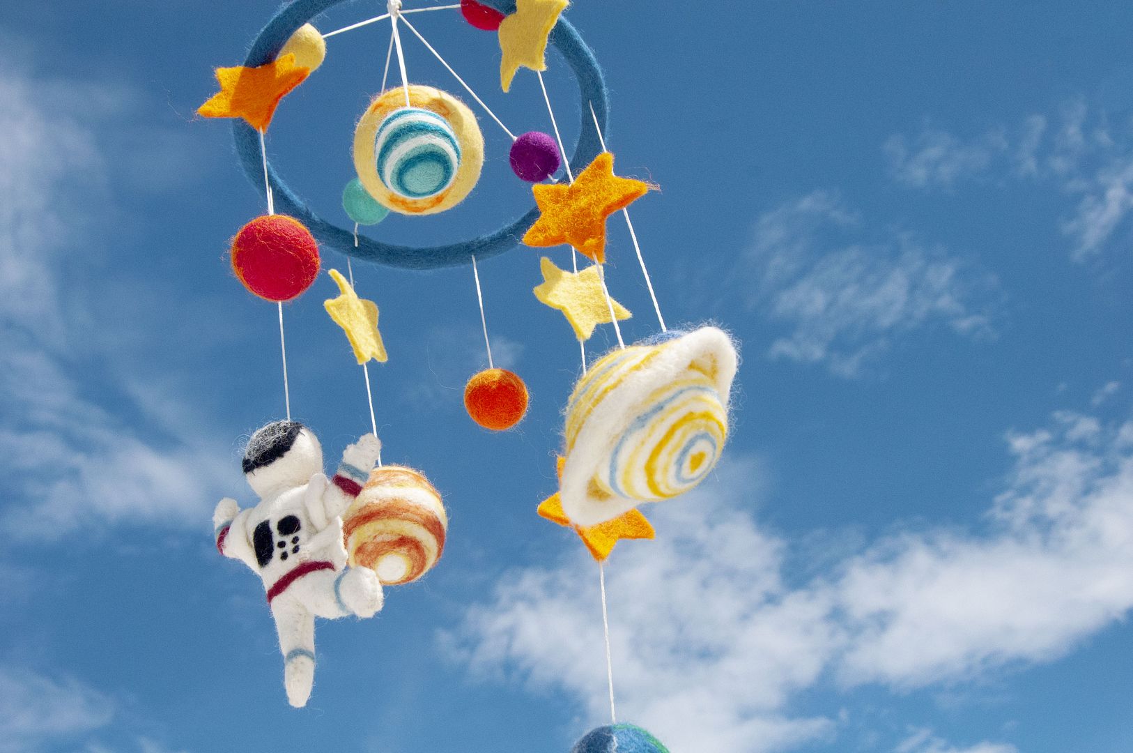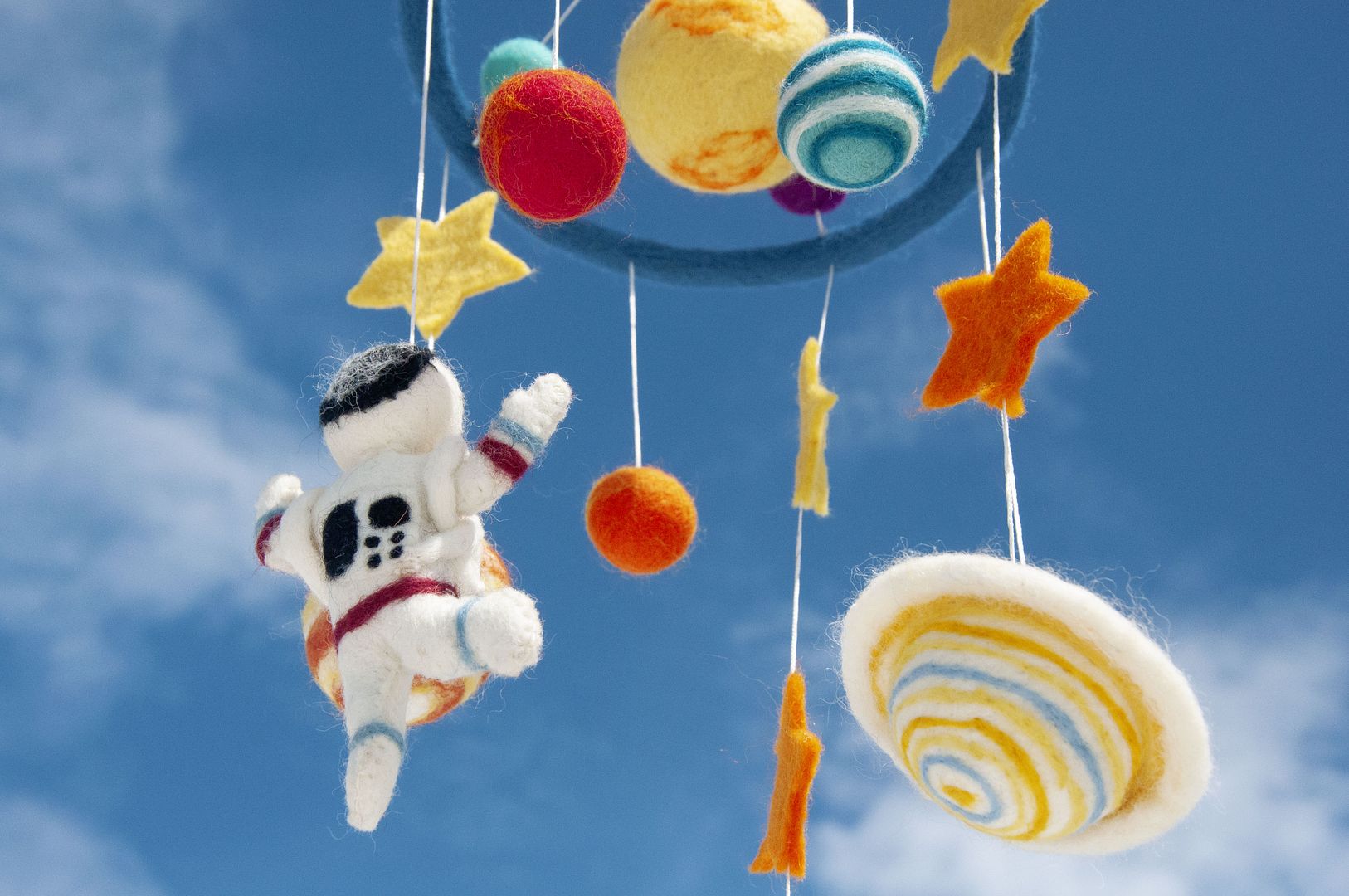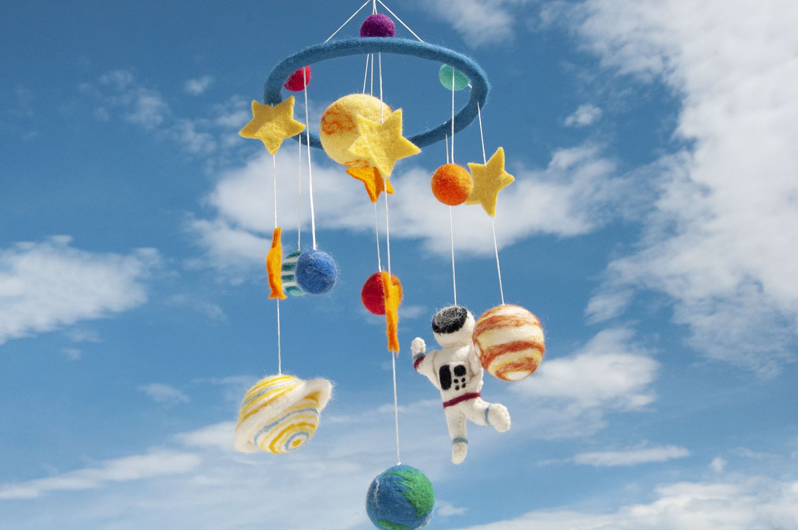 彌月禮物 手工羊毛氈吊飾/Boho嬰兒床吊飾/童房掛飾-宇宙太空人