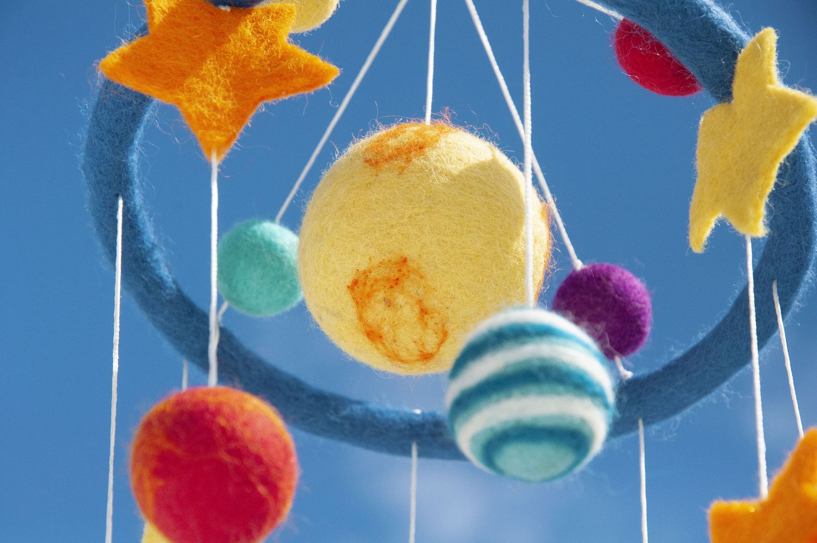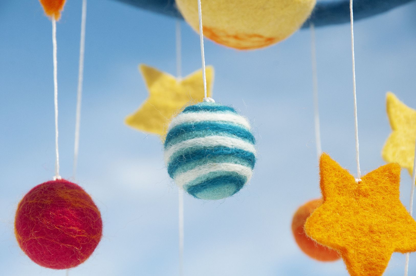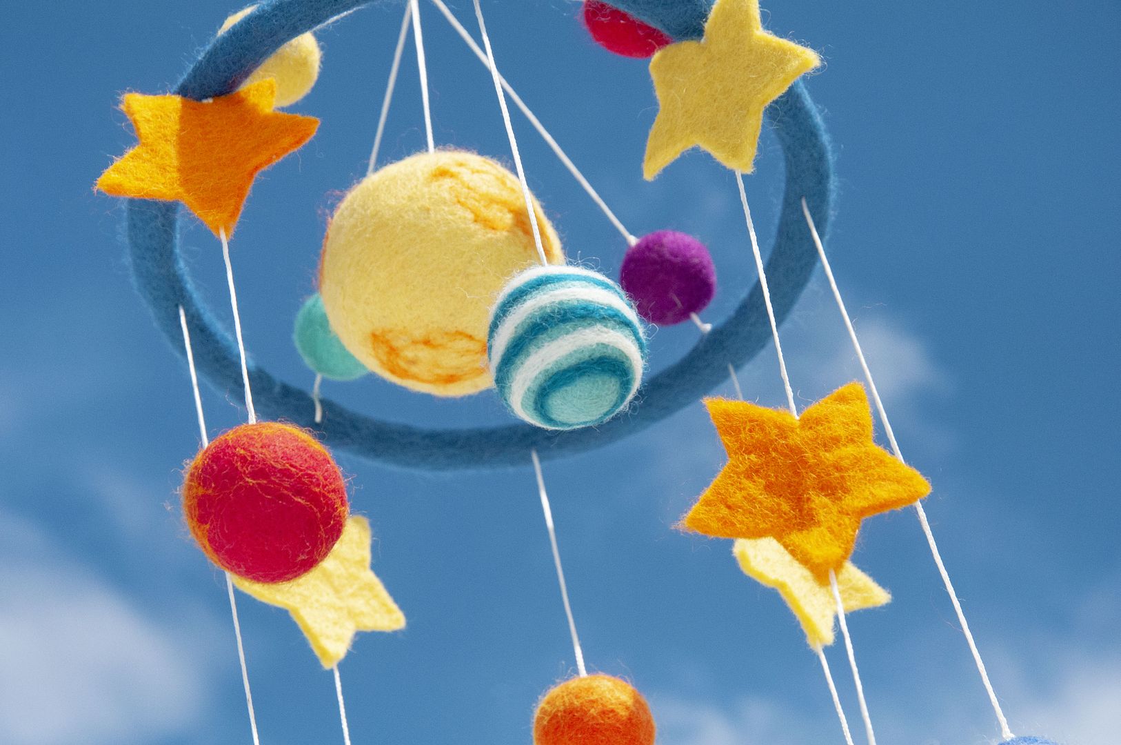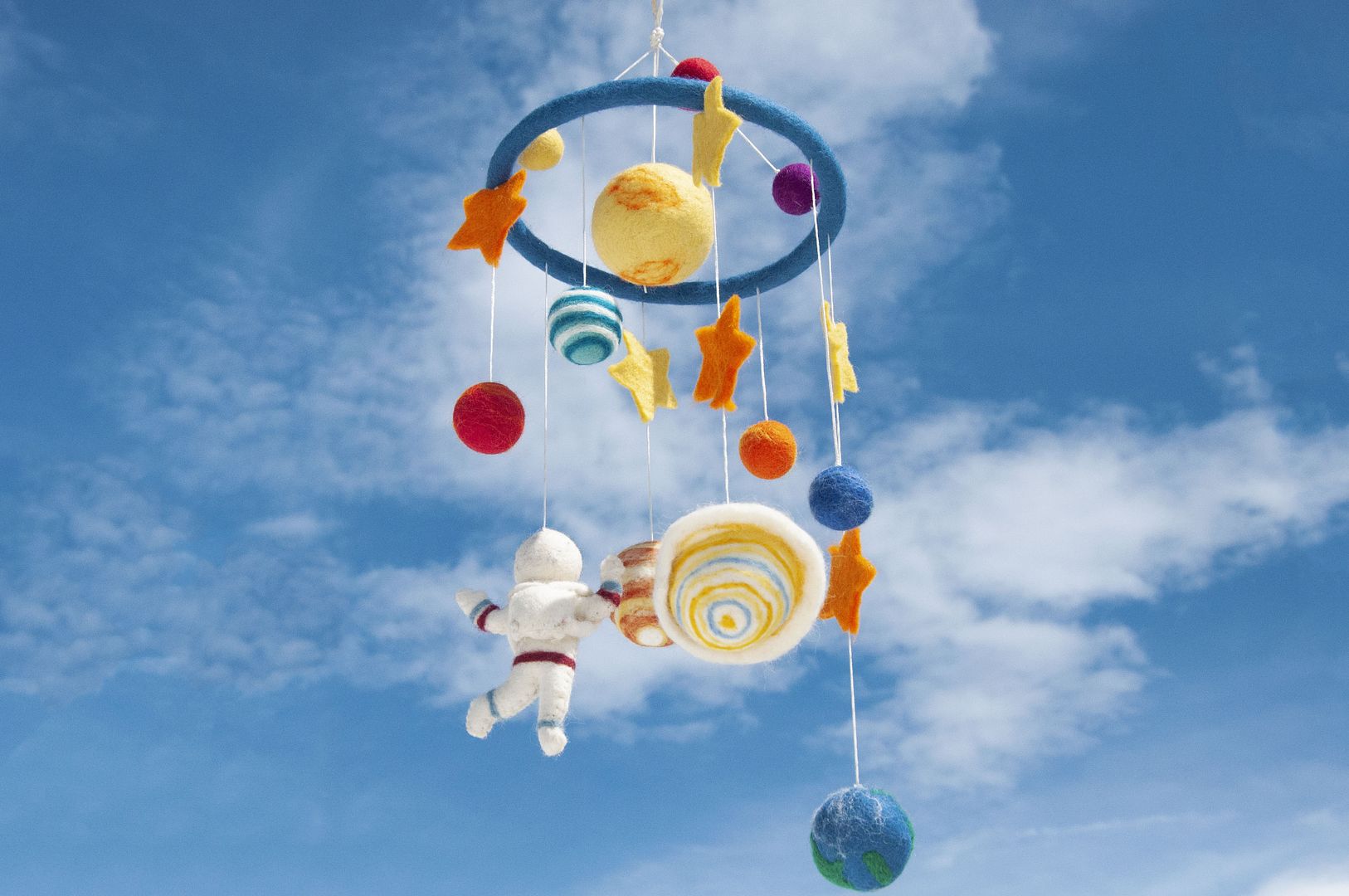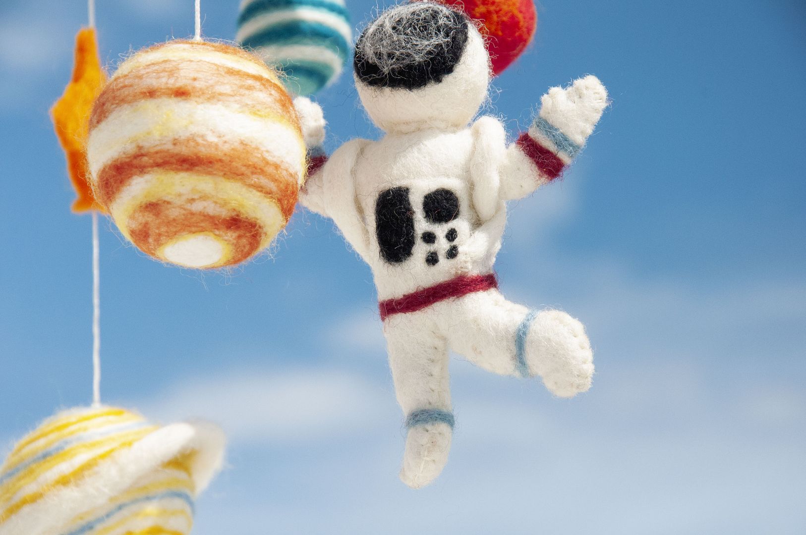 彌月禮物 手工羊毛氈吊飾/Boho嬰兒床吊飾/童房掛飾-宇宙太空人