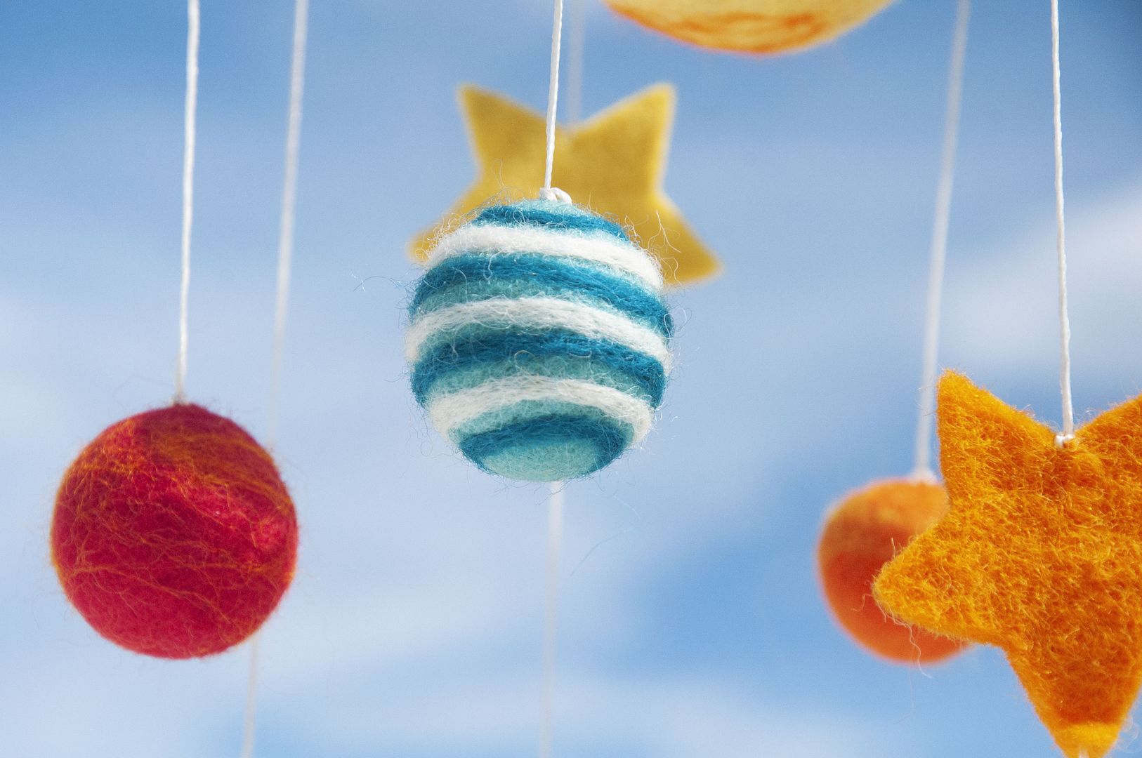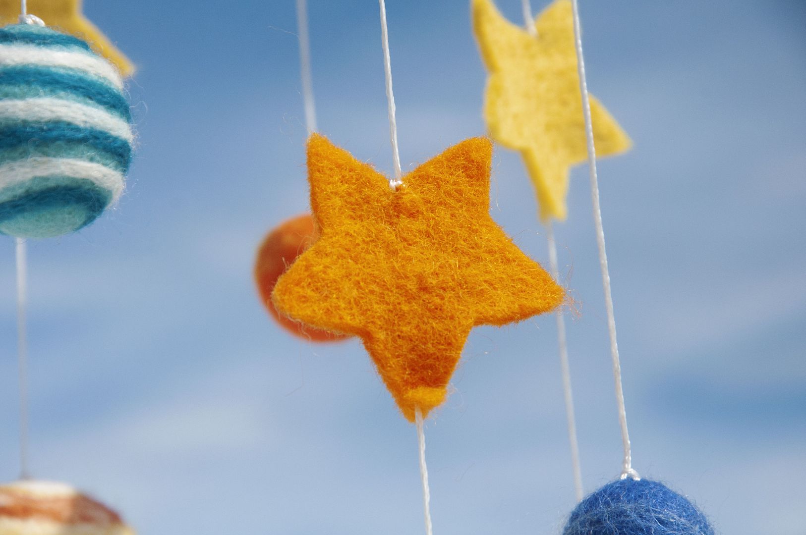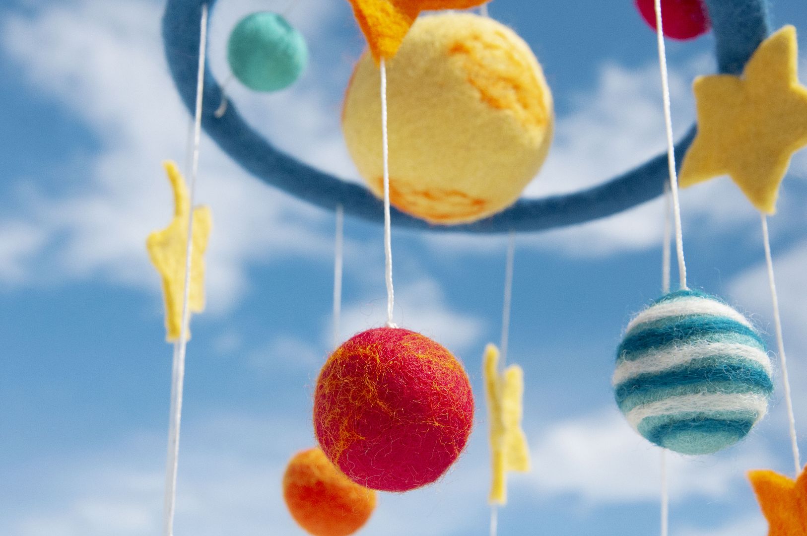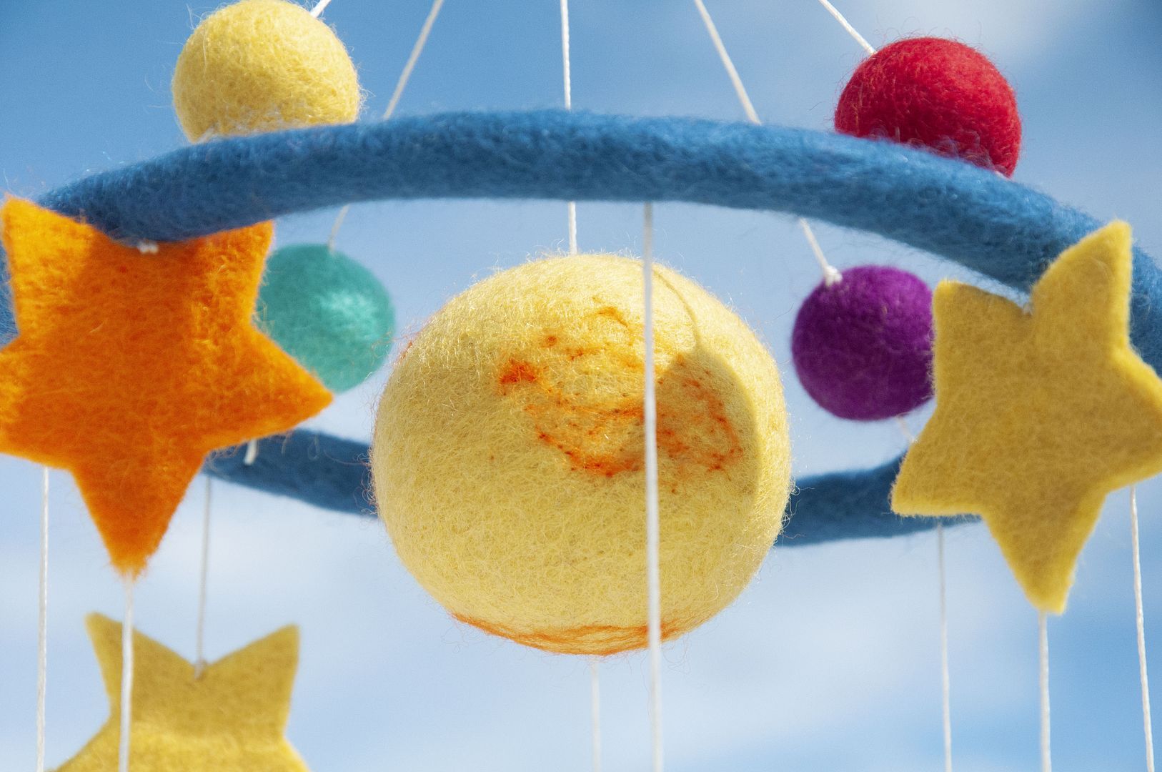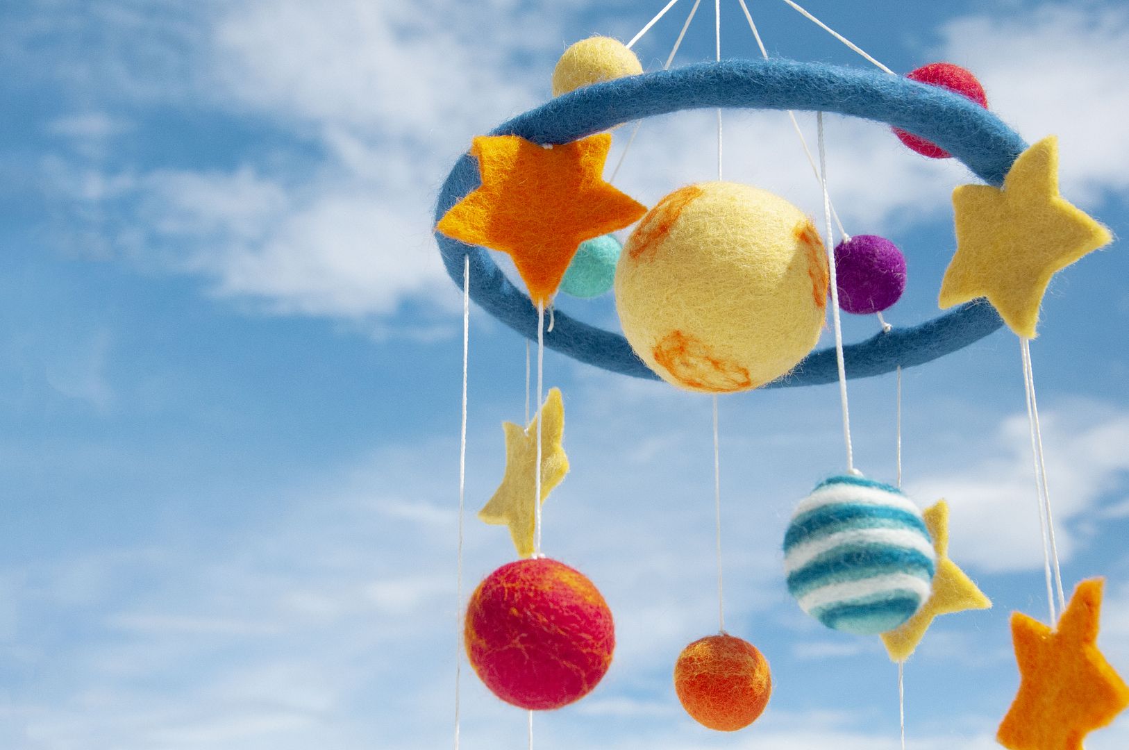 彌月禮物 手工羊毛氈吊飾/Boho嬰兒床吊飾/童房掛飾-宇宙太空人