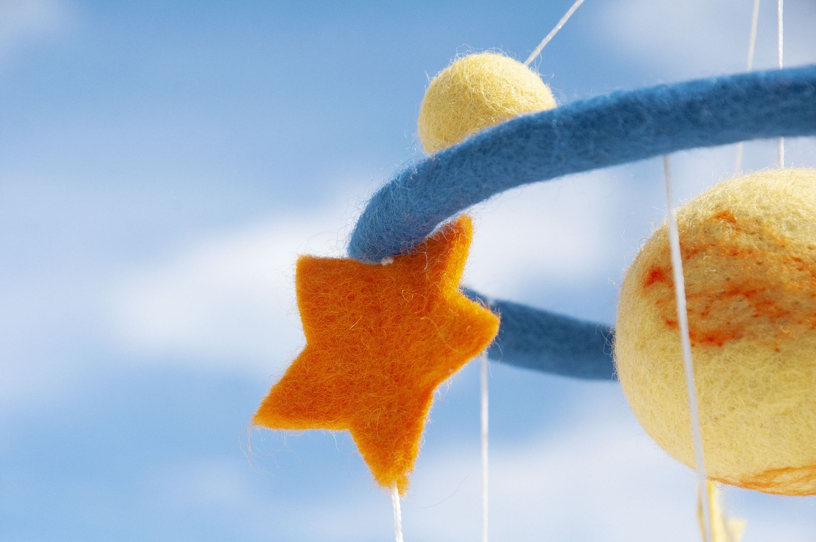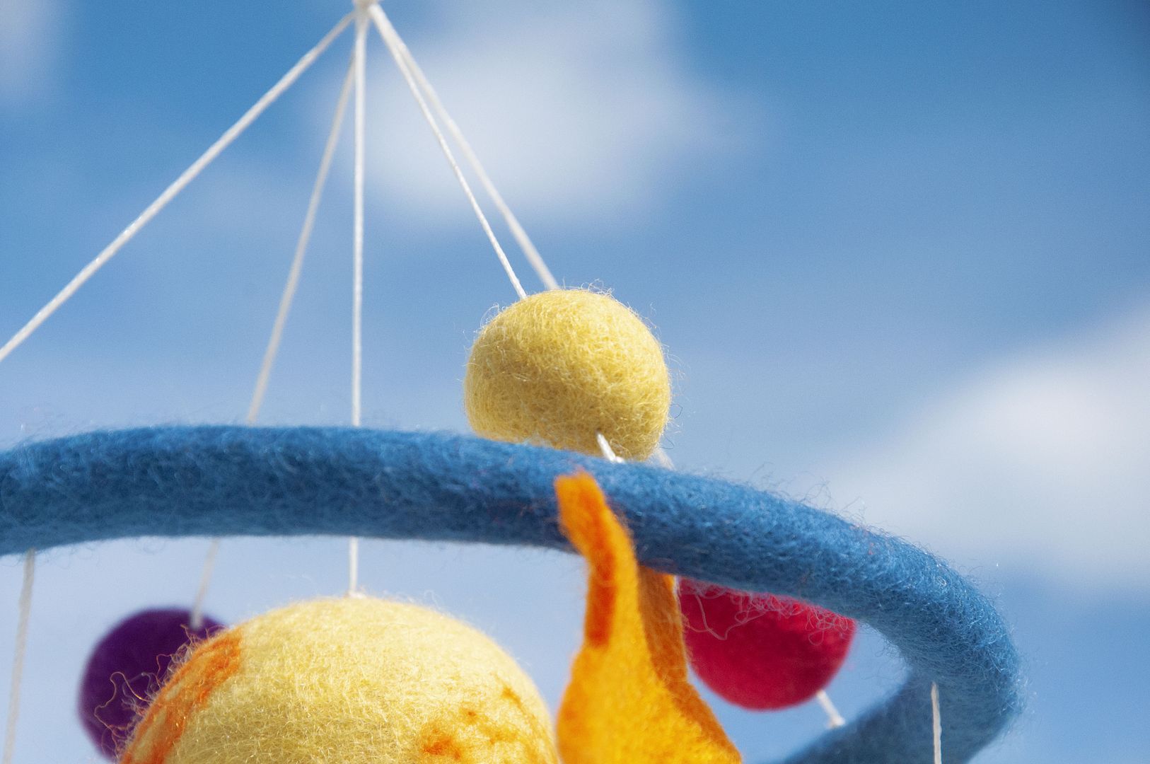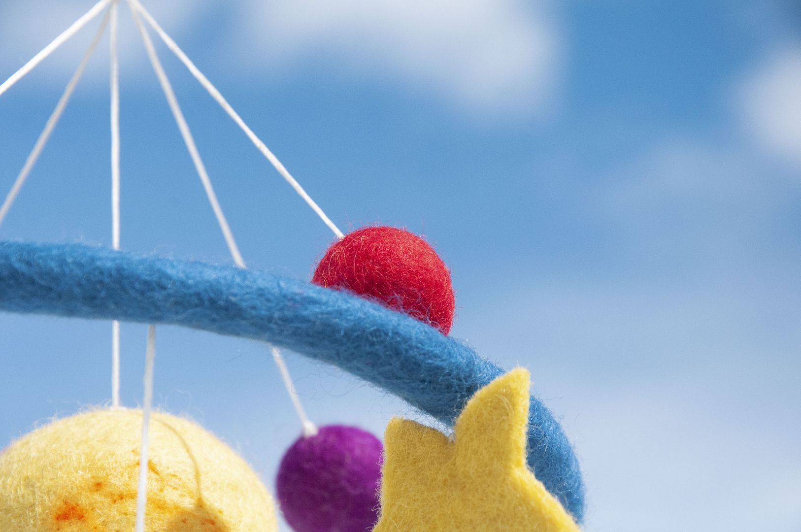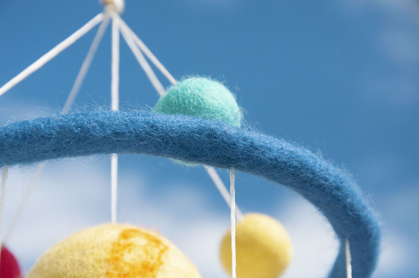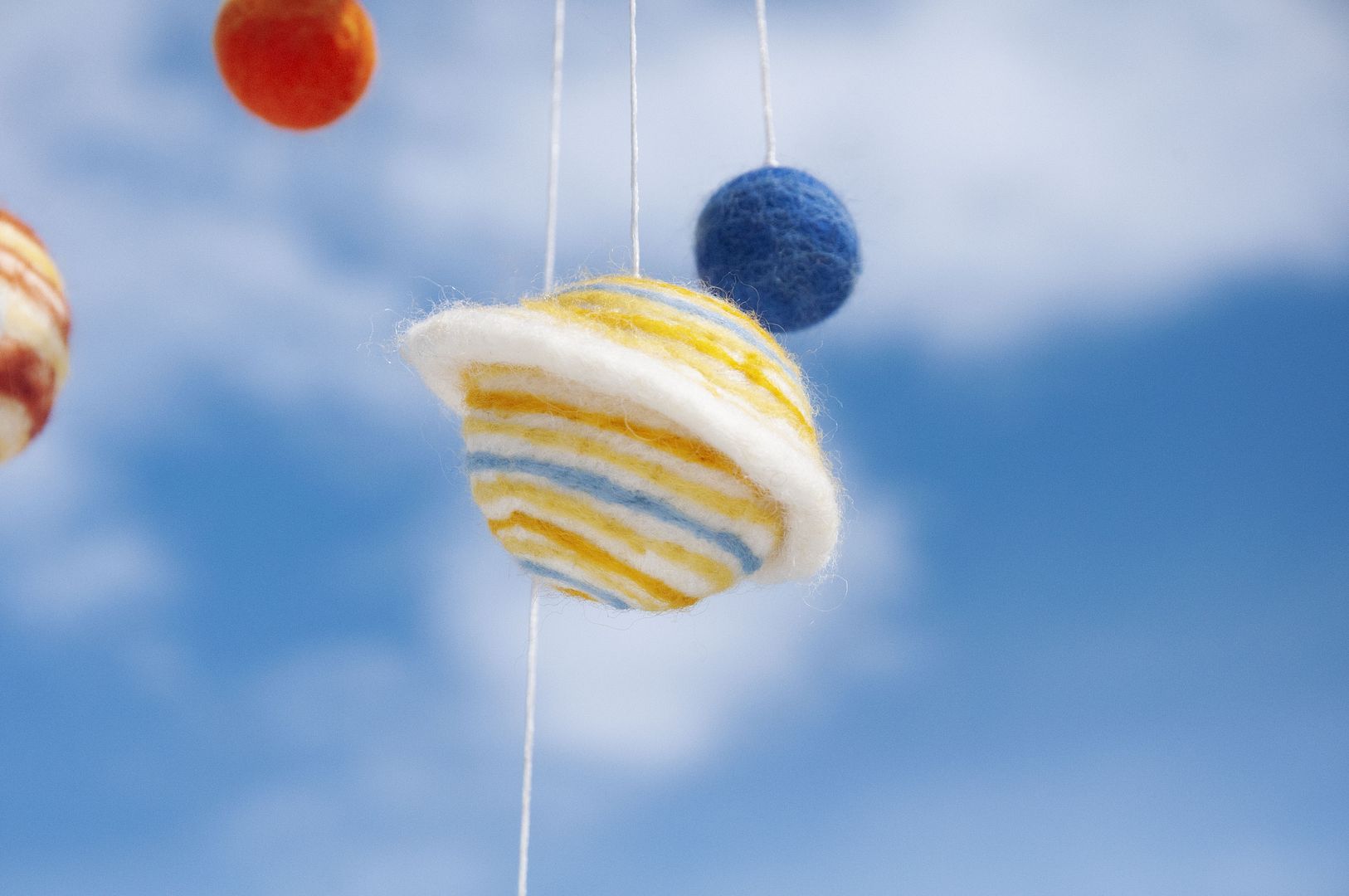 彌月禮物 手工羊毛氈吊飾/Boho嬰兒床吊飾/童房掛飾-宇宙太空人