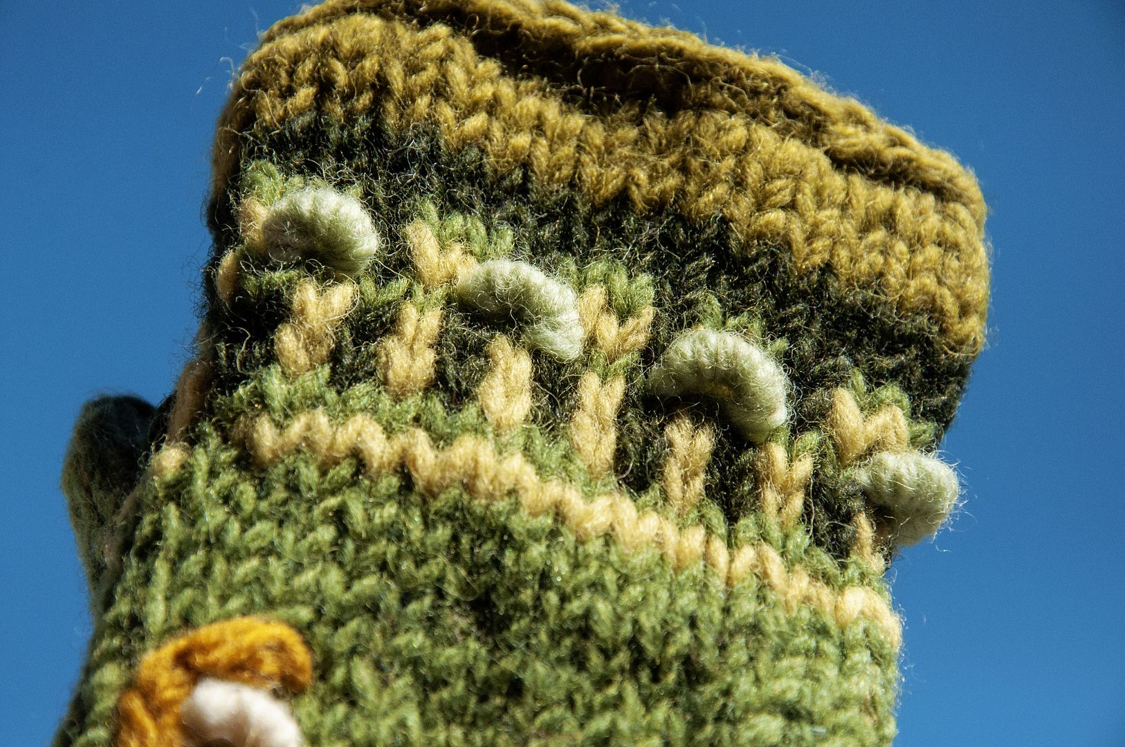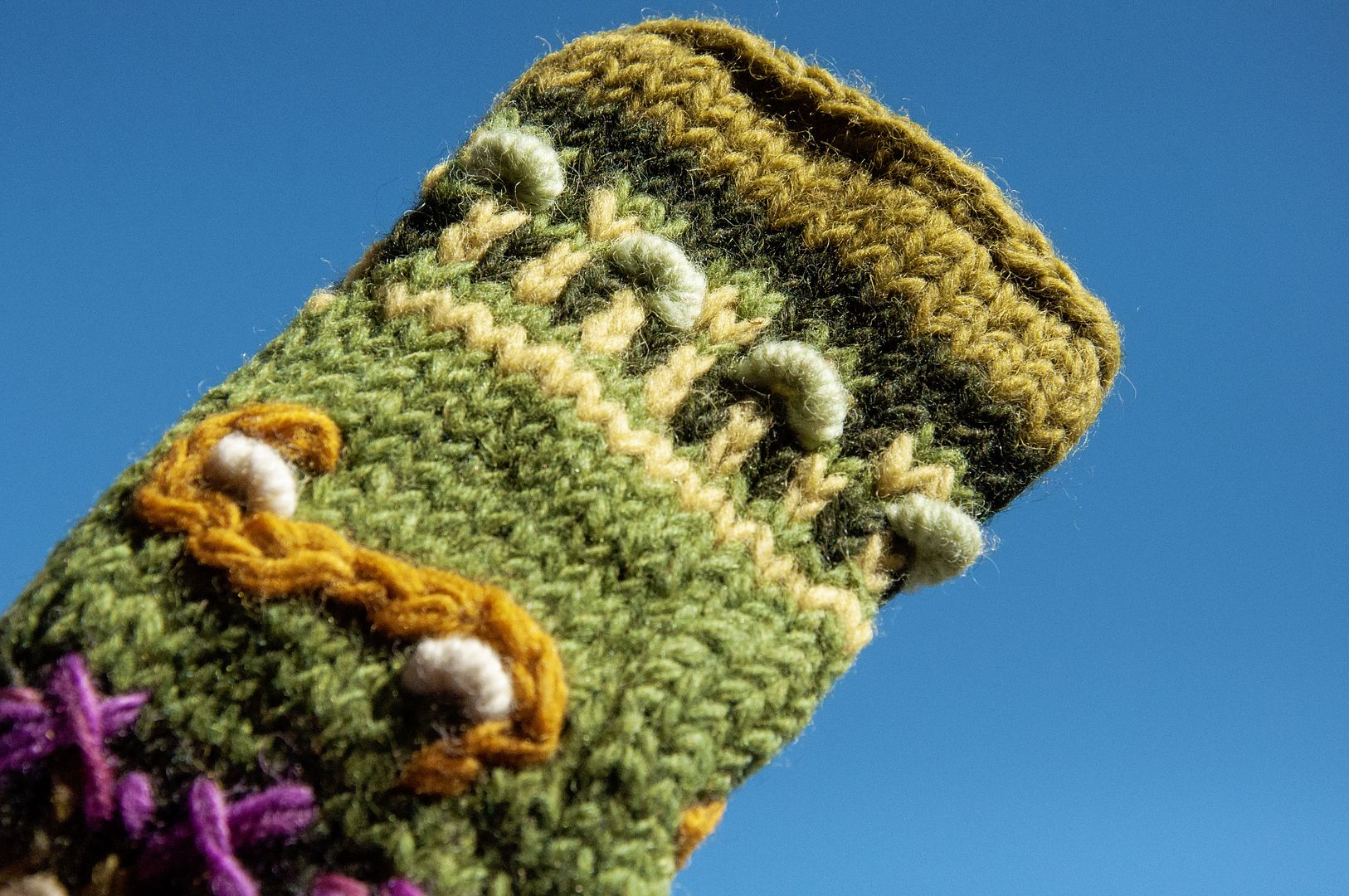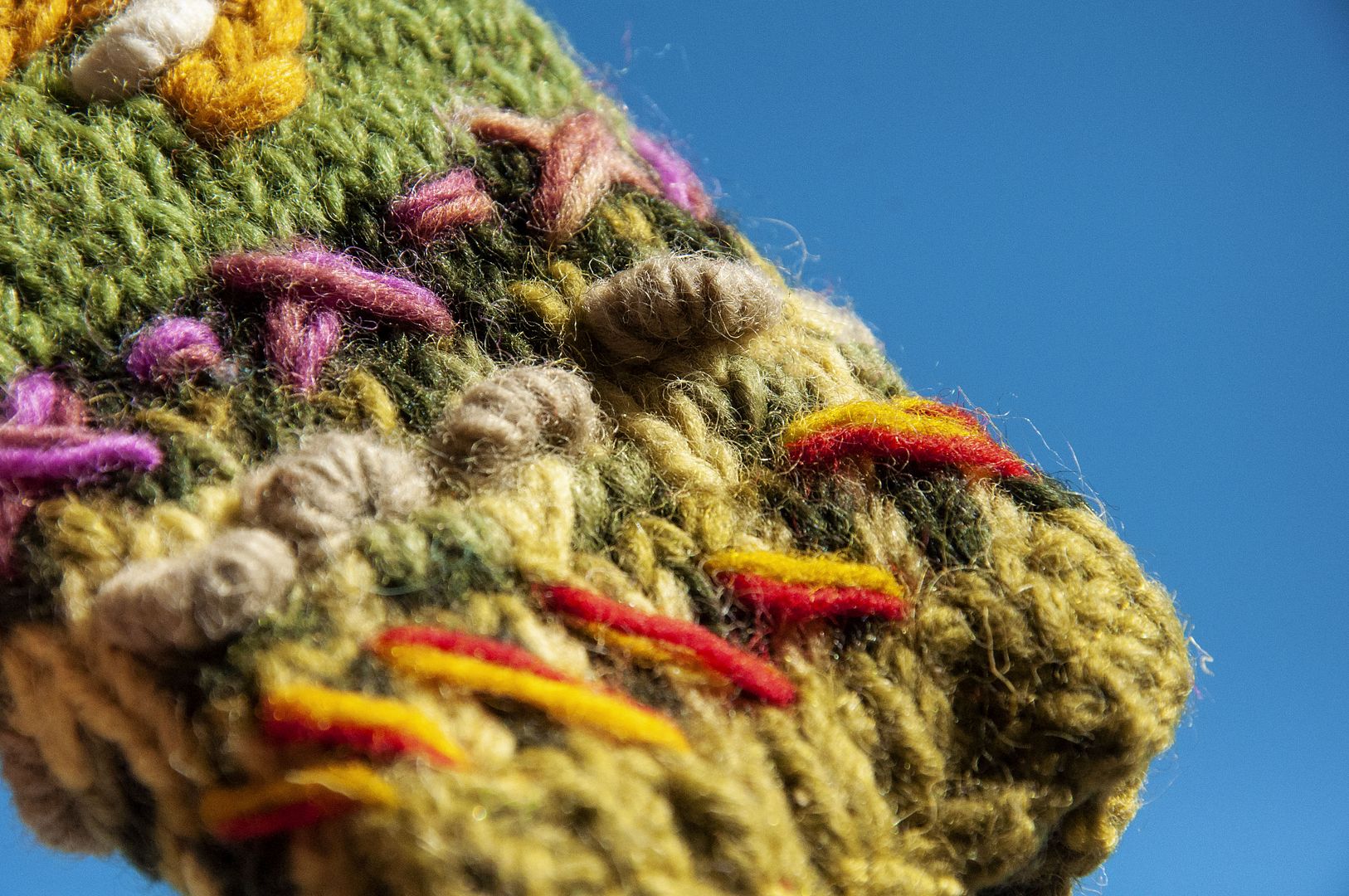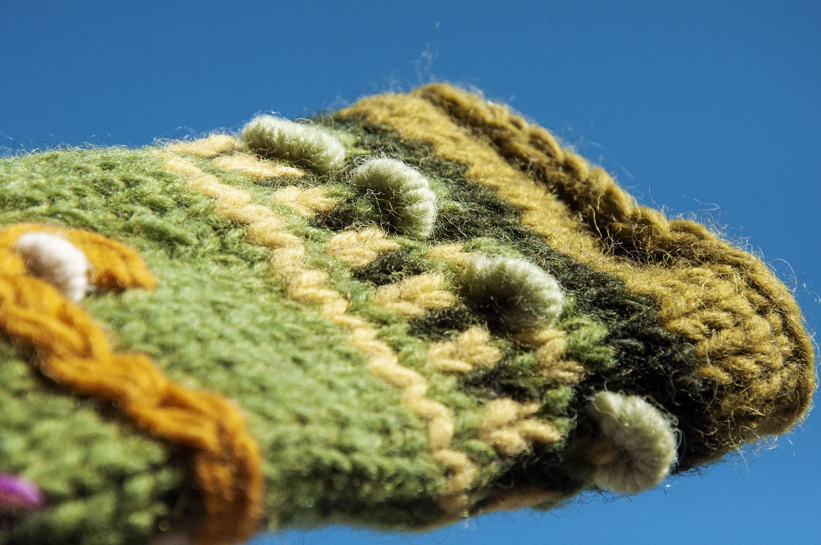 ▲由設計師設計,手工編織的純羊毛手套,帶出春天陽光下的溫暖氛圍