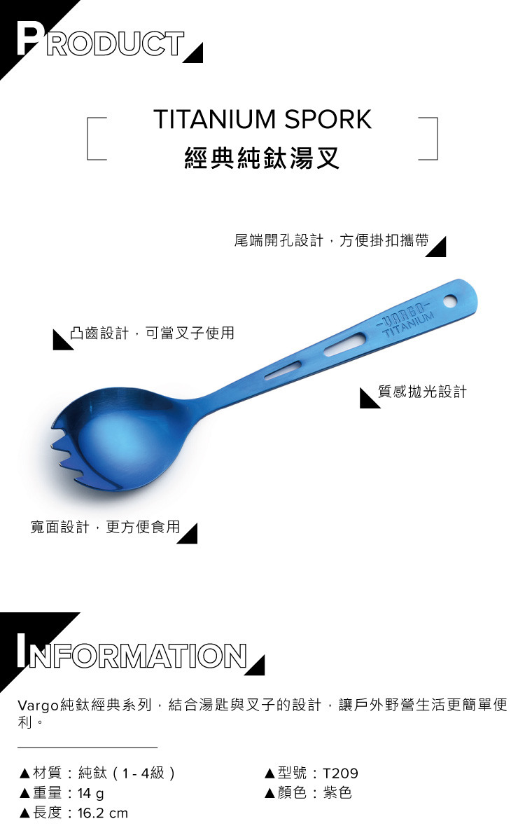 【美國 Vargo】 Titanium Spork 經典純鈦湯叉 紫色 #T209