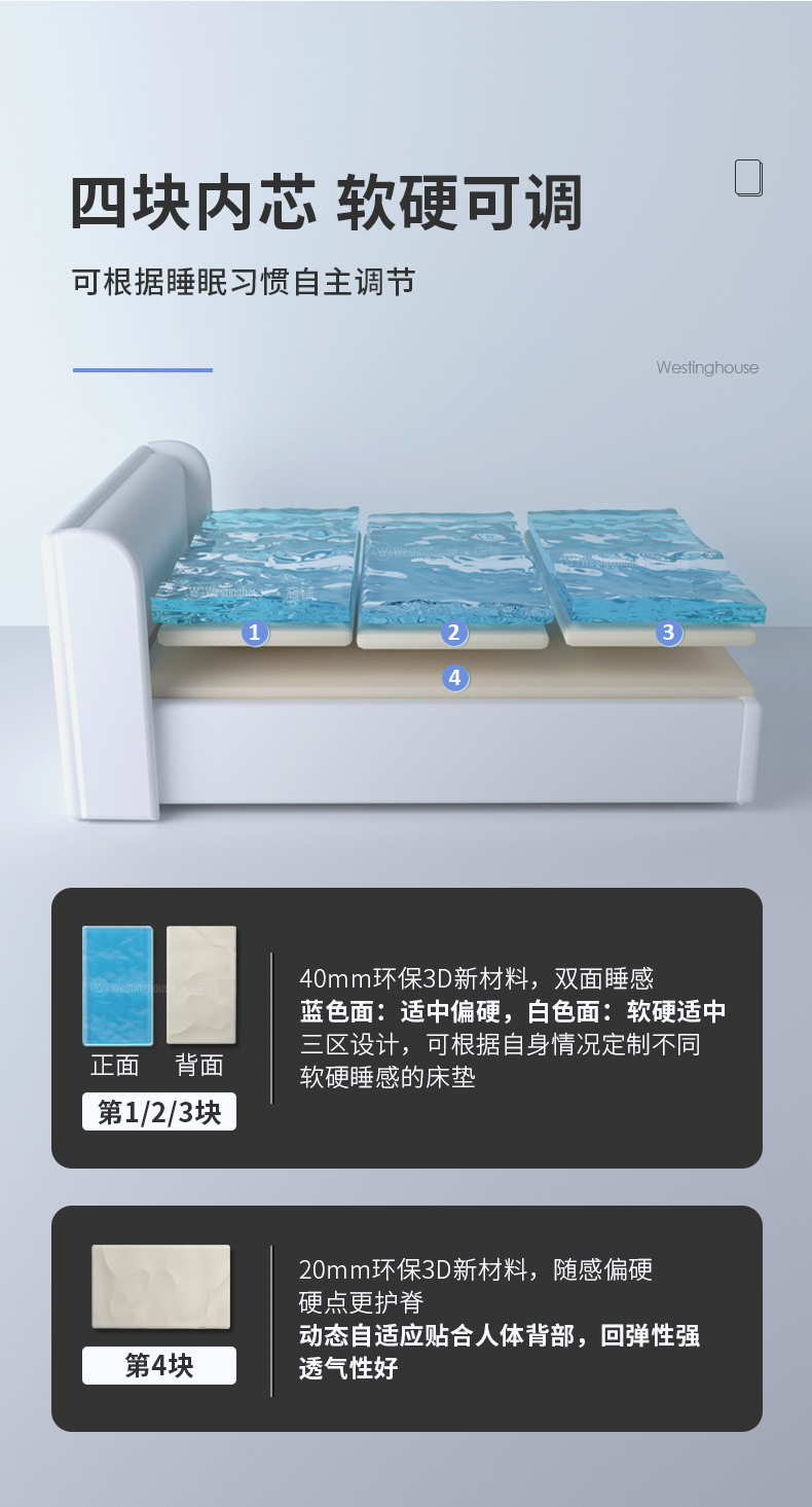 4cm雙面軟硬(900g/㎡|1200g/㎡)+2cm較硬3D(1600g/㎡)