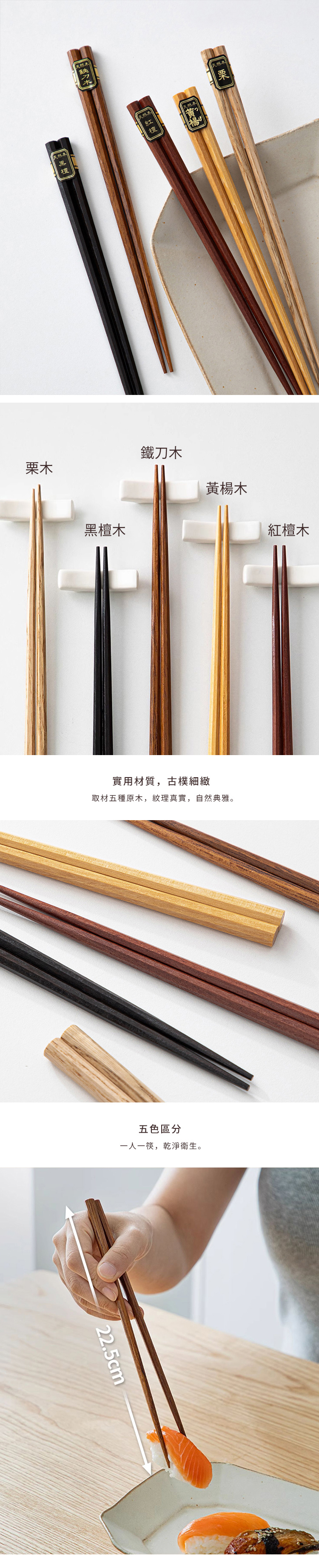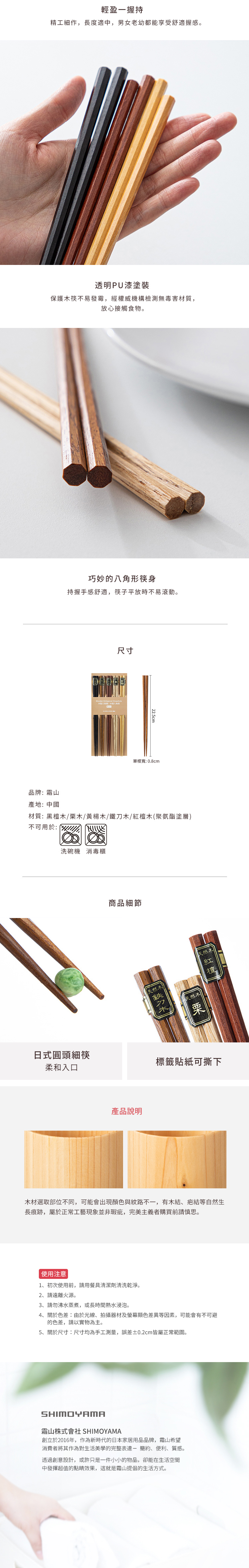 日本霜山 和風五種木防滑八角木筷(5雙/包)x3包組