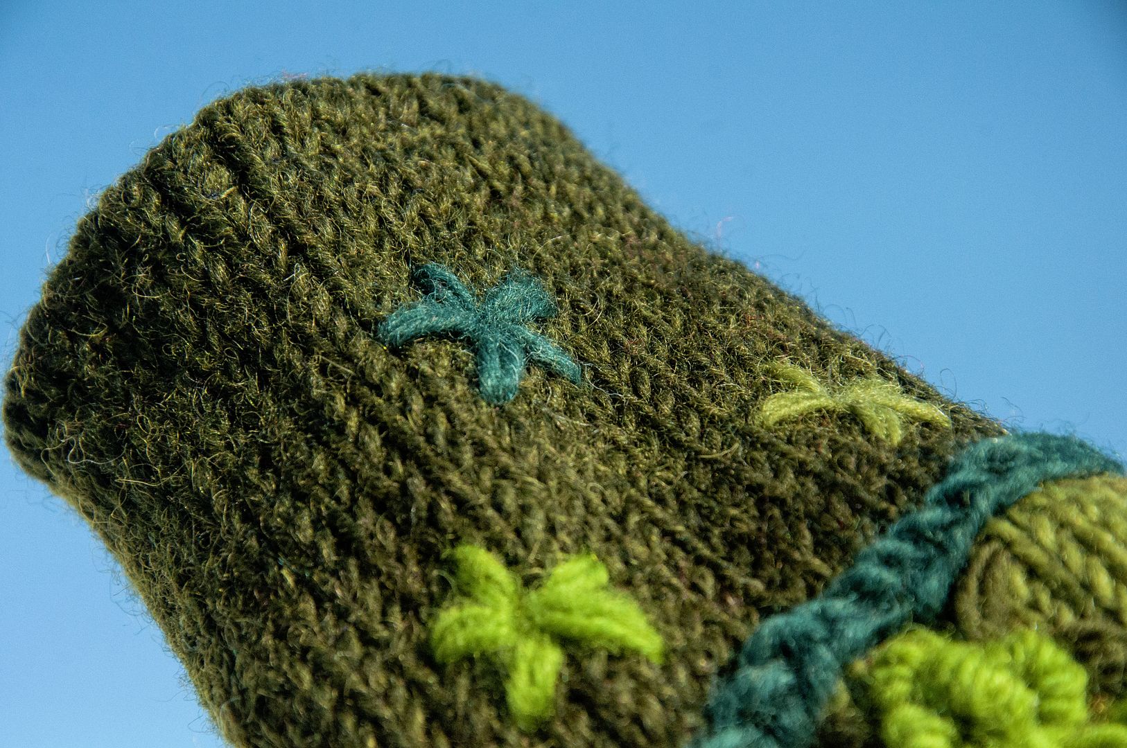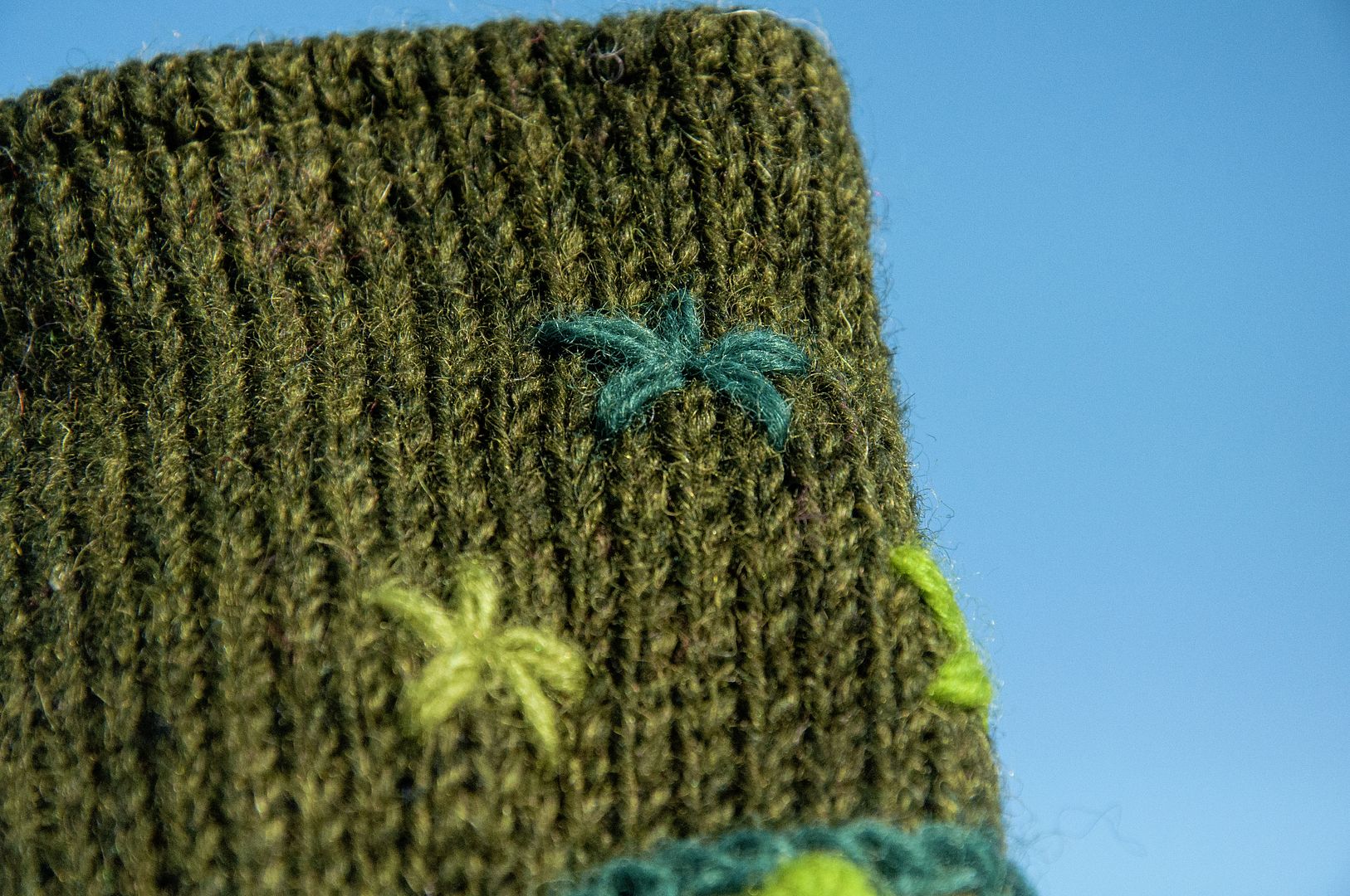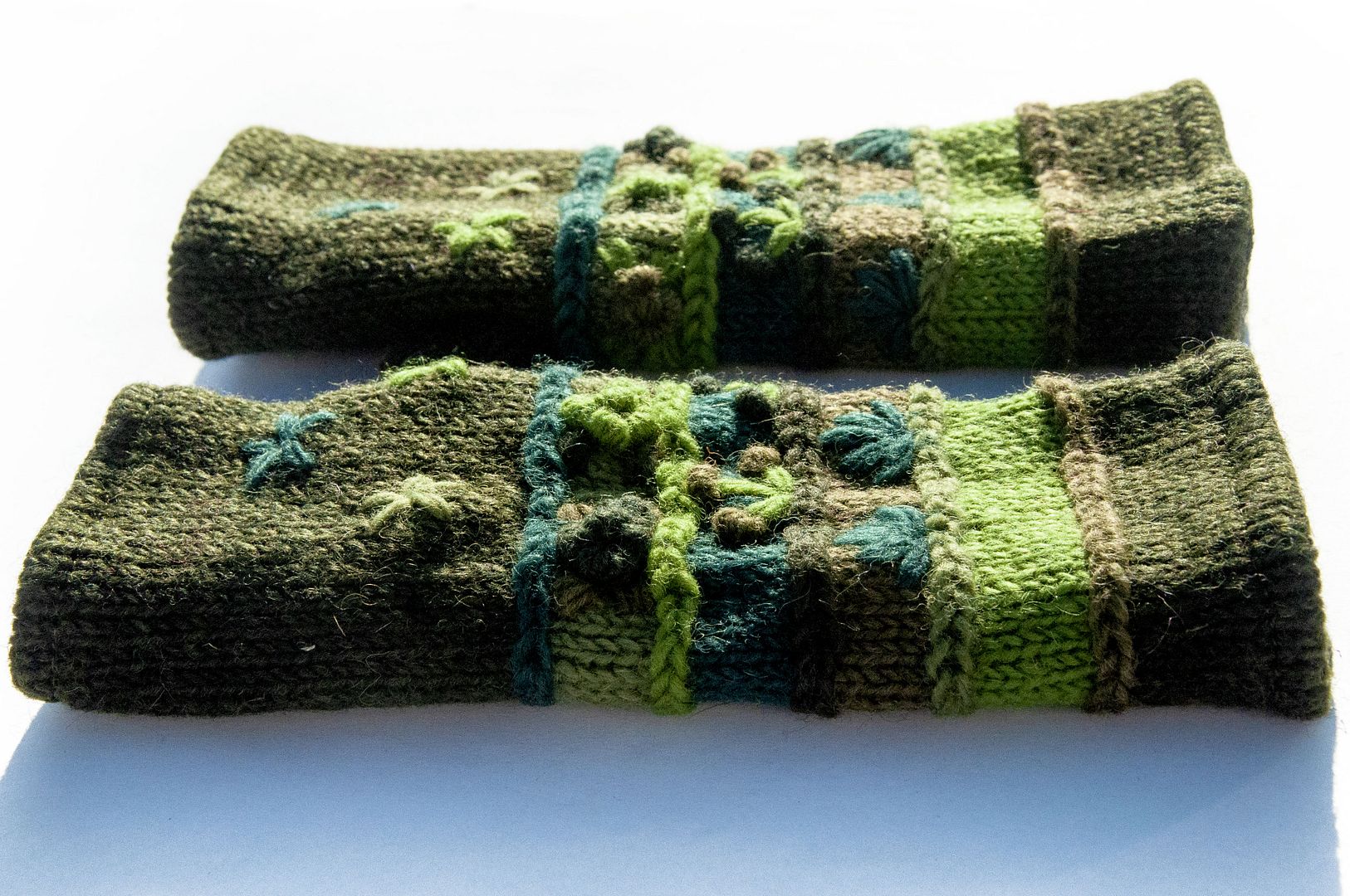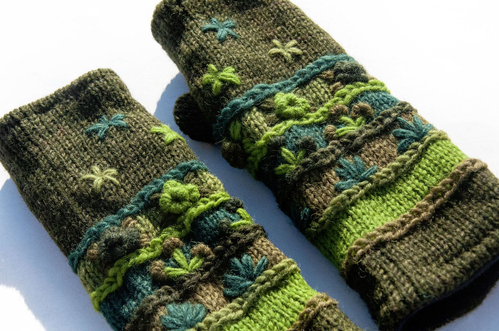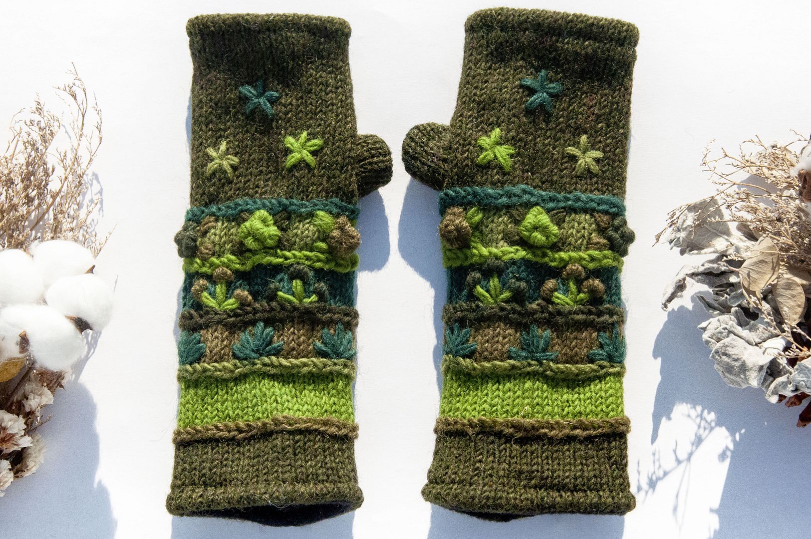 手織純羊毛針織手套/露趾手套/內刷毛手套/保暖手套-立體花朵刺繡