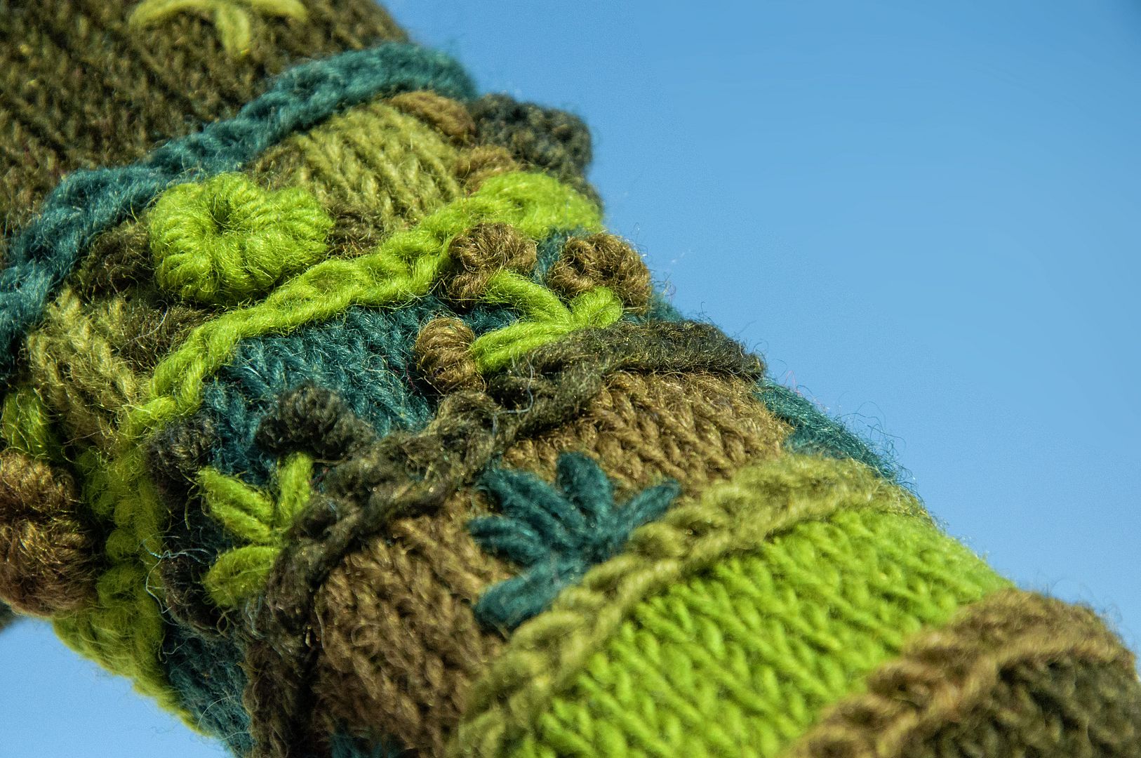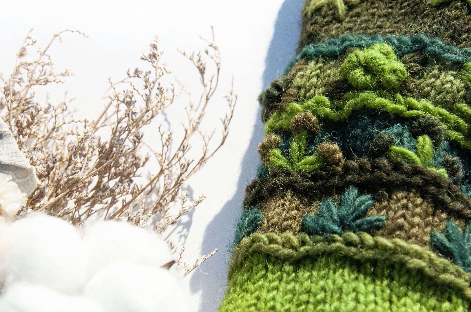 ▲由設計師設計,尼泊爾手工編織的純羊毛手套,帶出春天陽光下的溫暖氛圍
