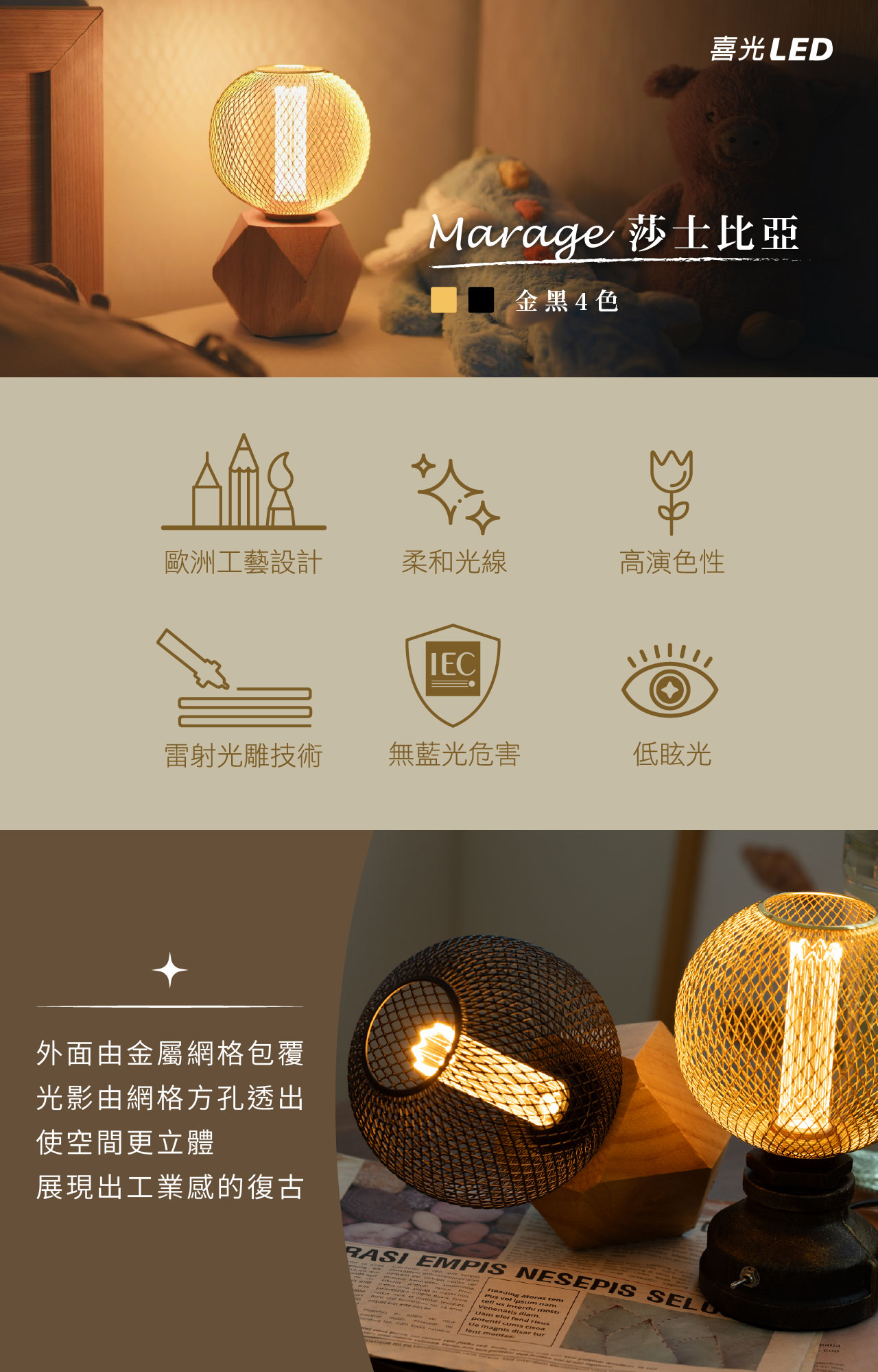 · 品名 - Mirage莎士比亞幻影燈 | 木質燈座 | 喜光LED